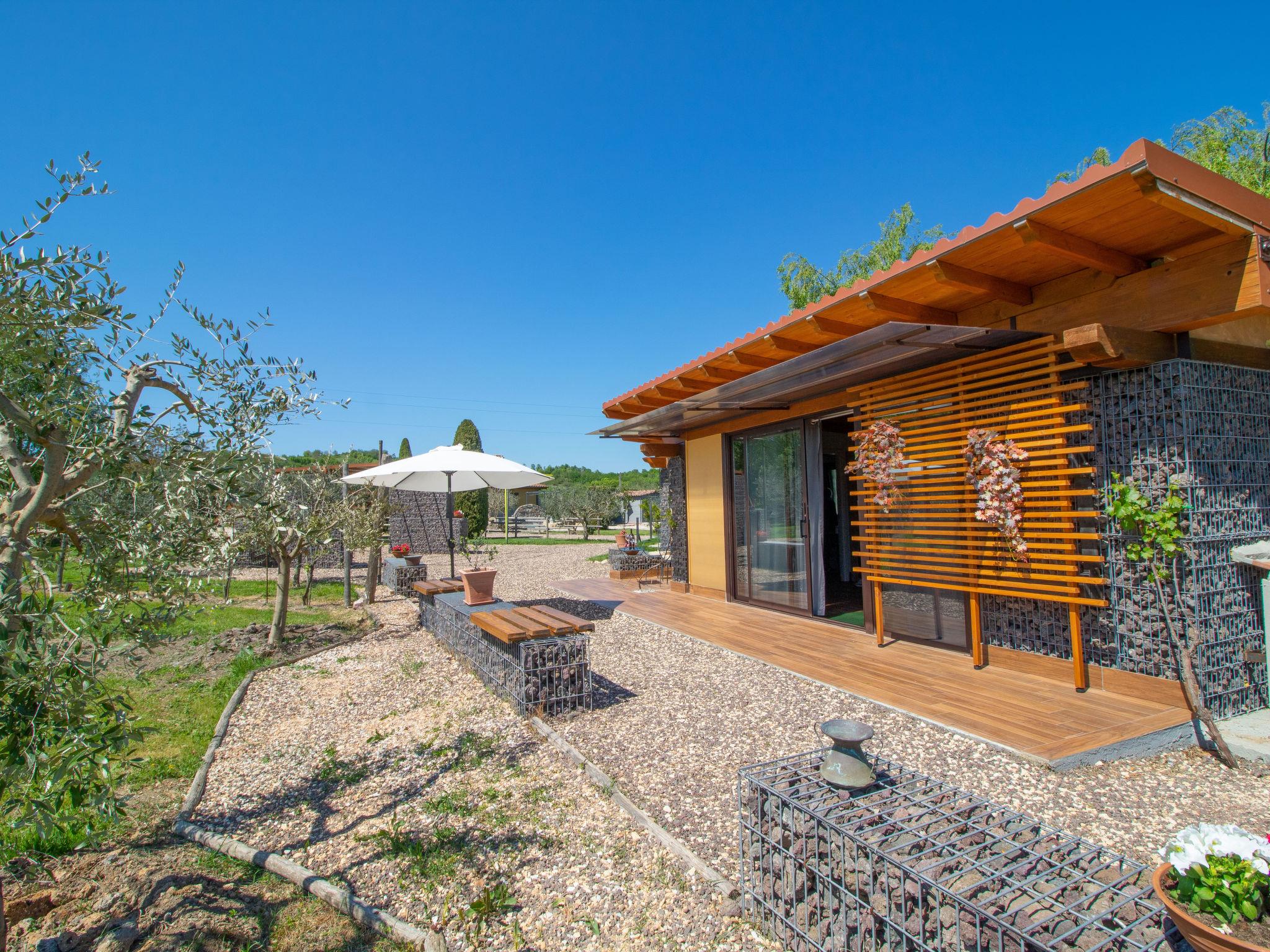 Modern, comfortable chalet "Il Vitigno", detached. 1500 km from the centre of Sutri, 50 km from the centre of Roma, 45 km from the sea, 12 km from the lake. For shared use: park 3 ha (fenced). Private: garden 500 m2, swimming pool (5 x 3 m, depth 120 cm, seasonal availability: 01.Jun. - 30.Sep.) with salt-electrolysis pool-cleaning system. Garden furniture, barbecue. In the house: reception. Roofed, parking on the premises. E-charging station. Supermarket 2 km, bar 2 km, bus stop 1.2 km, sandy beach "Santa Severa" 45 km, bathing lake "Lago Di Vico" 12 km. Golf course (18 hole) 7 km. Nearby attractions: Viterbo 30 km, Lado Di Bracciano 13 km. Local sale of farm products. Please note: residence with electric gates. Property ref. it5607.649/652 is situated on the same property.