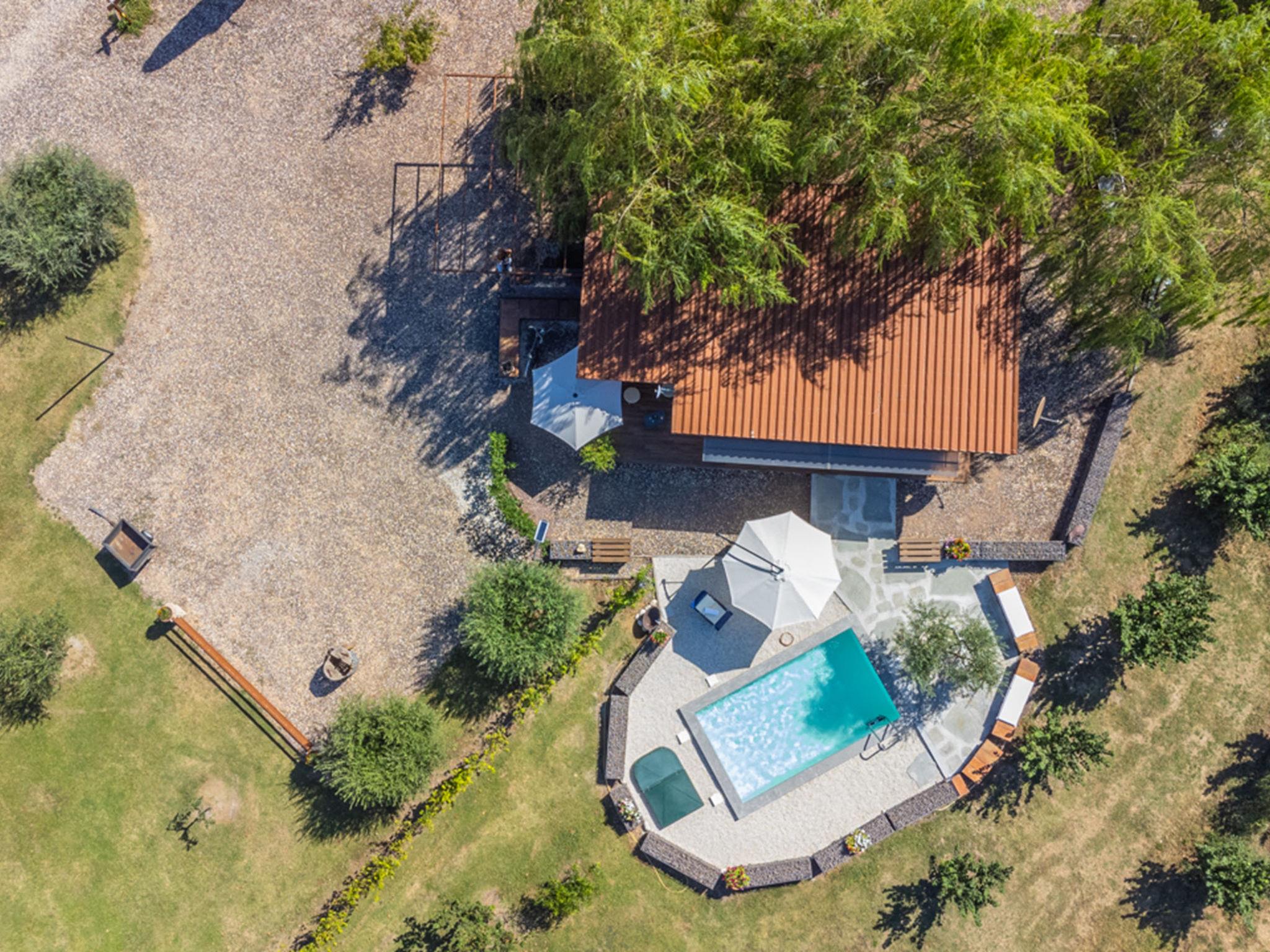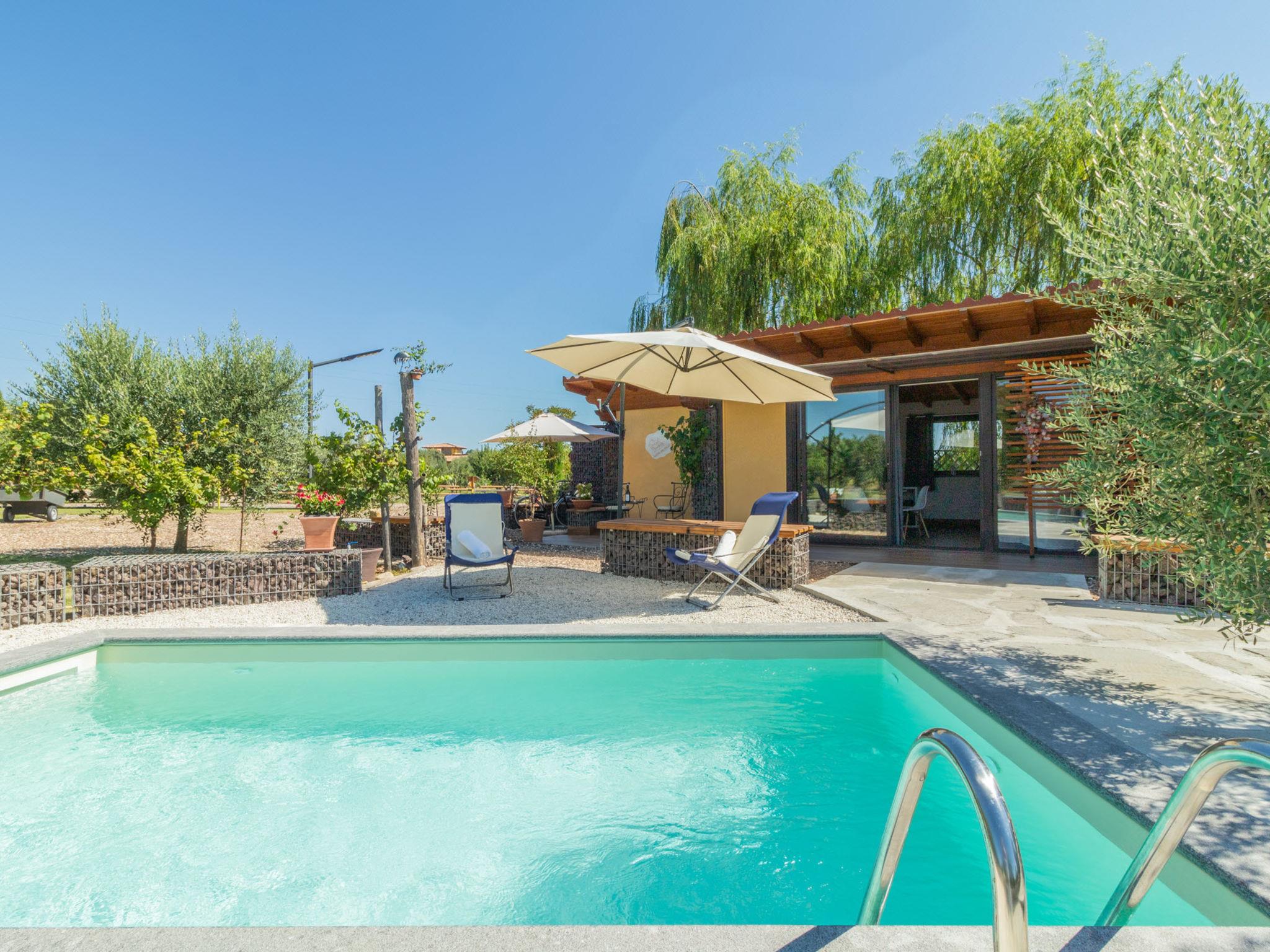 1-room chalet 50 m2. Comfortable and modern furnishings: living/dining room with 1 double sofabed, kitchen corner, satellite TV, flat screen and air conditioning. Exit to the garden. Kitchenette (2 ceramic glass hob hotplates, kettle, microwave, electric coffee machine). Shower/bidet/WC. Electric heating, air-conditioning. Beautiful view of the countryside. Facilities: hair dryer. Internet (WiFi). IT056049B5B0XKDC8M