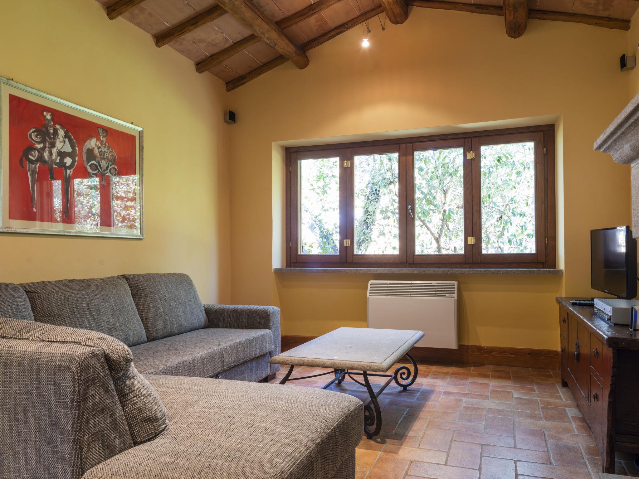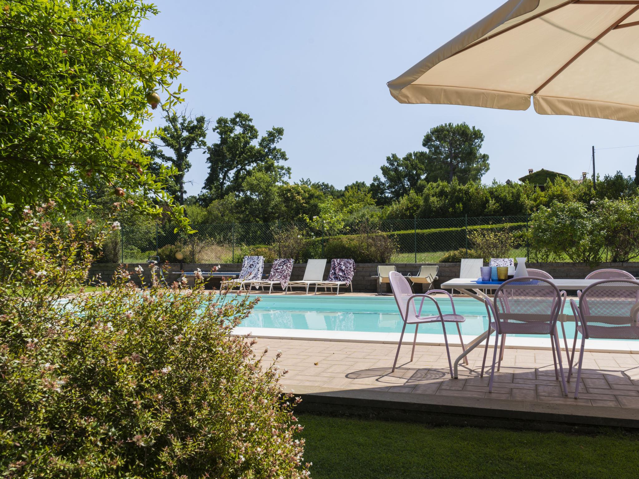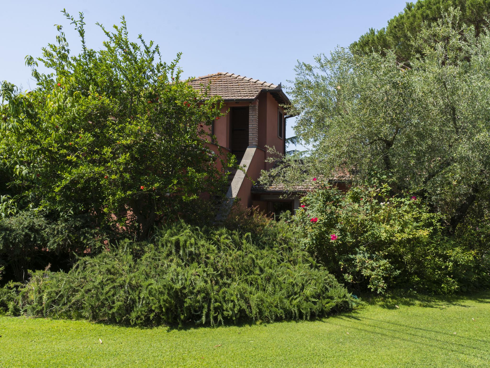 Beautiful, comfortable villa "Casal di Yuri", detached, surrounded by trees. In the district of Tre Croci 5 km from the centre of Vetralla, 16 km from the centre of Viterbo, 70 km from the centre of Roma, 13 km from the lake. Private: well-kept garden 1'500 m2 (fenced) with lawn and wildlife garden, swimming pool (12 x 6 m, seasonal availability: 23.May. - 03.Oct.). Outdoor shower, garden furniture, barbecue, parking at the house on the premises. Shop 100 m, supermarket 4 km, bus stop 1.2 km, railway station "Vetralla" 4 km, sandy beach "Lido di Tarquinia" 40 km, lake Vico 13 km. Golf course (18 hole) 26 km. Nearby attractions: Sutri 20 km, San Martino In Cimino 6 km. Well-known lakes can easily be reached: Bolsena 38 km, Bracciano 31 km. Please note: car recommended. Groups of teenagers on request only. The owner does not accept any youth groups. The owner lives on the same property.