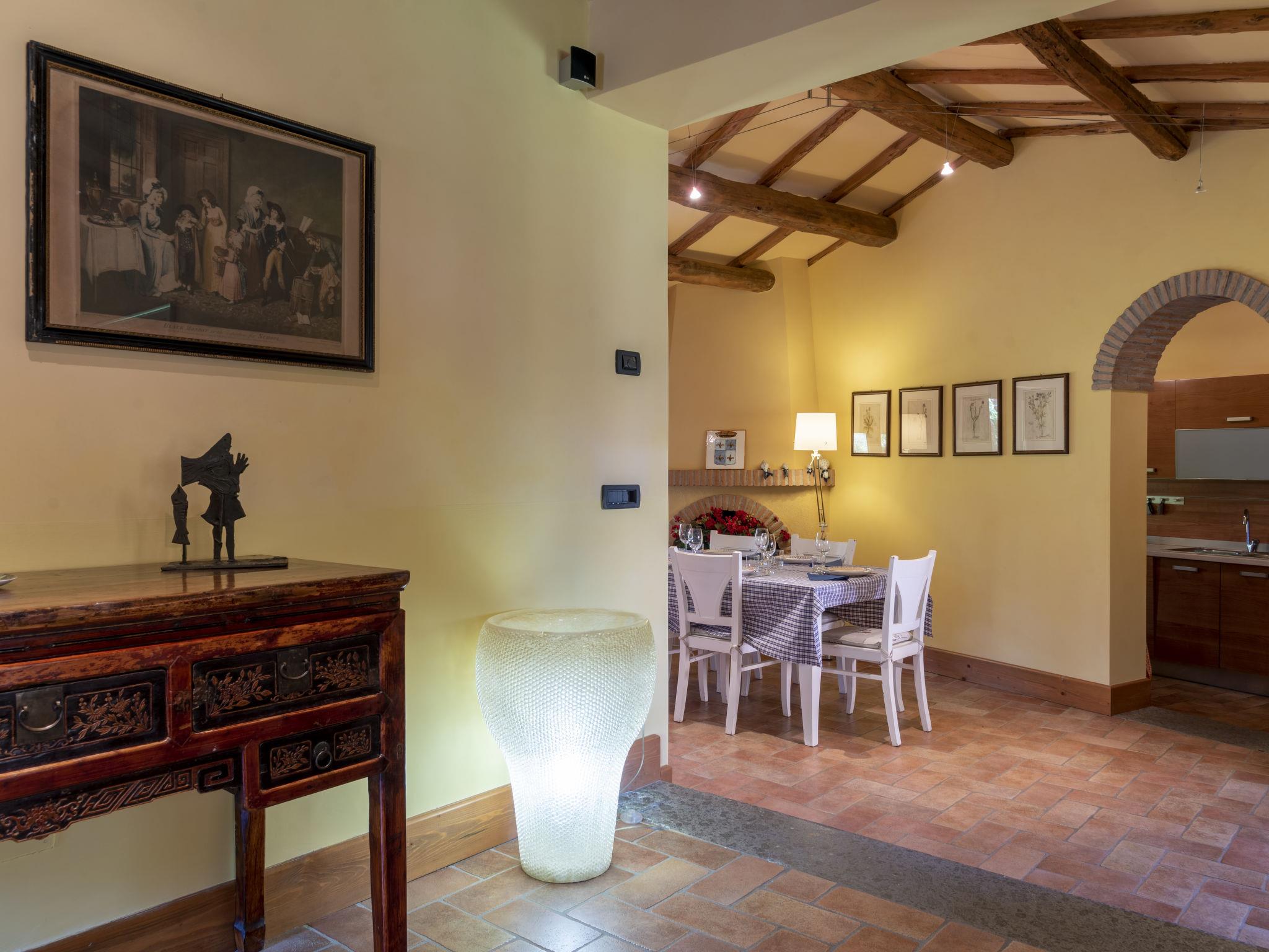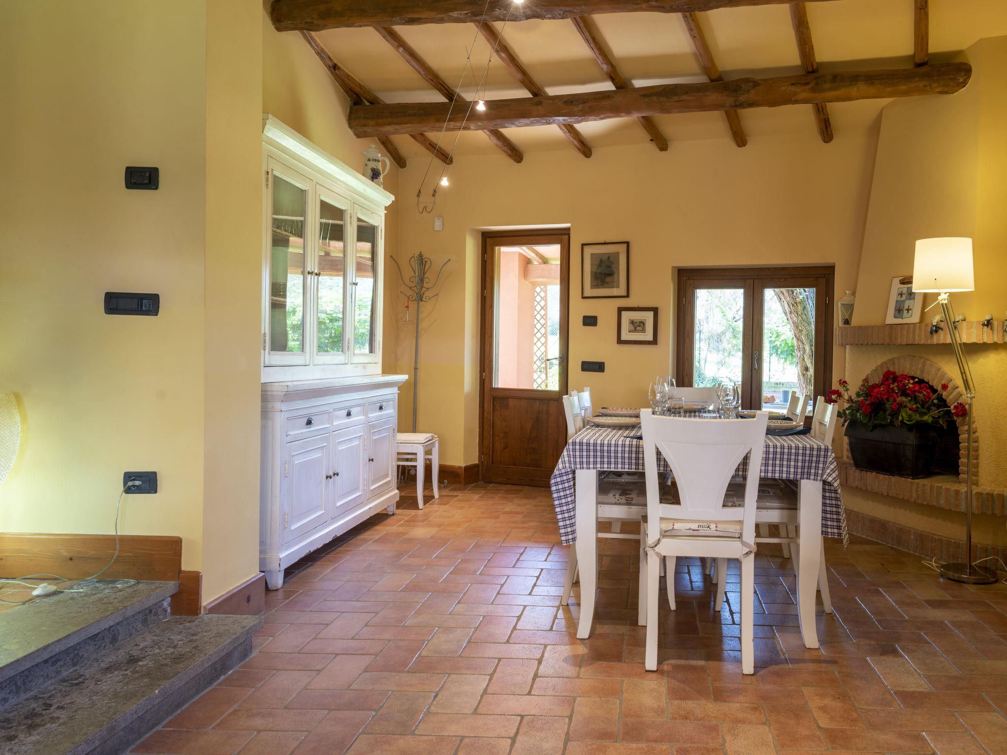"Casal di Yuri", 6-room house 150 m2 on 2 levels. Rustic and tasteful furnishings: living/dining room with open-hearth fireplace, dining table, satellite TV and DVD. Exit to the terrace. Living/dining room with open-hearth fireplace. Exit to the garden. 1 room with 1 french bed (160 cm), bath/WC. 1 room with 1 french bed (160 cm). 1 room with 2 beds. Kitchen (oven, dishwasher, 1 ceramic glass hob hotplate, 4 gas rings, toaster, microwave, freezer, electric coffee machine). Exit to the terrace. Shower/WC. Heating, gas heating. Upper floor: 1 room with 1 french bed (160 cm). Shower/WC. Gas heating, air-conditioning. Terrace 30 m2, roofed, patio. Terrace furniture, barbecue. Facilities: washing machine, baby cot. Internet (WiFi, free). Please note: one double bedroom is outside the apartment. Non-smoking house. When booking at the rate for 6 persons not available: the double room with external access and with shower/WC. When booking at the rate for 4 persons not available: the double room with external access and with shower/WC and one bedroom on the ground floor. When there are less than the maximum number of guests staying at the property, not all of the bedrooms will be available for use. When there are less than the maximum number of guests staying at the property, one floor will not be available for use. IT056057C2E8SDUT35