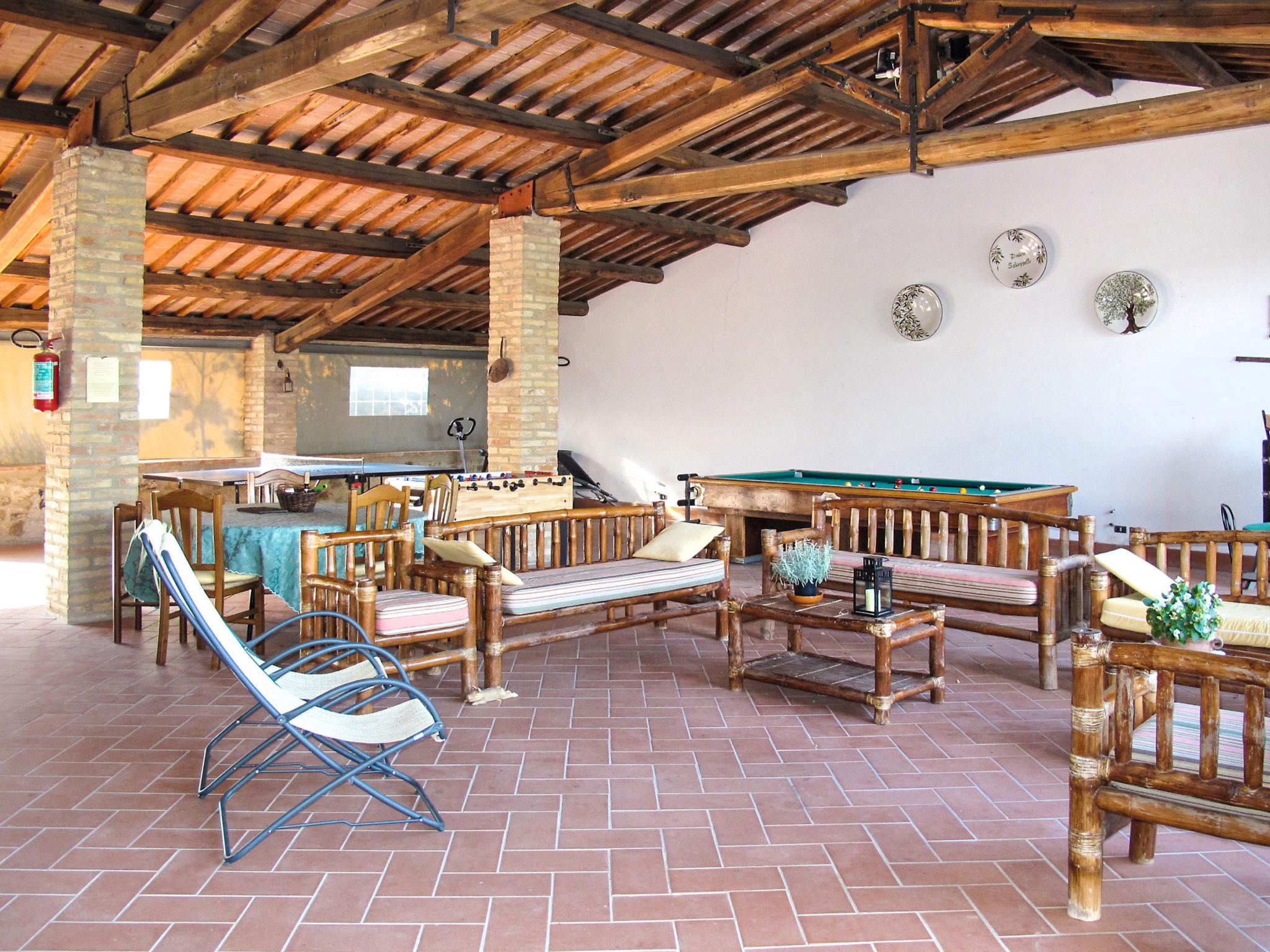 "La Collina Fiorita", 14-room house 550 m2 on 3 levels. Comfortable and rustic furnishings: 1 double bedroom with shower/WC. Living/dining room with kitchen corner, TV and flat screen. Exit to the garden. 3 double bedrooms. Kitchen (oven, dishwasher, 4 gas rings, toaster, microwave, freezer, electric coffee machine, pizza oven). Shower/bidet/WC. Gas heating (extra). Upper floor: living room with kitchen corner and TV (flat screen). Exit to the terrace. 2 double bedrooms. Living room with open-hearth fireplace and kitchen corner. Exit to the terrace. 1 double bedroom. 1 room with 2 beds. 2 showers/bidet/WC. 2nd upper floor: living room with kitchen corner. 1 double bedroom. 1 room with 2 beds. Shower/bidet/WC. Very beautiful, of the countryside. Facilities: washing machine (extra). Maximum 3 pets/ dogs allowed. When there are less than the maximum number of guests staying at the property, not all of the bedrooms will be available for use. IT054040B404006854