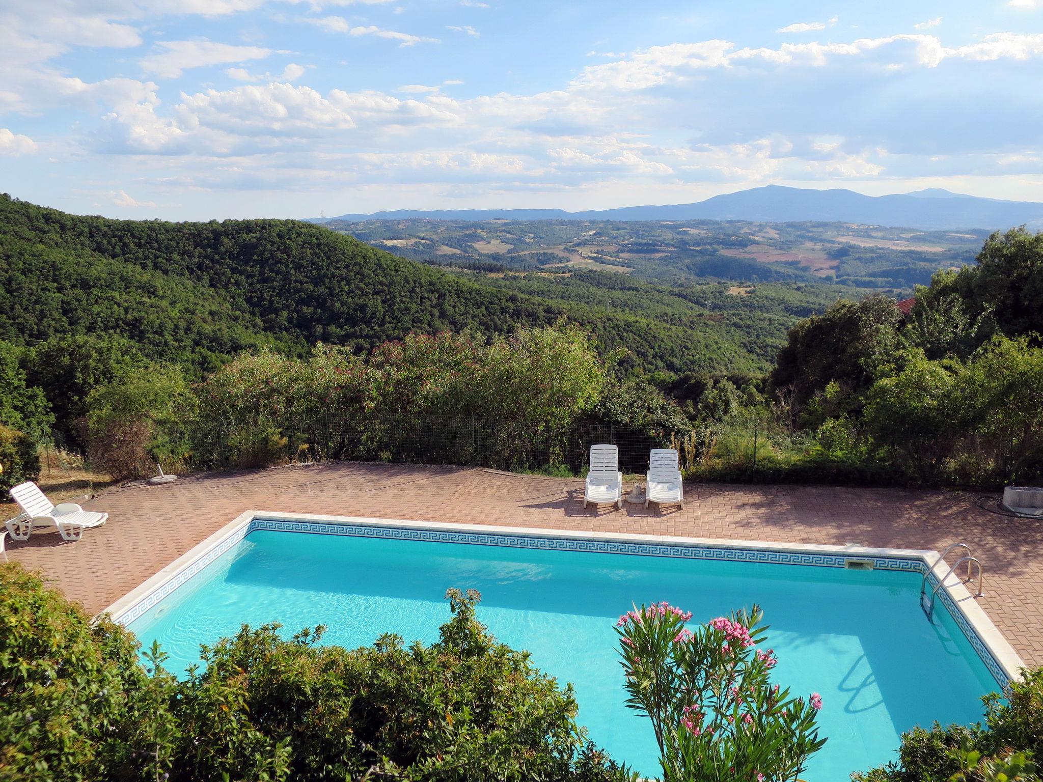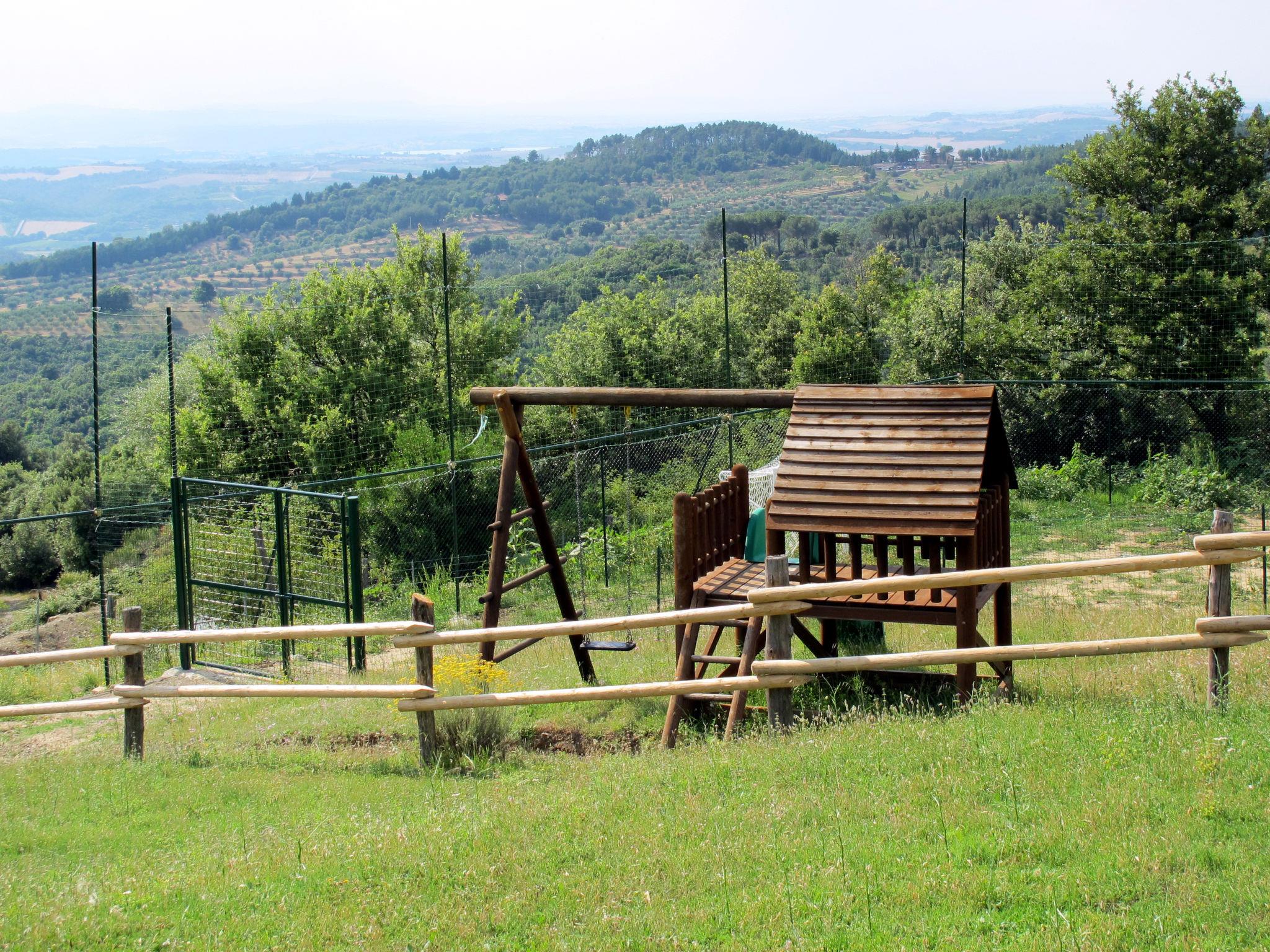 Country house "Paradiso Selvaggio", 700 m a.s.l.. 6 apartments in the residence. 16 km from the centre of Castiglione del Lago, 3.5 km from the centre of Paciano, 45 km from the centre of Perugia, 15 km from the lake, 15 km from the beach, in the countryside. For shared use: natural state property (fenced), swimming pool (12 x 6 m, depth 140 cm, seasonal availability: 13.May. - 20.Sep.). Barbecue, children's playground. 3.5 km long motor access (via unmade road). Shop 3.5 km, bus stop 3.7 km, railway station "Chiusi Scalo" 15 km.