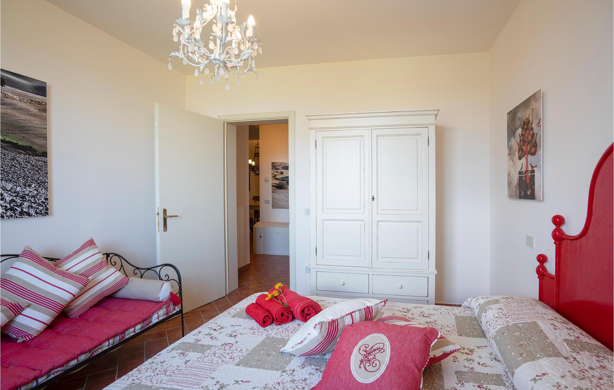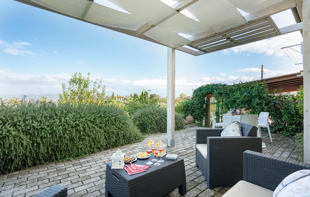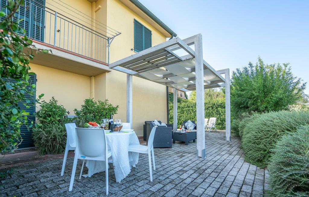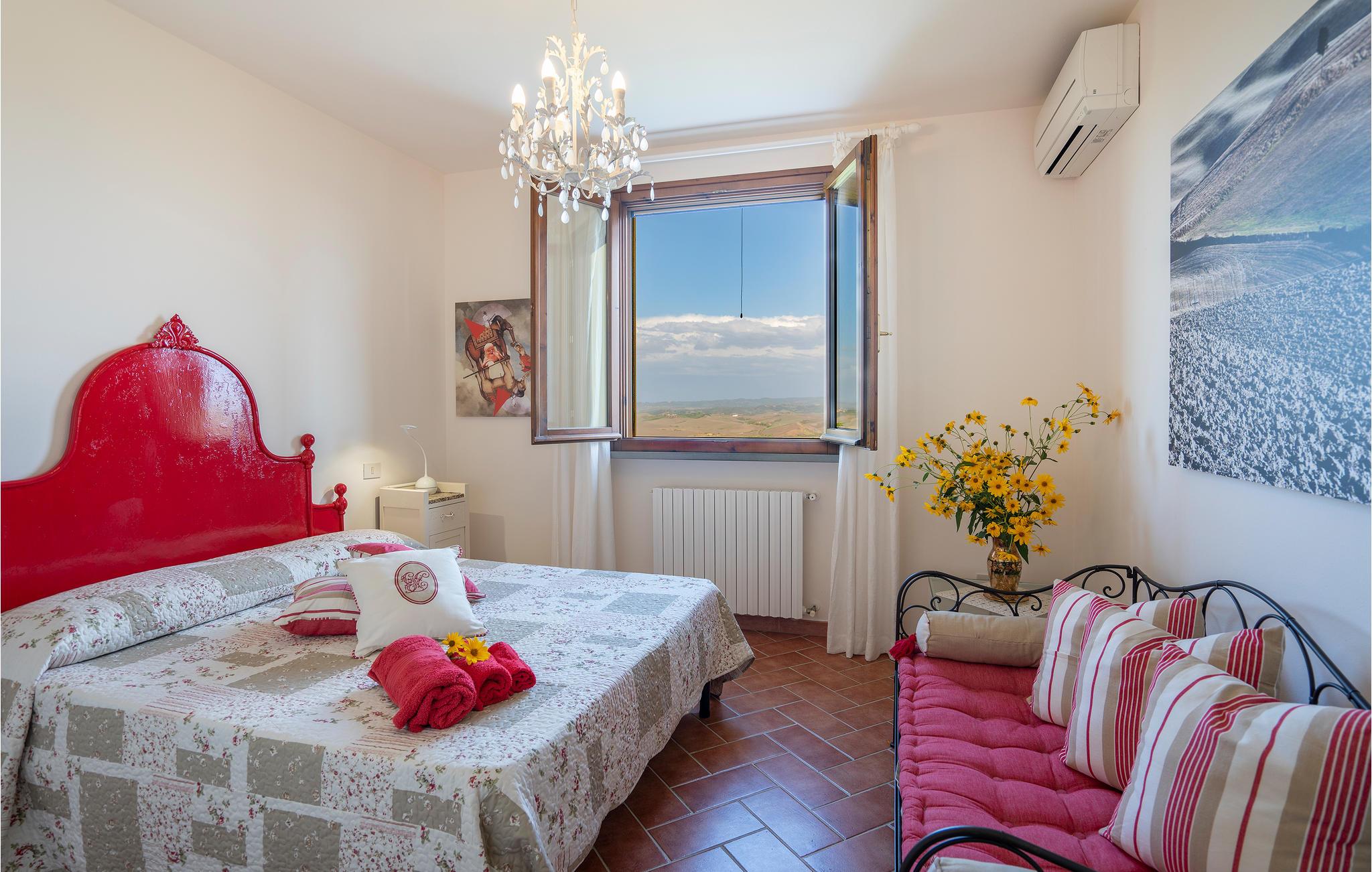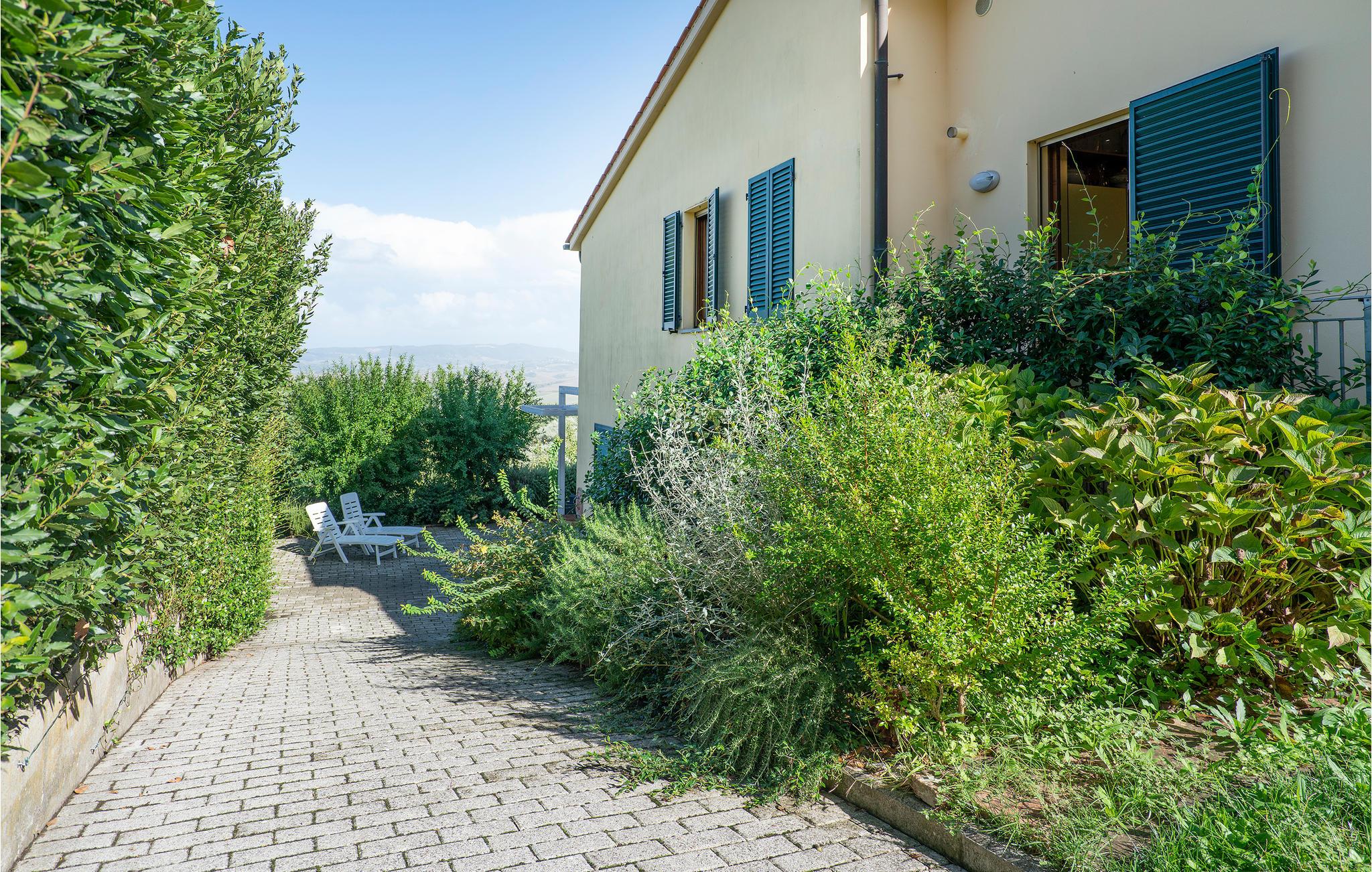 Denne skønne ferielejlighed ligger i en mindre ejendom i nærheden af Lajatico, tenoren Andrea Bocellis hjemby, i Pisaprovinsen. Til lejligheden hører en privat have og herfra er der en fantastisk udsigt over dalen, med det unikke amfiteater Teatro del Silenzio, 300 m fra huset. Her holdes der hvert år i juli en koncert med byens berømte barn: Bocelli. Lejligheden er elegant og moderne indrettet. Haven er indhegnet og indrettet med havemøbler hvor I kan slappe af i solen. Der er ikke langt til de skønneste toscanske byer: 20 km Volterra, med etruskisk oprindelse, 32 km San Gimignano, tårnenes middelalderby, 50 km til Pisa med det berømte skæve tårn, 56 km til den livlige havneby Livorno. I kan gå til Lajatico med alle former for butikker. 40 km til strandene og havet.
