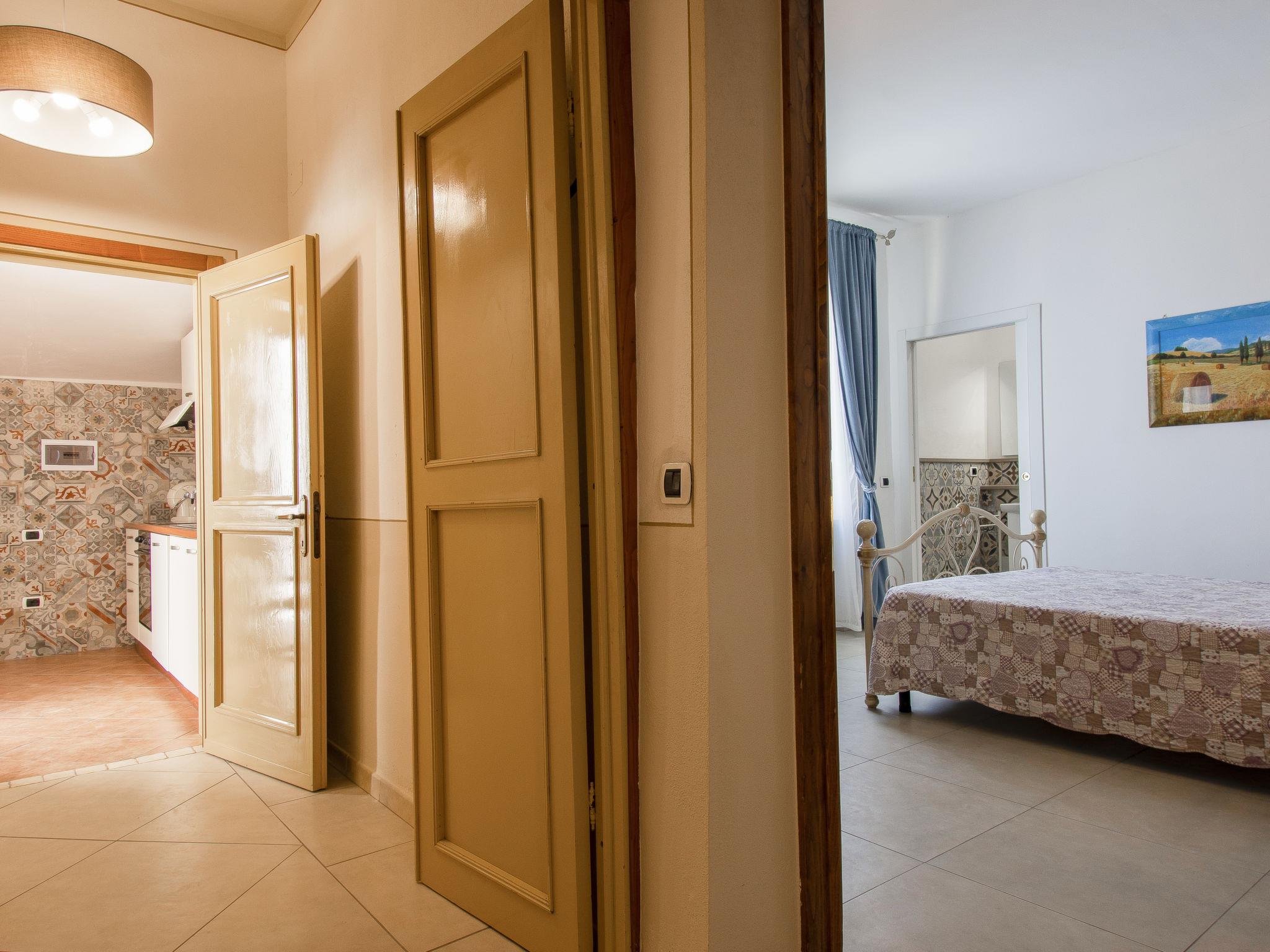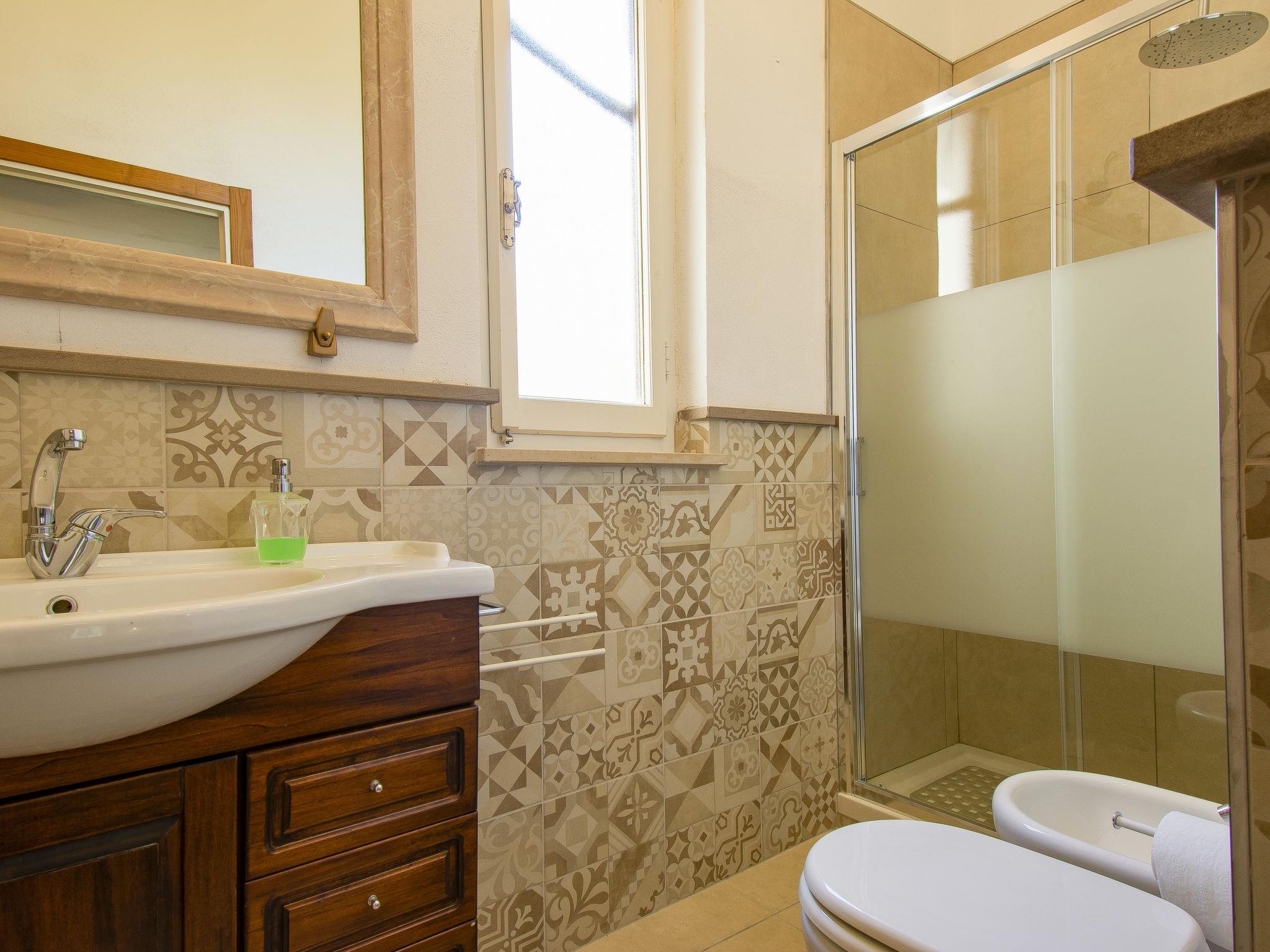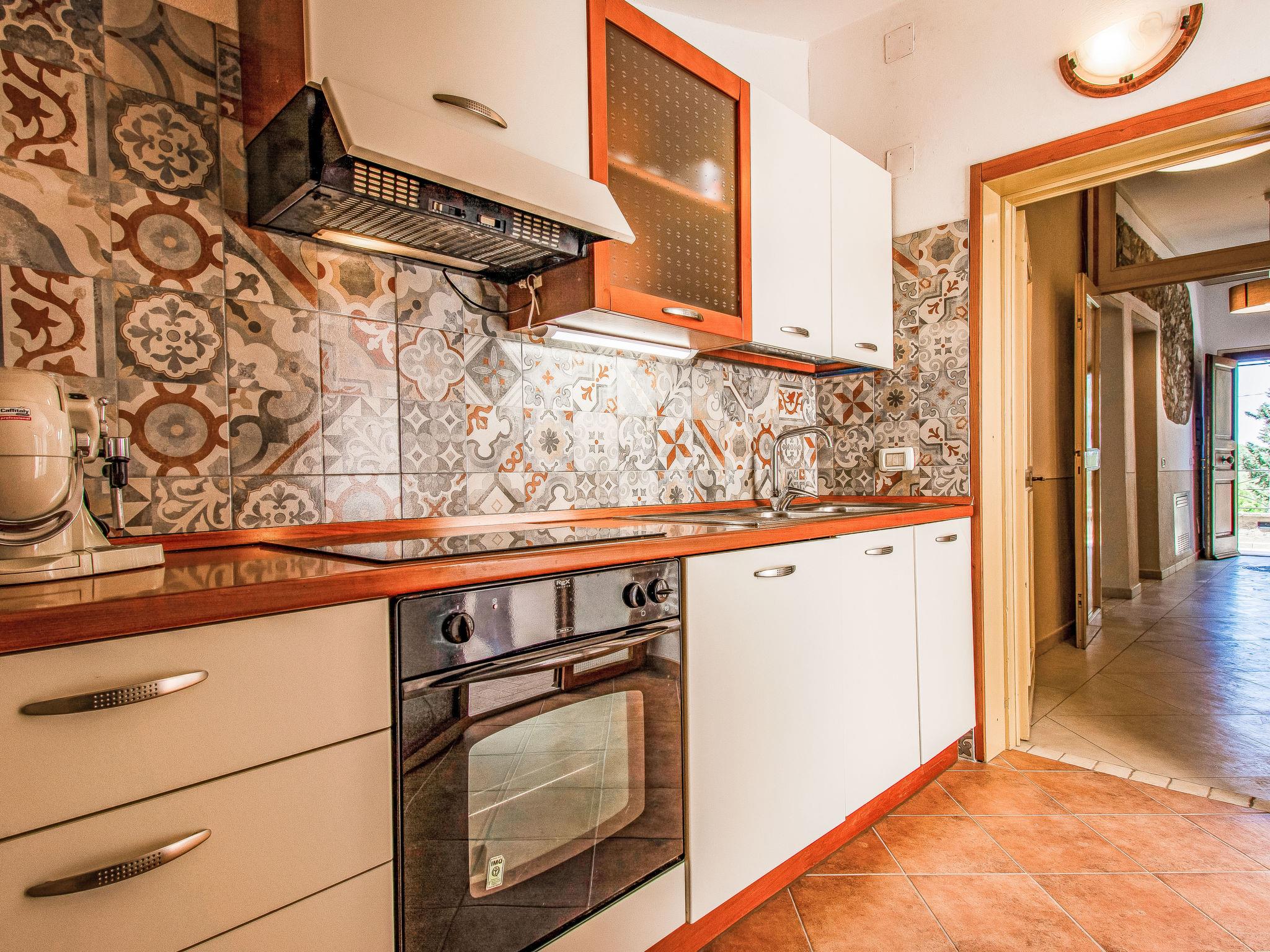 "Bianco", 4-room house 100 m2 on 1st floor. Bright, tasteful and cosy furnishings: living room with 1 sofabed, 1 double sofabed, open-hearth fireplace and shower/bidet/WC. 2 double bedrooms, each room with shower/bidet/WC. Kitchen (dishwasher, 4 induction hot plates, toaster, kettle, microwave, electric coffee machine). Exit to the terrace. Terrace furniture, deck chairs. Facilities: hair dryer. Internet (WiFi, free). Please note: maximum 1 pet/ dog allowed. Smoke alarm, fire extinguisher. IT050016B5RB47C3OT