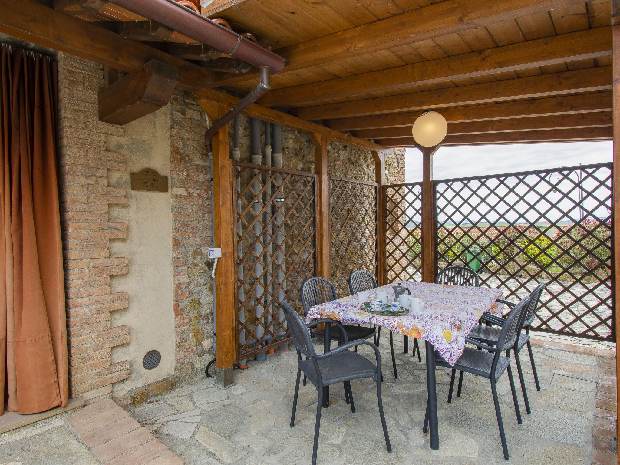 "Verde", 2-room apartment 45 m2, on the ground floor. Beautiful and cosy furnishings: living/dining room with 1 double sofabed, digital TV and air conditioning. Exit pergola. 1 double bedroom with shower/bidet/WC and air conditioning. Kitchen (dishwasher, 4 induction hot plates, toaster, kettle, microwave, electric coffee machine). Comfortable furnishings in the country house style. Terrace furniture, deck chairs. Facilities: washing machine (extra). Mosquito net, children's high chair, baby cot for up to 2 year olds, hair dryer. Internet (WiFi, free). Maximum 1 pet/ dog allowed. IT050016B5RB47C3OT