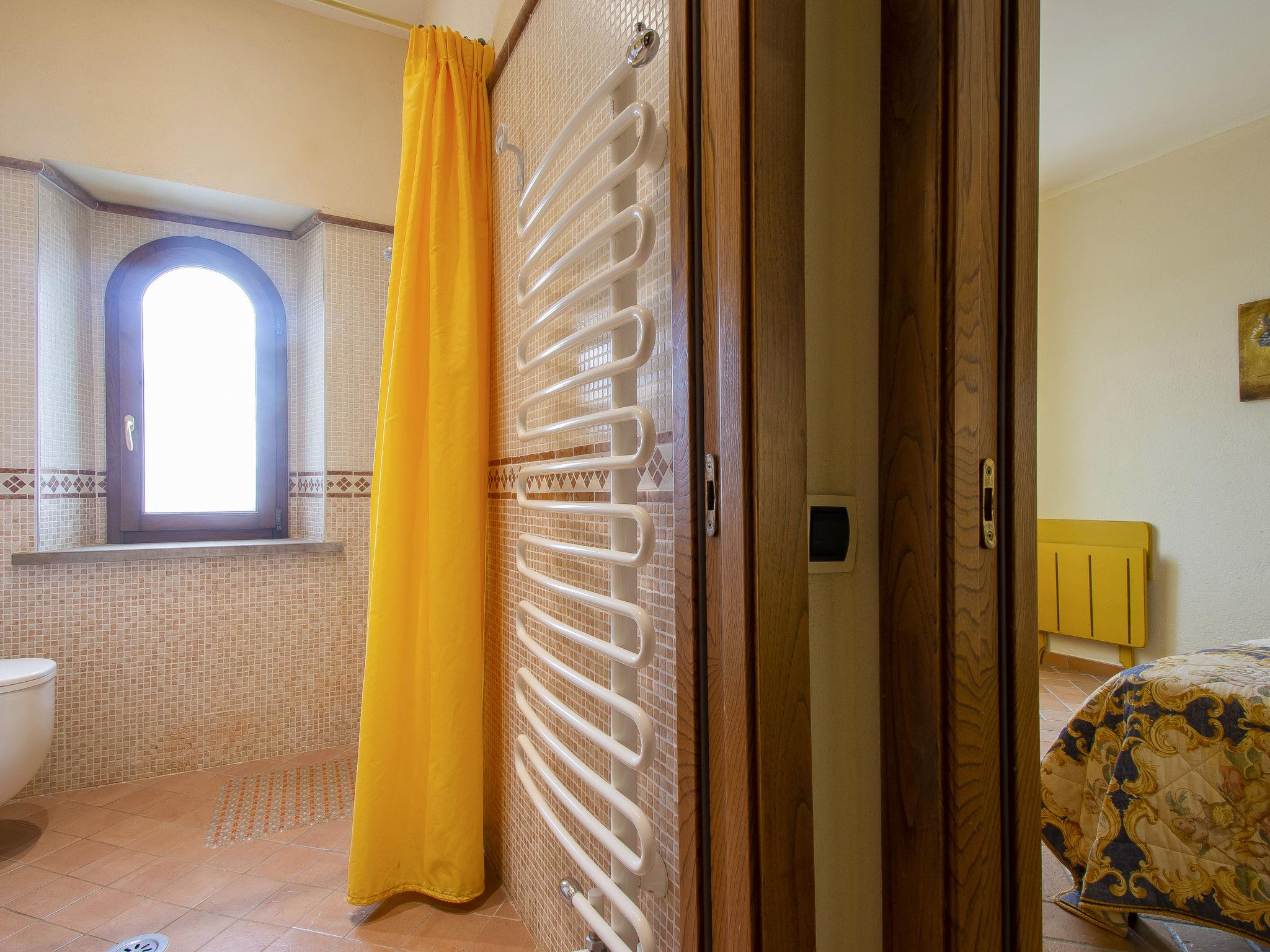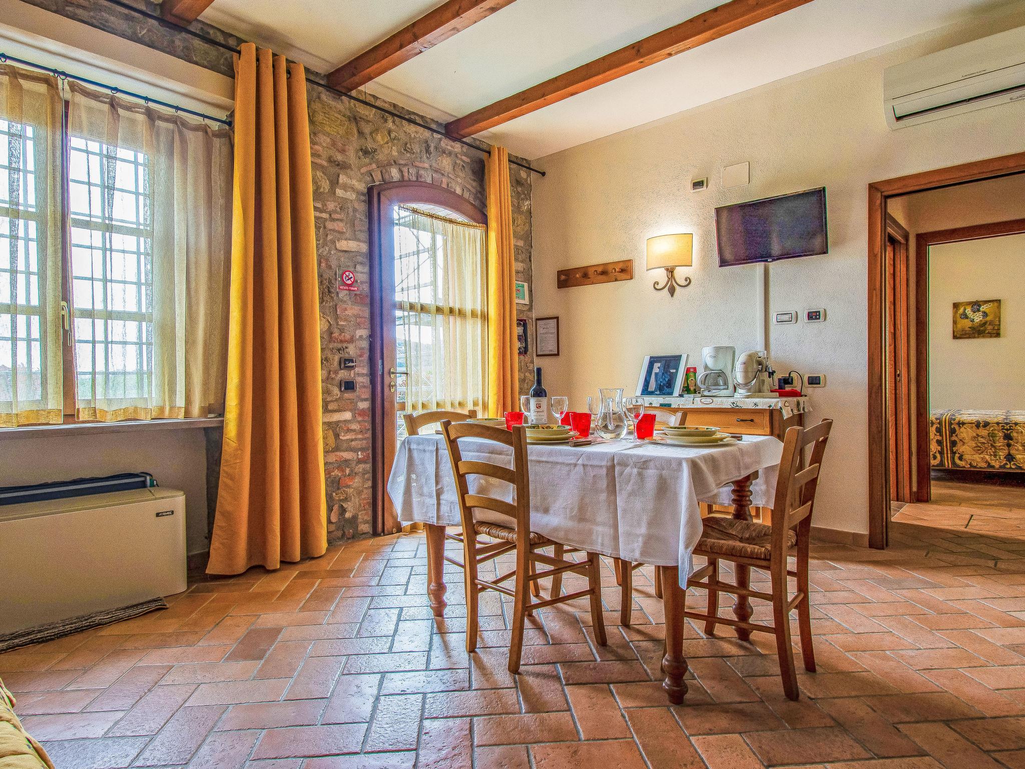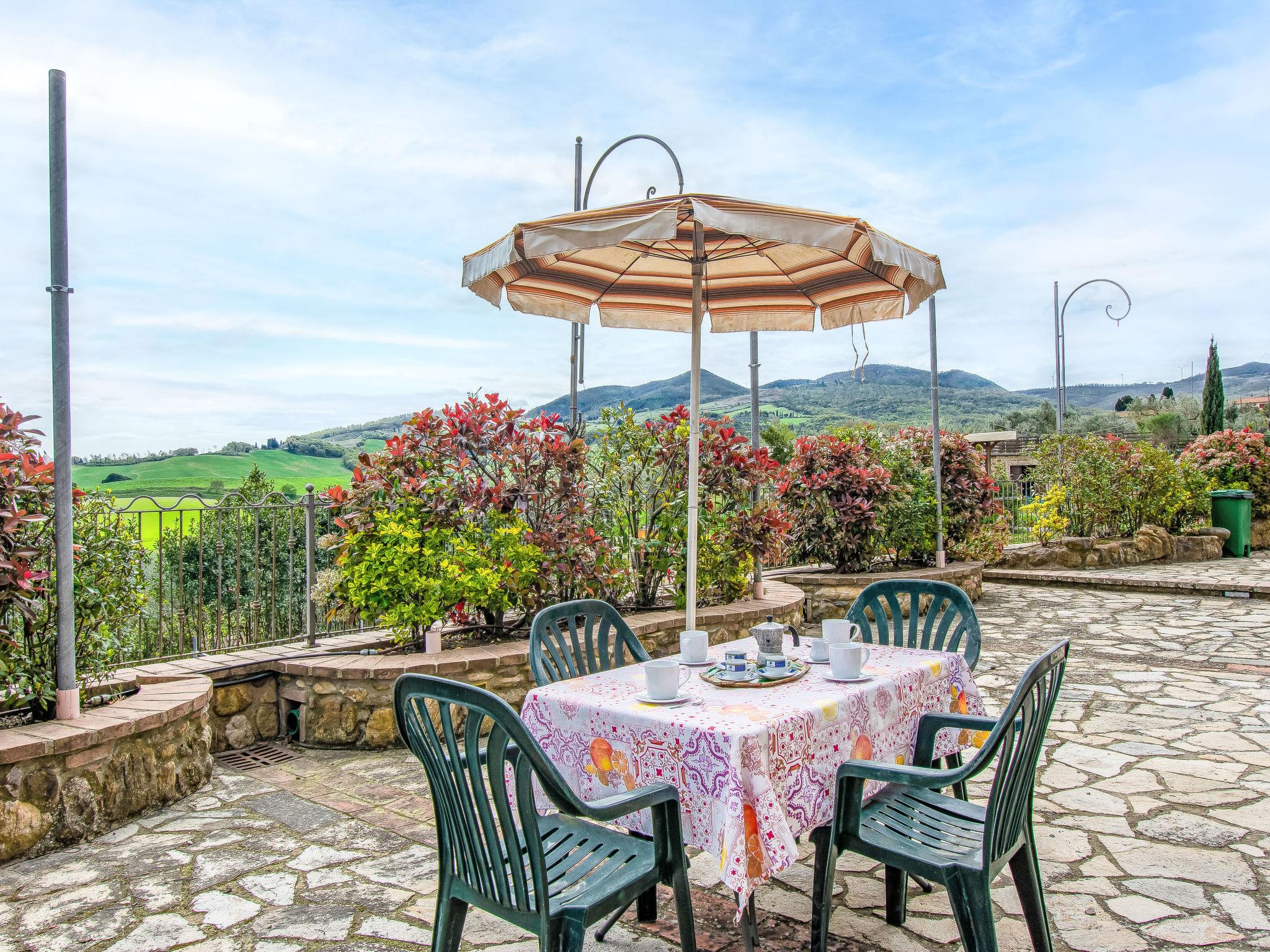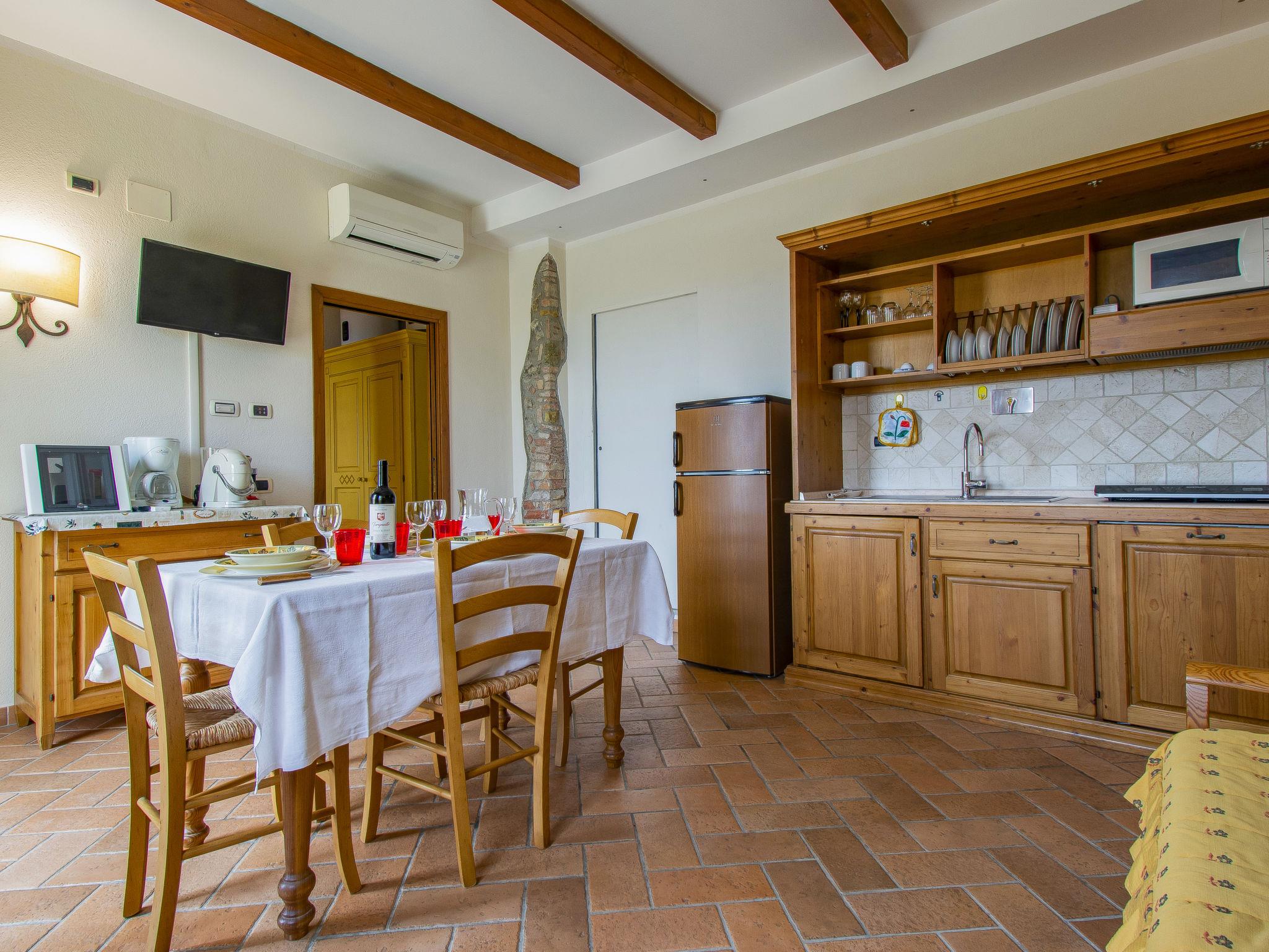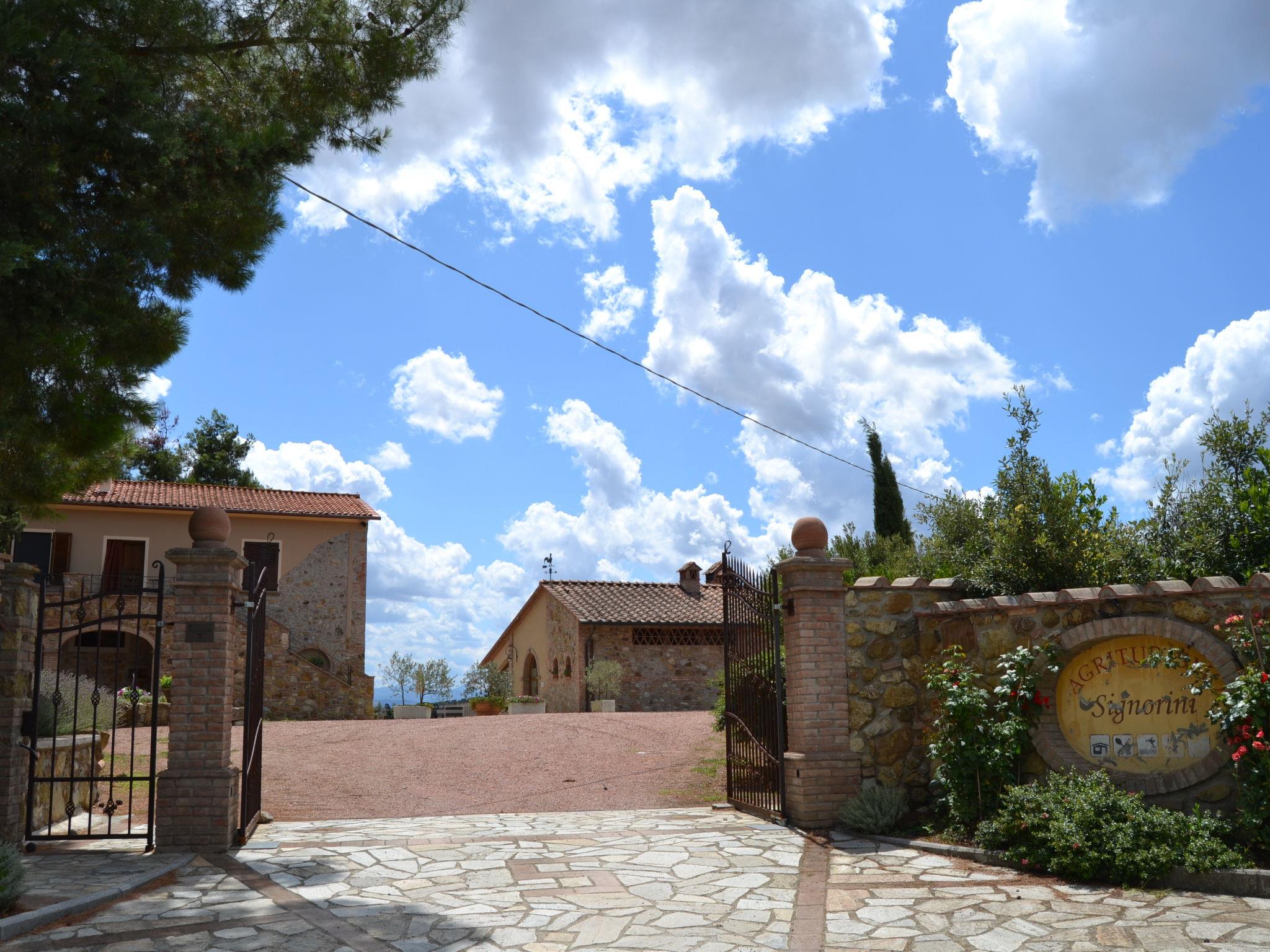 Cosy, comfortable country house 200 m a.s.l., renovated in 2005, surrounded by trees and vineyards. 5 km from the centre of Lajatico, on top of a hill, in the countryside. For shared use: property 43 ha (fenced), plants and trees, beautiful garden to relax, swimming pool fenced (14 x 6 m, depth 100 - 150 cm, seasonal availability: 01.May. - 01.Oct.). Table tennis, children's playground. In the house: washing machine (extra), heating available only from 15.Nov. - 15.Apr.. Parking (for 2 cars) on the premises. Grocery 7 km, supermarket 7 km, restaurant 10 m, bus stop 2 km, railway station 35 km. Nearby attractions: San Gimignano 25 km, Pisa 50 km, Volterra 15 km, Marina di Cecina 40 m. Please note: baby equipment on request.