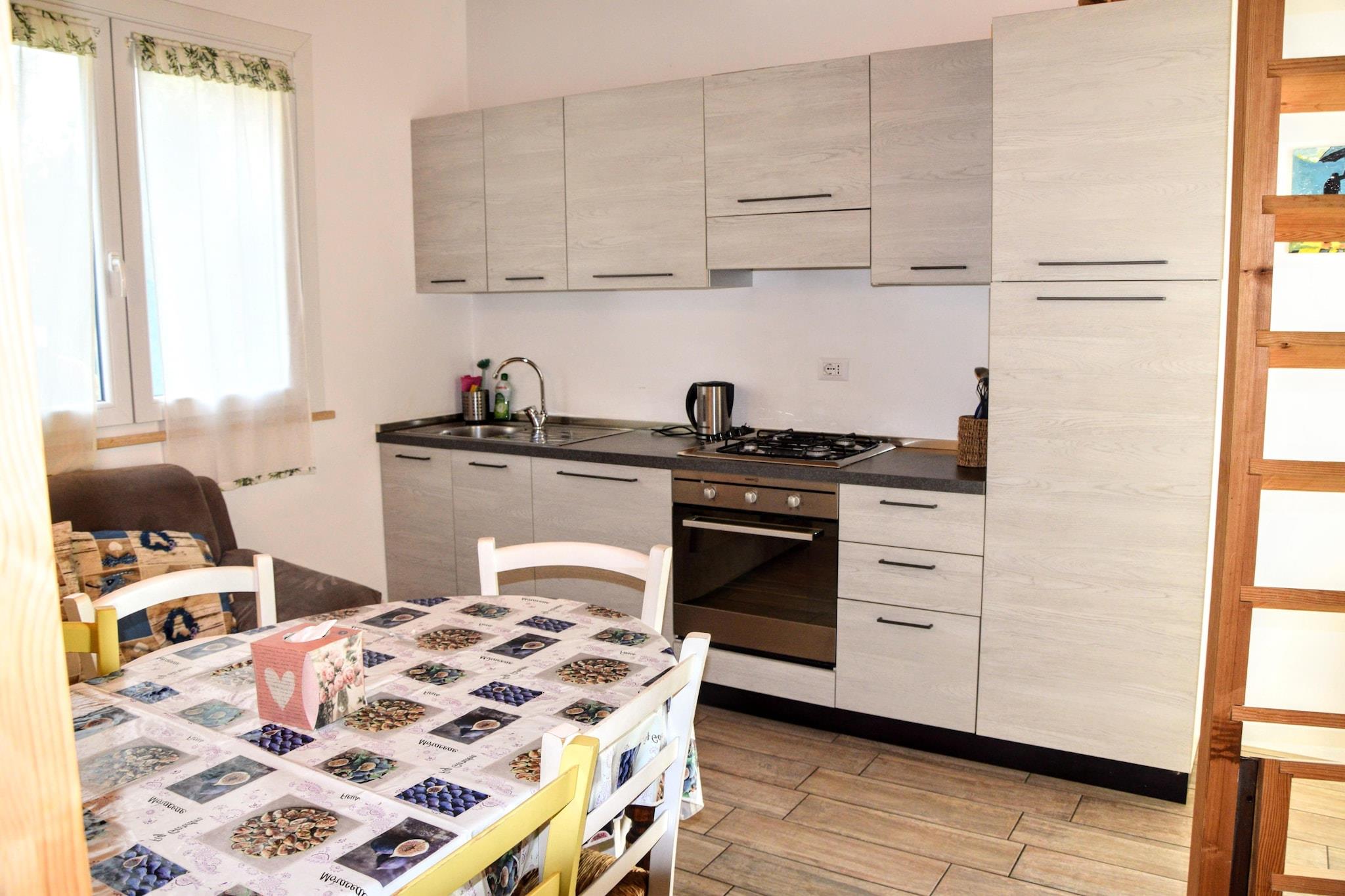 Et perfekt sted for en ferie mellem hav, bakker, natur, midt i de bølgende bakker i Marche blandt frugtplantager og olivenlunde. Lejligheden er beliggende i stueetagen, med en selvstændig indgang og kan rumme op til 5 personer, med 1 soveværelse med dobbeltseng og en mezzanin med enkeltsenge Klimaanlægget vil holde dig kølig selv på de varmeste dage. Stuehuset tilbyder gæsterne en stor swimmingpool med liggestole. Der er også et udendørs fitnesscenter og et legeområde for børn. De lange sandstrande ved Adriaterhavet kan nås i bil på mindre end 10 minutter, mens der i det omkringliggende område er snesevis af små historiske landsbyer at besøge og opdage.