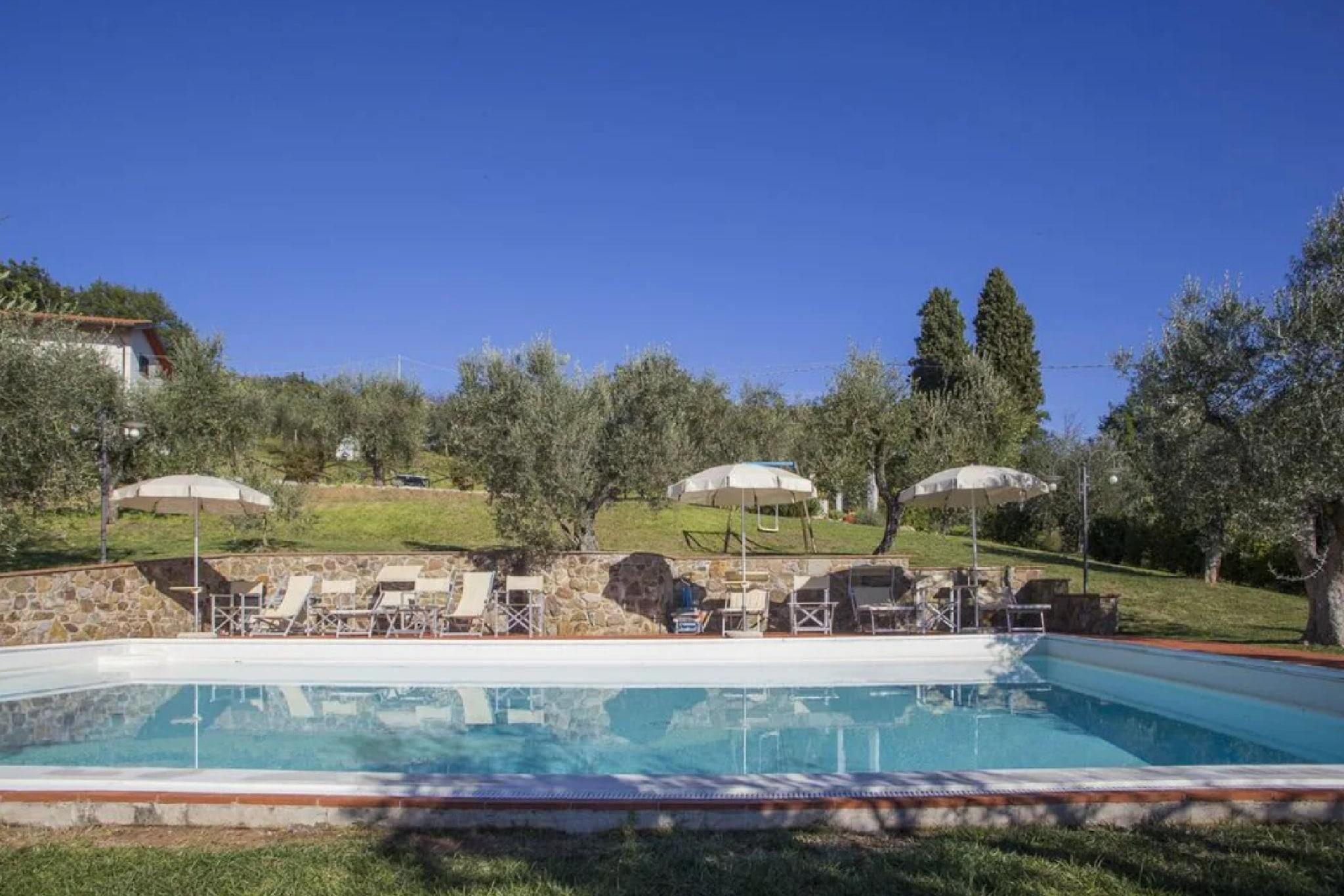 Fra den flotte udsigt over det toscanske landskab til adgang til en swimmingpool og en smagfuldt møbleret have. Dette skønne feriehus byder på alle ingredienserne til en uforglemmelig ferie med din partner eller familie! Golf Montecatini Terme SSD ligger i kort afstand, og du kan slå en bold på en smuk beliggenhed, midt i de toscanske bakker. Prøv det lokale køkken på restauranter i nærheden af boligen, såsom Il Ghianda, 3,7 km derfra, og køb de daglige fornødenheder i supermarkedet 6,9 km derfra. Du kan nyde at gå gennem denne smukke region, og en dagstur til kunstbyen er også meget værd Start dagen afslappet med morgenmad i haven og tilbered selvstændigt de mest velsmagende opskrifter i dit eget køkken. Badeværelset har en vaskemaskine, og soveværelset med king-size seng er særdeles behageligt.