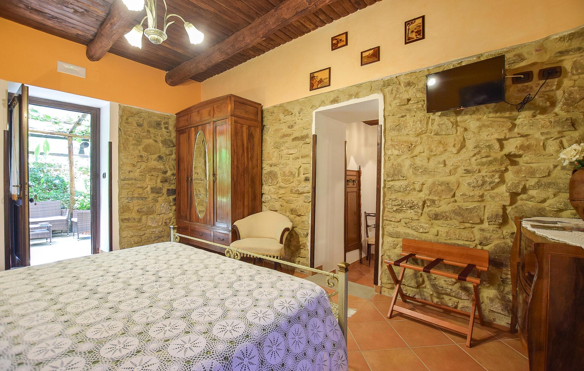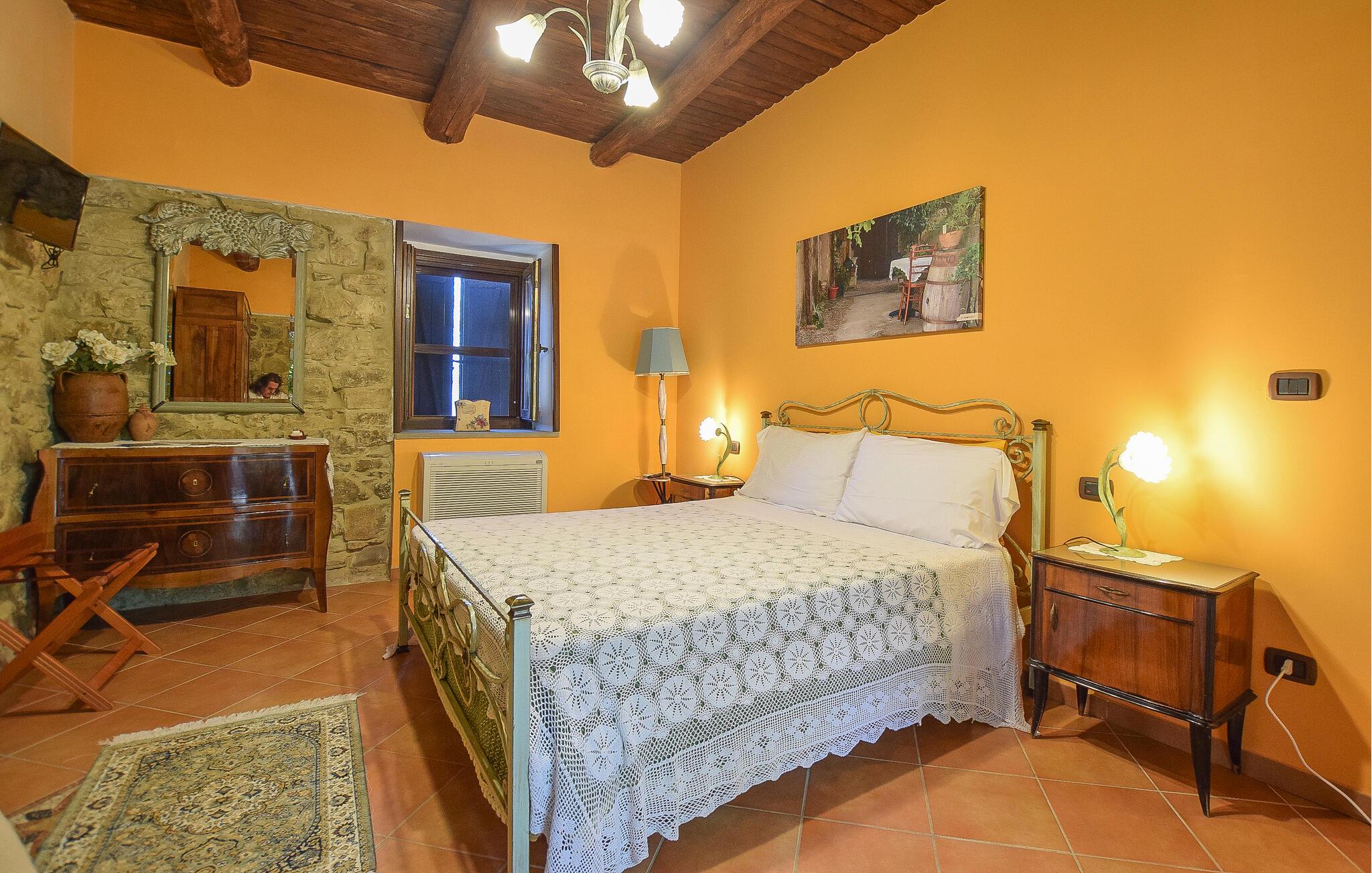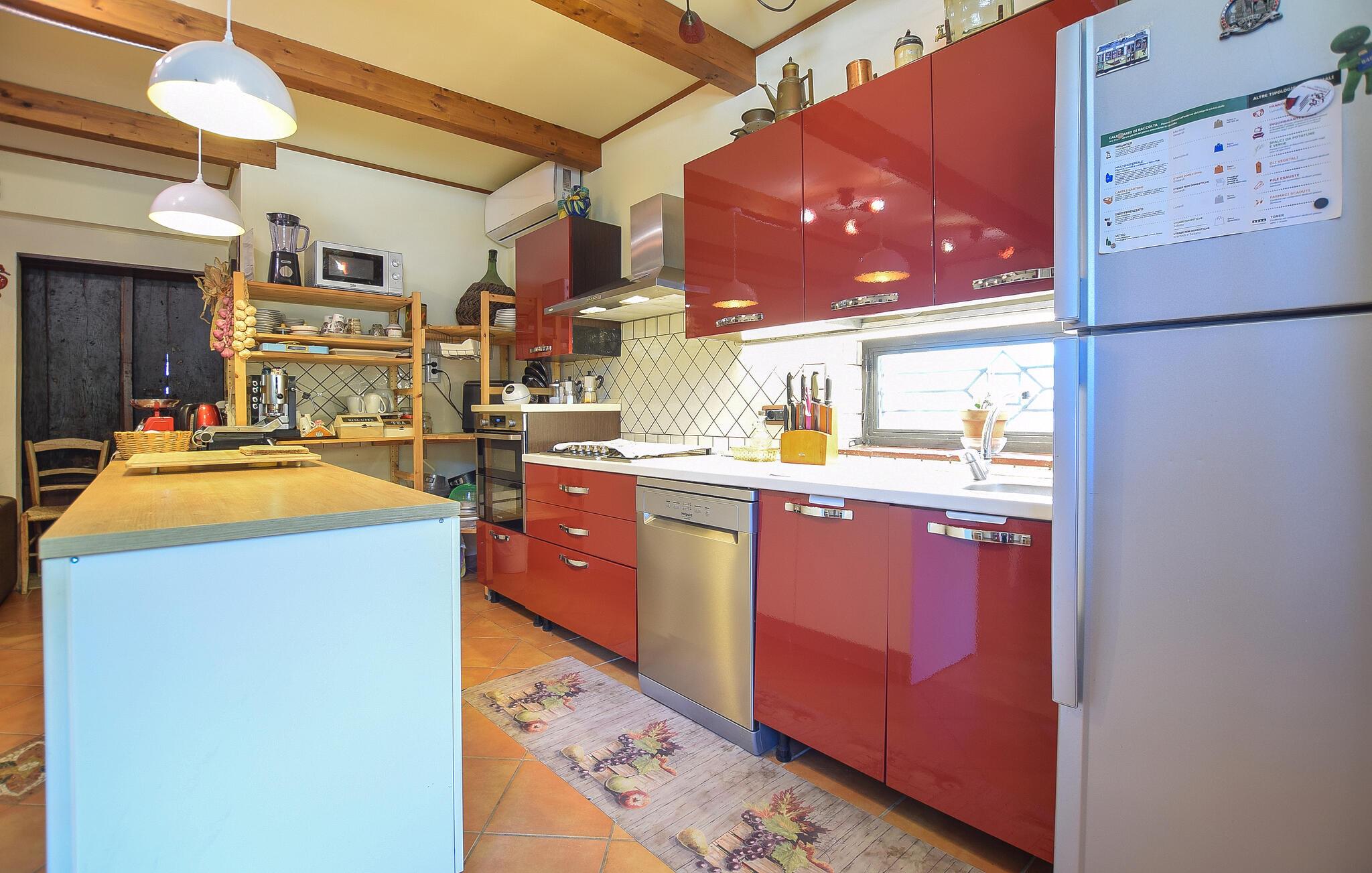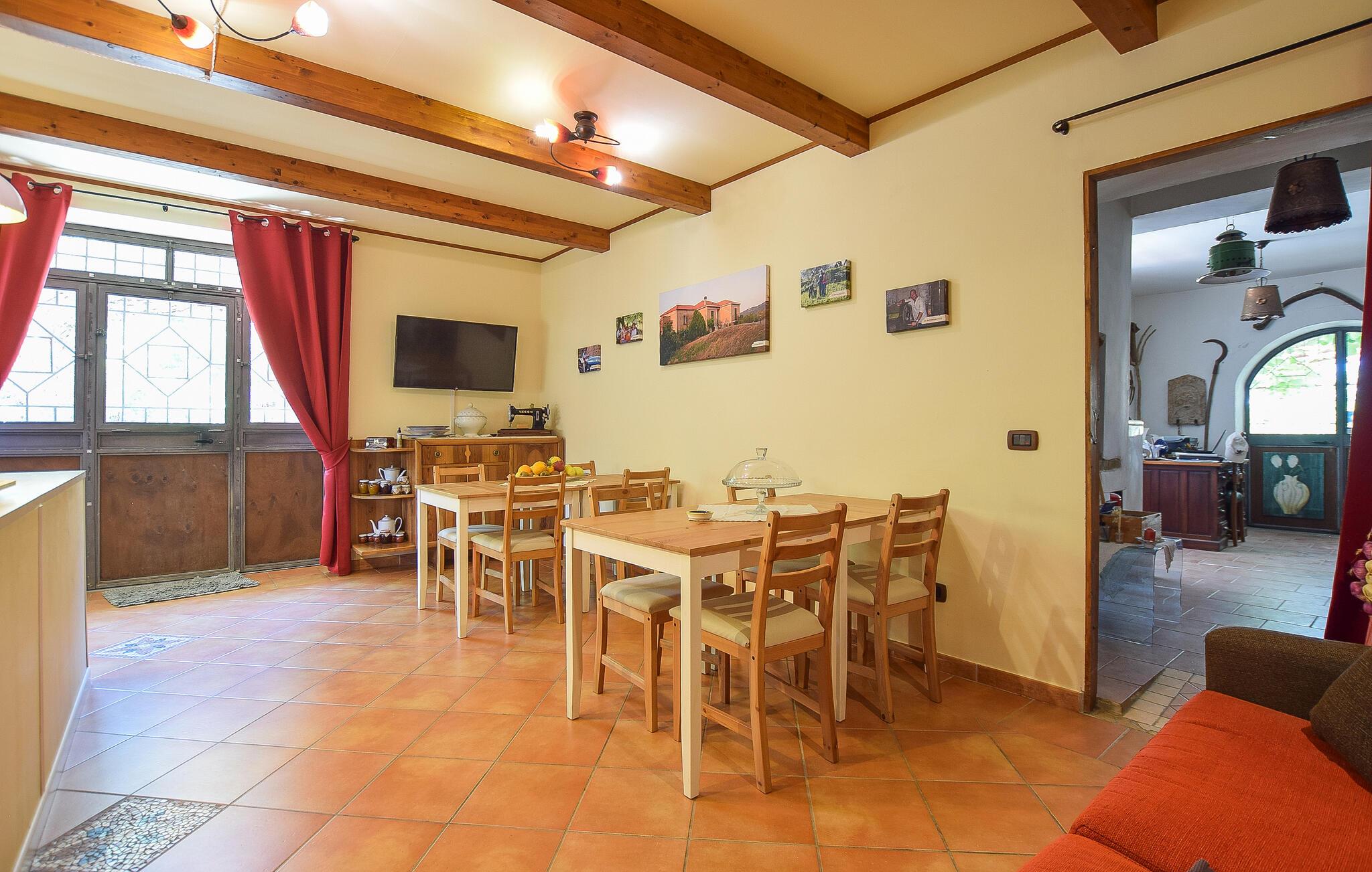 Inde i lejligheden finder I et veludstyret, moderne køkken, hvor I kan tilberede en italiensk middag. Nyd jeres måltider i det hyggelige spisebordshjørne, hvor masser af træ og varme farver skaber en indbydende atmosfære. Brug terrassen til at nyde jeres morgenmad med udsigt over det fortryllende omkringliggende landskab. Sæt jer til rette i det hyggelige haveområde, som er udstyret med komfortable siddepladser og liggestole, og nyd freden, roen og det grønne omkring jer. Spabad lægger op til ren afslapning.
