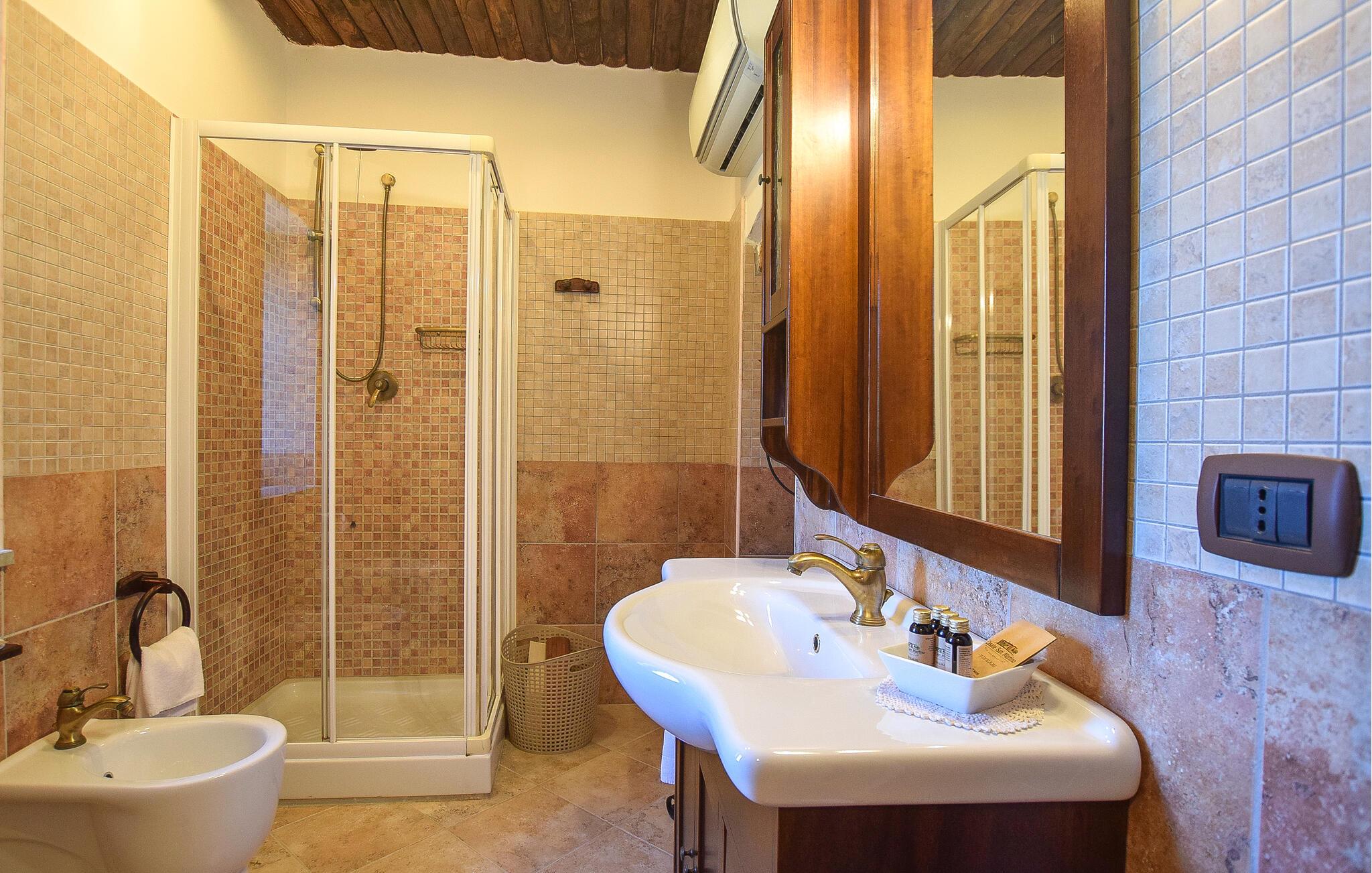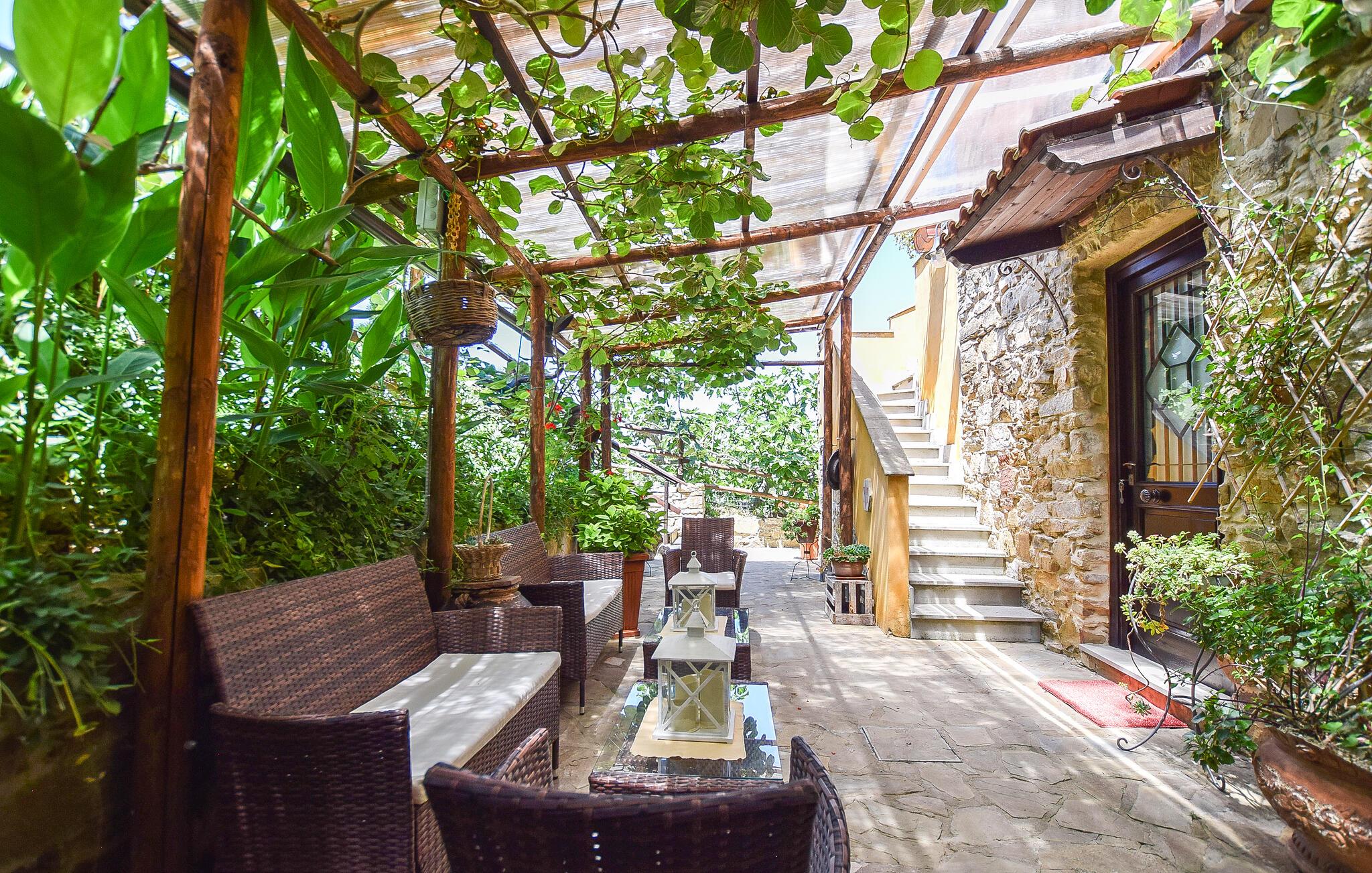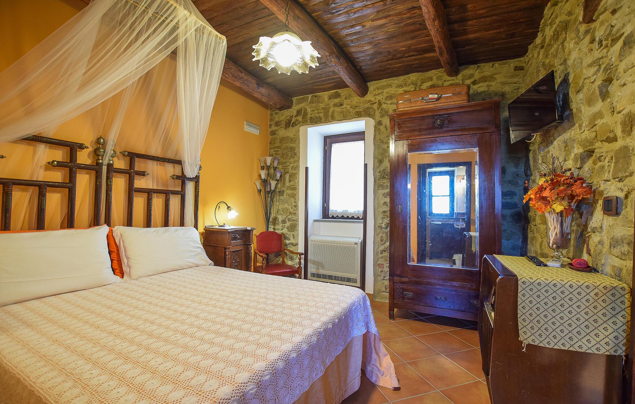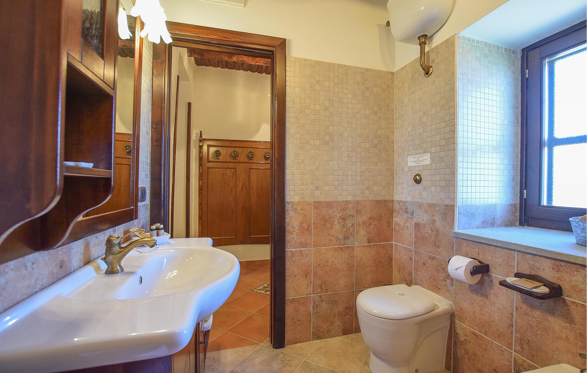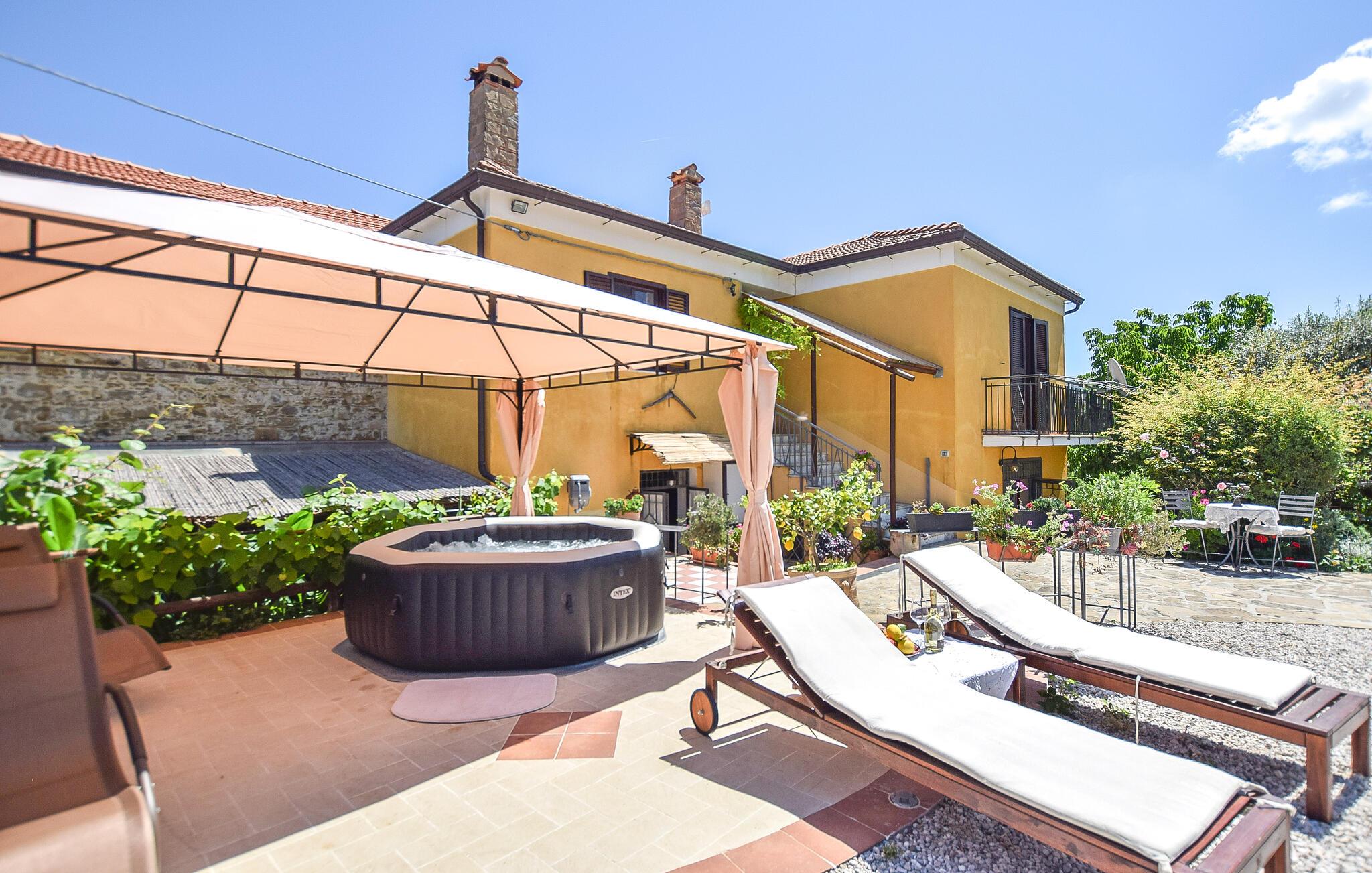 Inde i lejligheden finder I et veludstyret, moderne køkken, hvor I kan tilberede en italiensk middag. Nyd jeres måltider i det hyggelige spisebordshjørne, hvor masser af træ og varme farver skaber en indbydende atmosfære. Brug terrassen til at nyde jeres morgenmad med udsigt over det fortryllende omkringliggende landskab. Sæt jer til rette i det hyggelige haveområde, som er udstyret med komfortable siddepladser og liggestole, og nyd freden, roen og det grønne omkring jer. Spabad lægger op til ren afslapning.