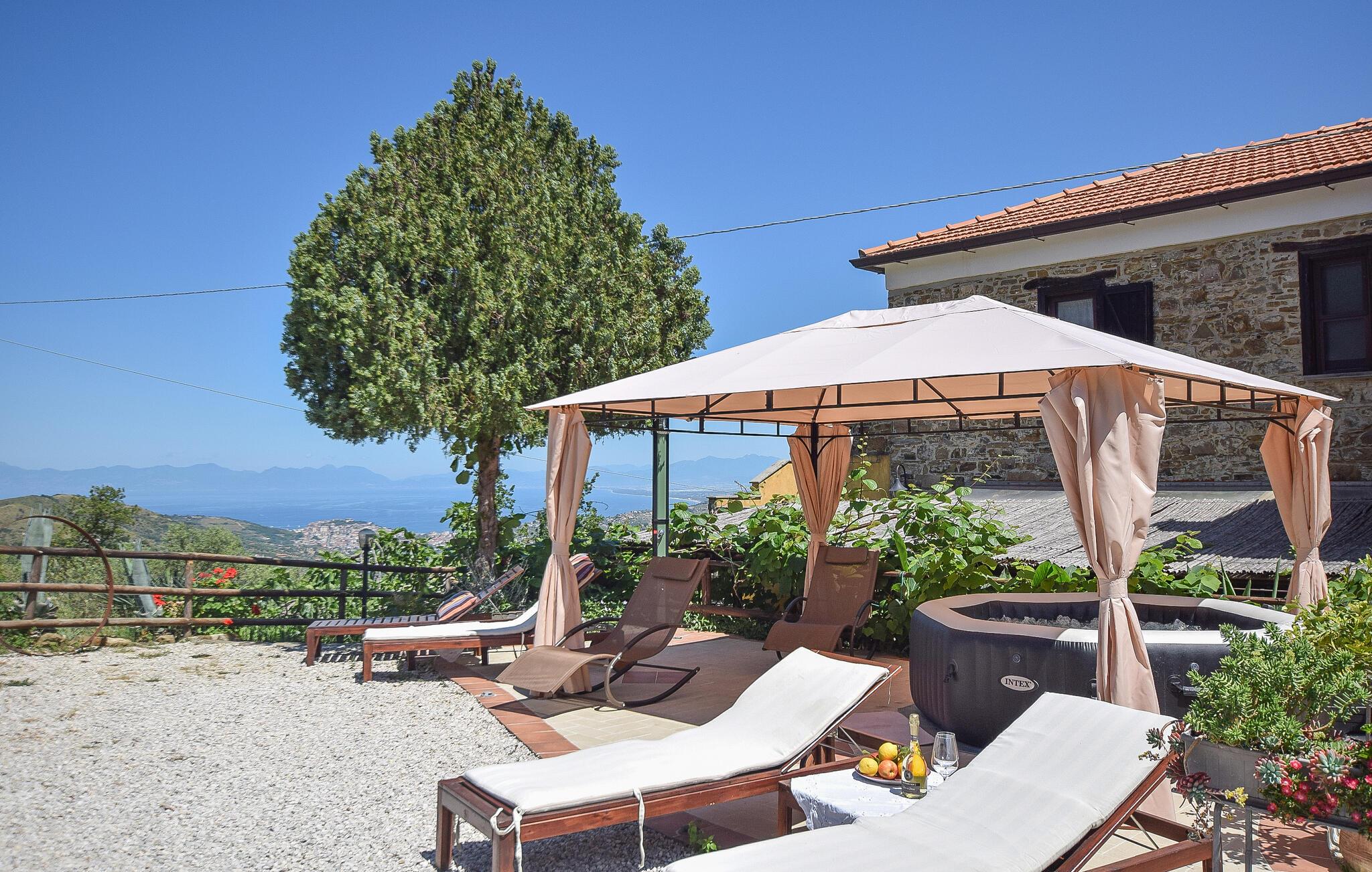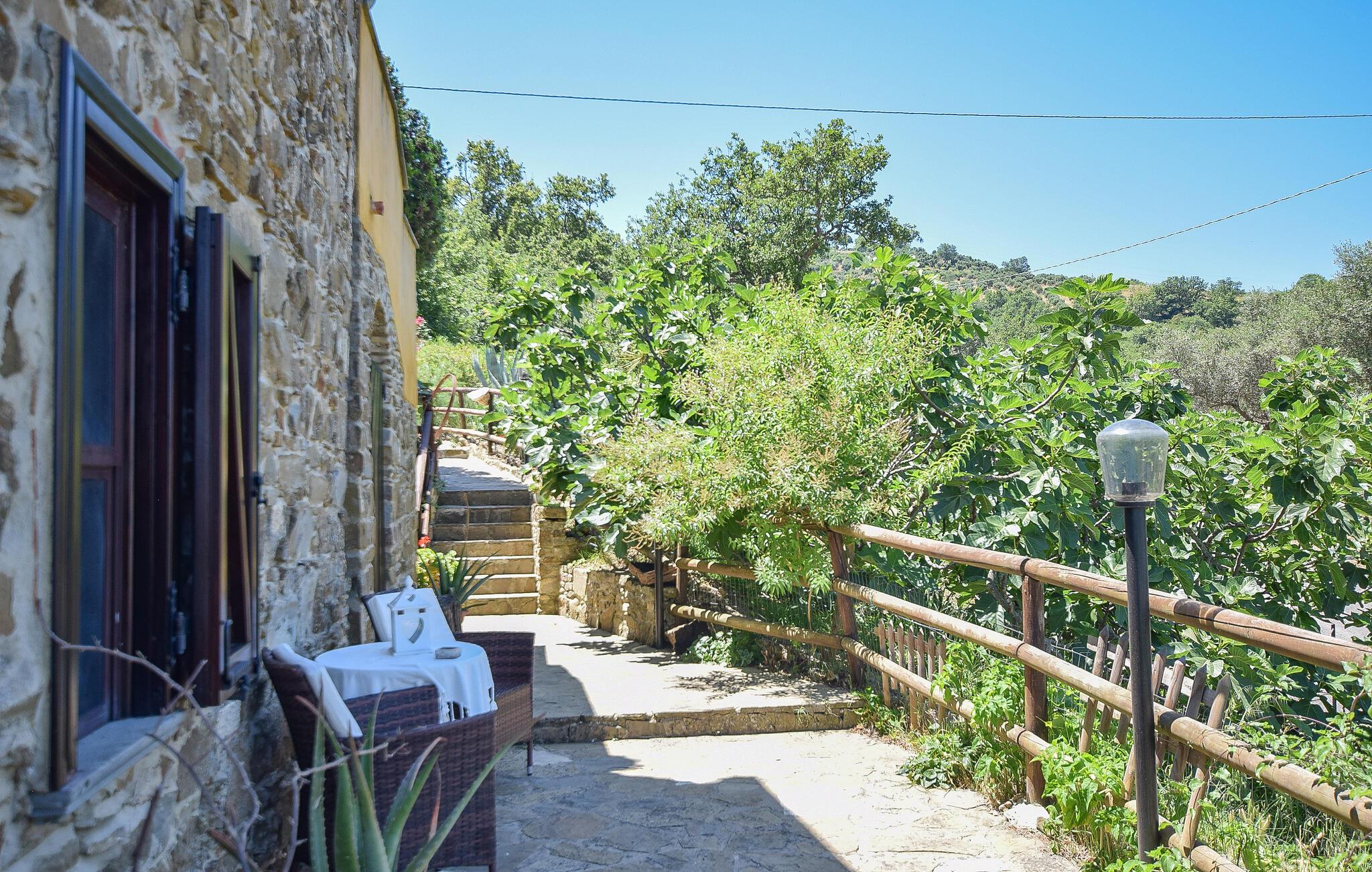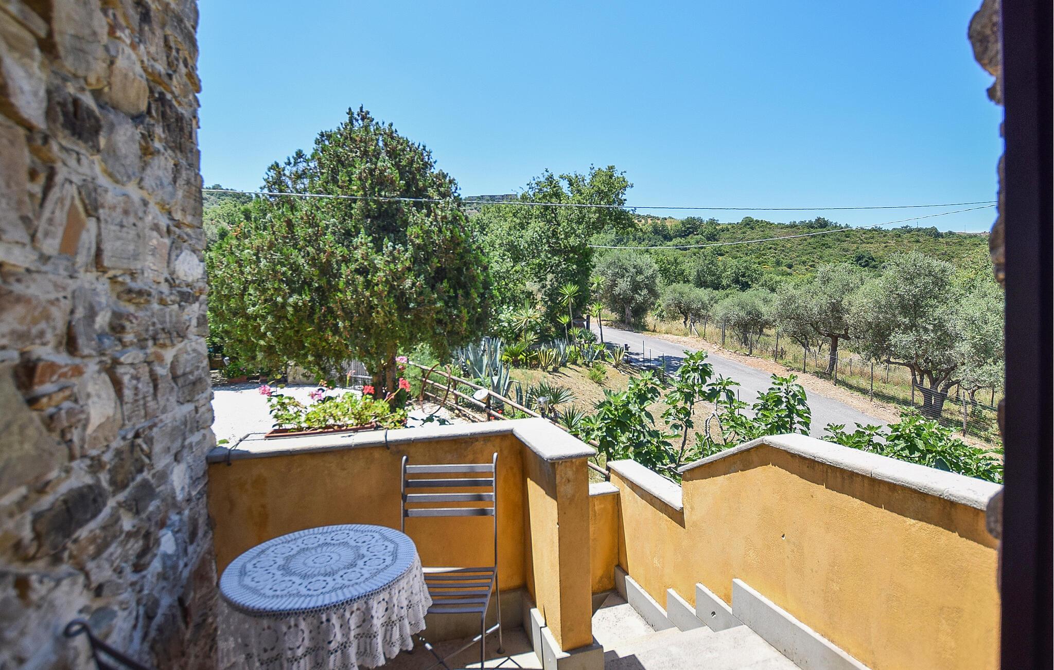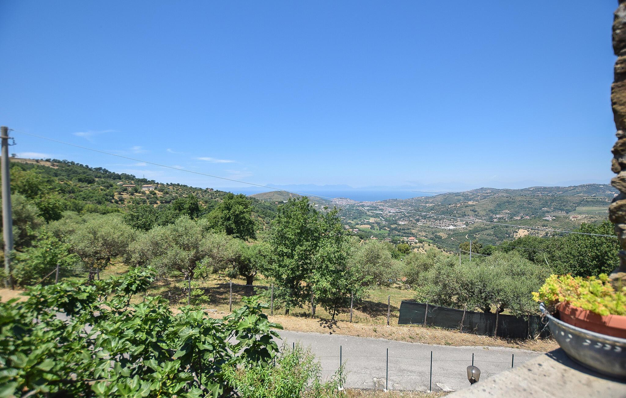 Om aftenen kan I slå jer ned på lejlighedens terrasse med et glas vin og nyde solnedgangen over de bølgende bakker i Laureana Cilento.
