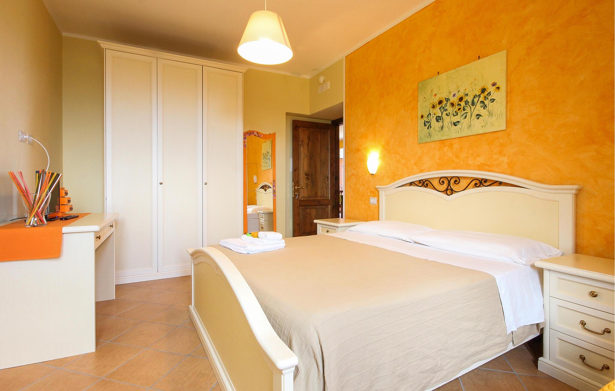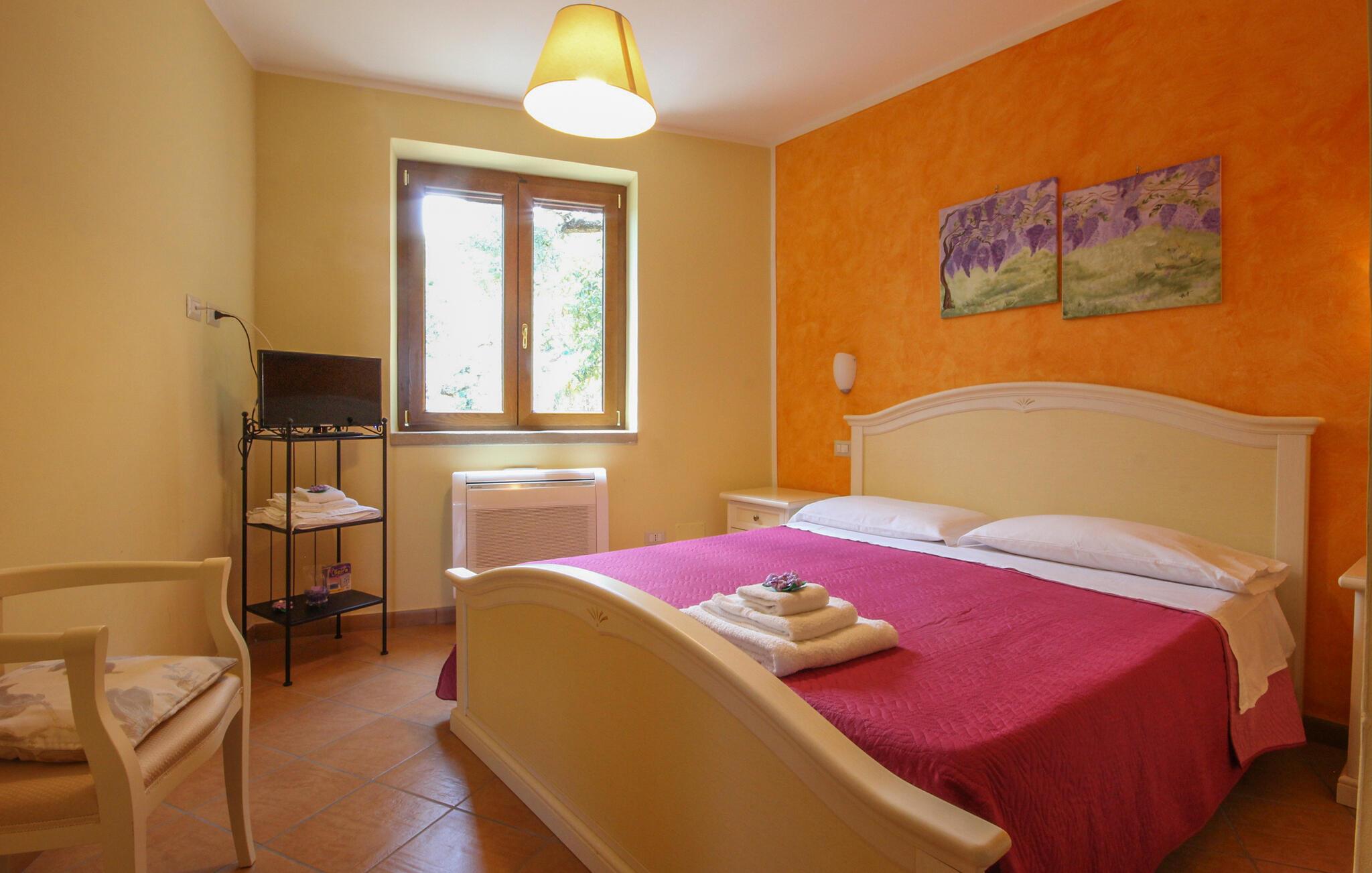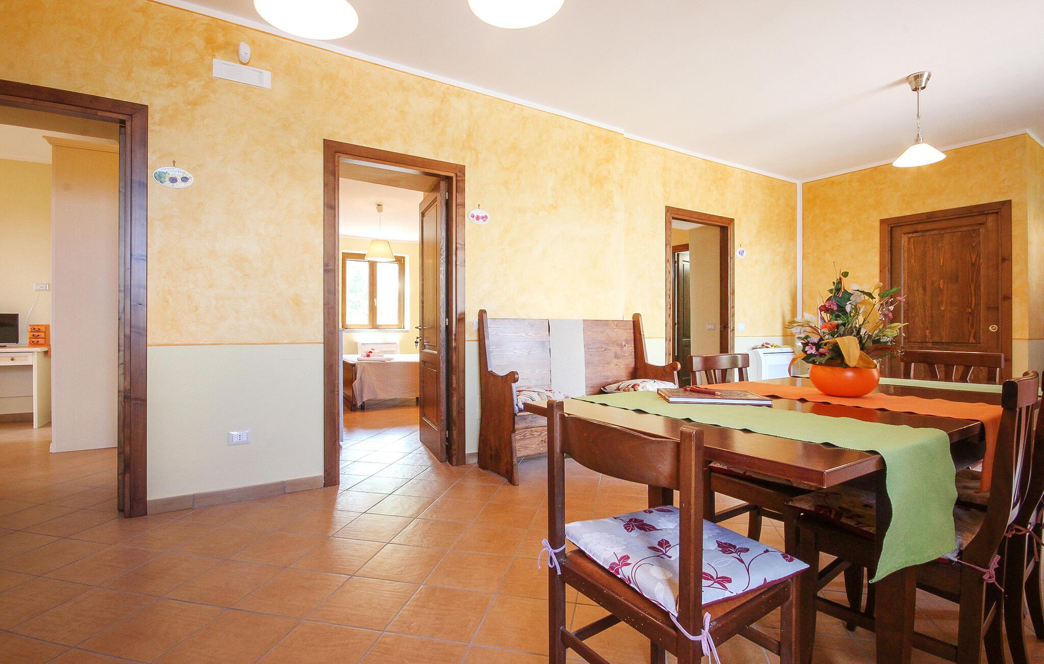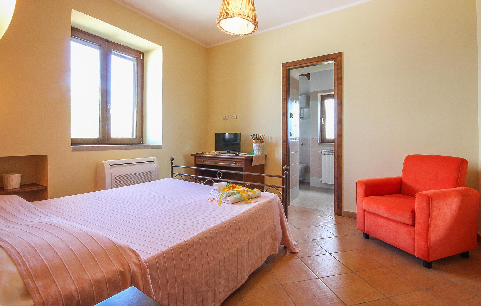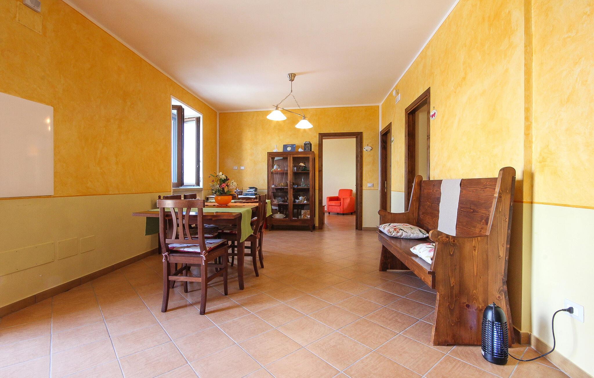 Indenfor finder I et praktisk udstyret køkken, der giver jer mulighed for at tilberede lækre italienske retter. Den smukke spiseplads skaber en indbydende og hyggelig atmosfære, som er optimal til fælles måltider. Begynd dagene med morgenmad på terrassen, hvor I kan skue ud over det maleriske landskab og se havet i horisonten. Udendørsområdet lægger op til at slappe af i det grønne med komfortable siddepladser og liggestole.