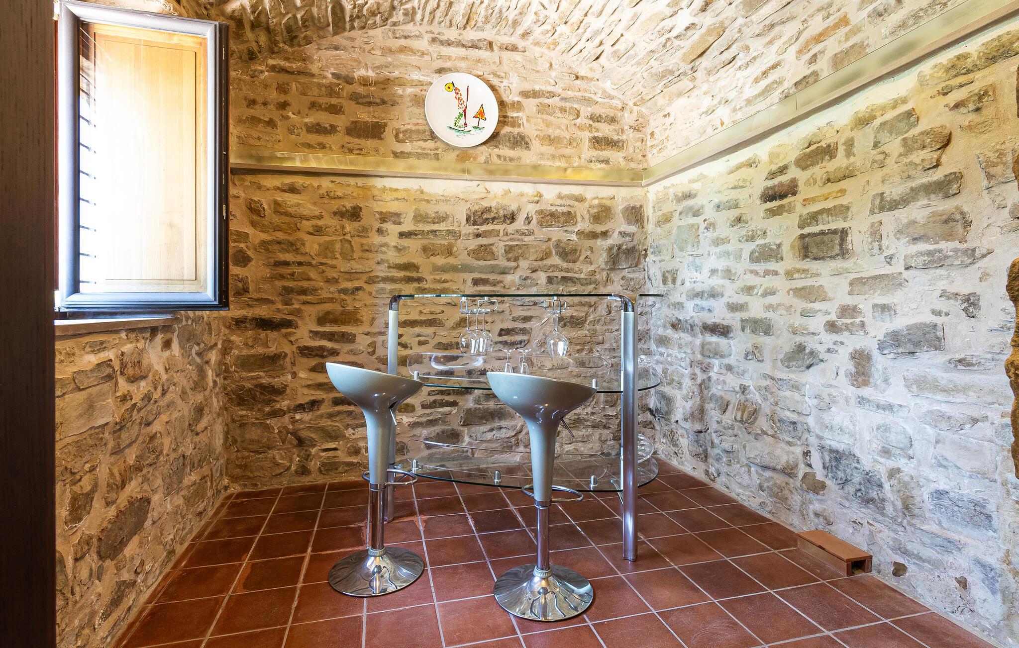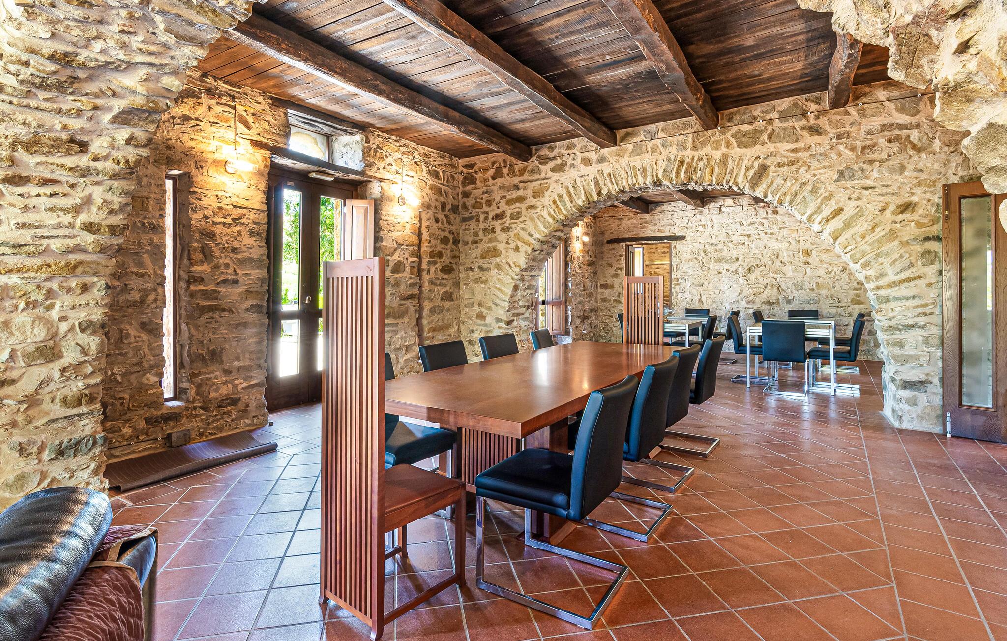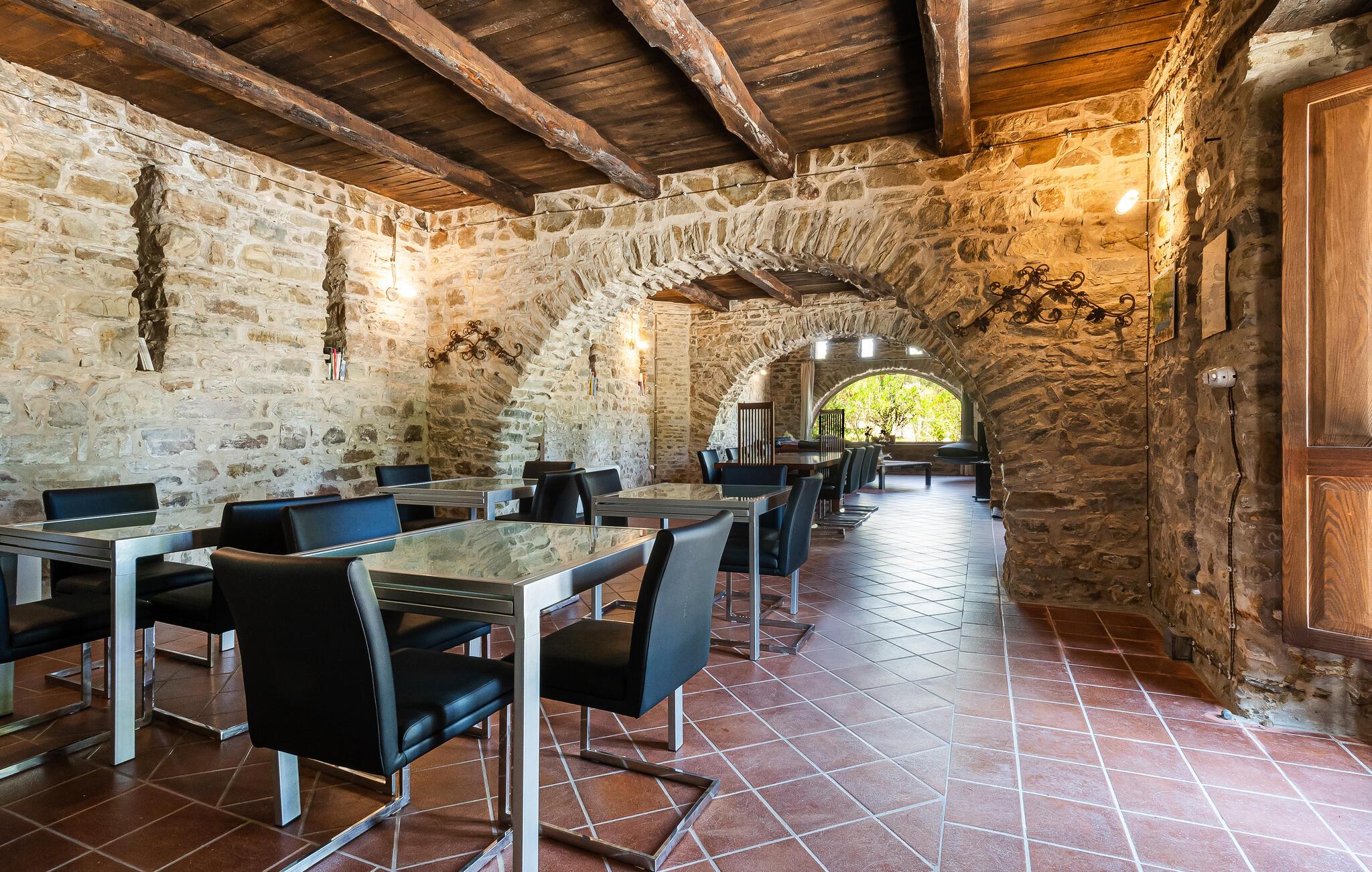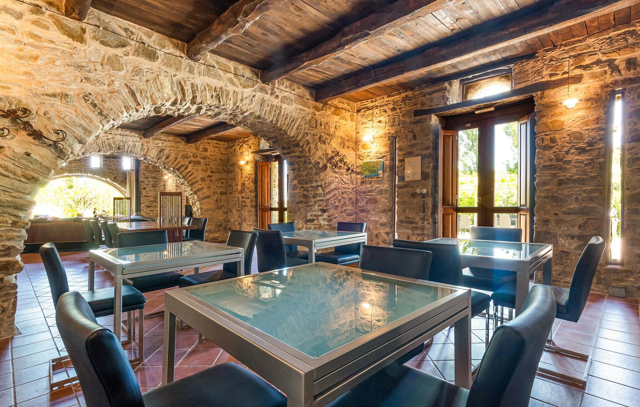 Lad jer inspirere af den rustik-elegante stemning i dette omhyggeligt restaurerede feriehus fra det 17. århundrede, hvor I ikke vil gå glip af moderne komfort mellem de gamle hvælvinger og rundbuer. Forkæl amatørkokken med glæden ved at slippe dampen af ??i det professionelle køkken og servere jer originale kreationer i den charmerende spiseplads. Efter en begivenhedsrig dag kan I samles i den hyggelige lounge med pejs og have interessante samtaler over et glas vin.