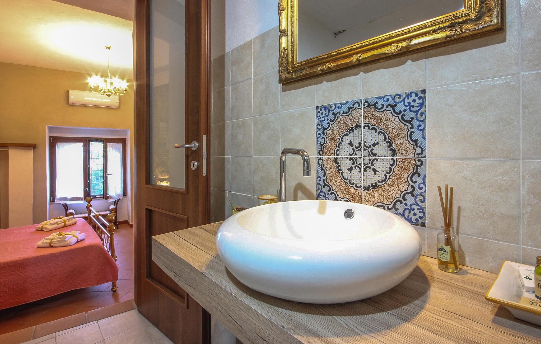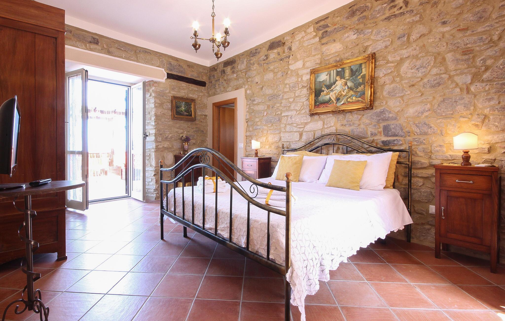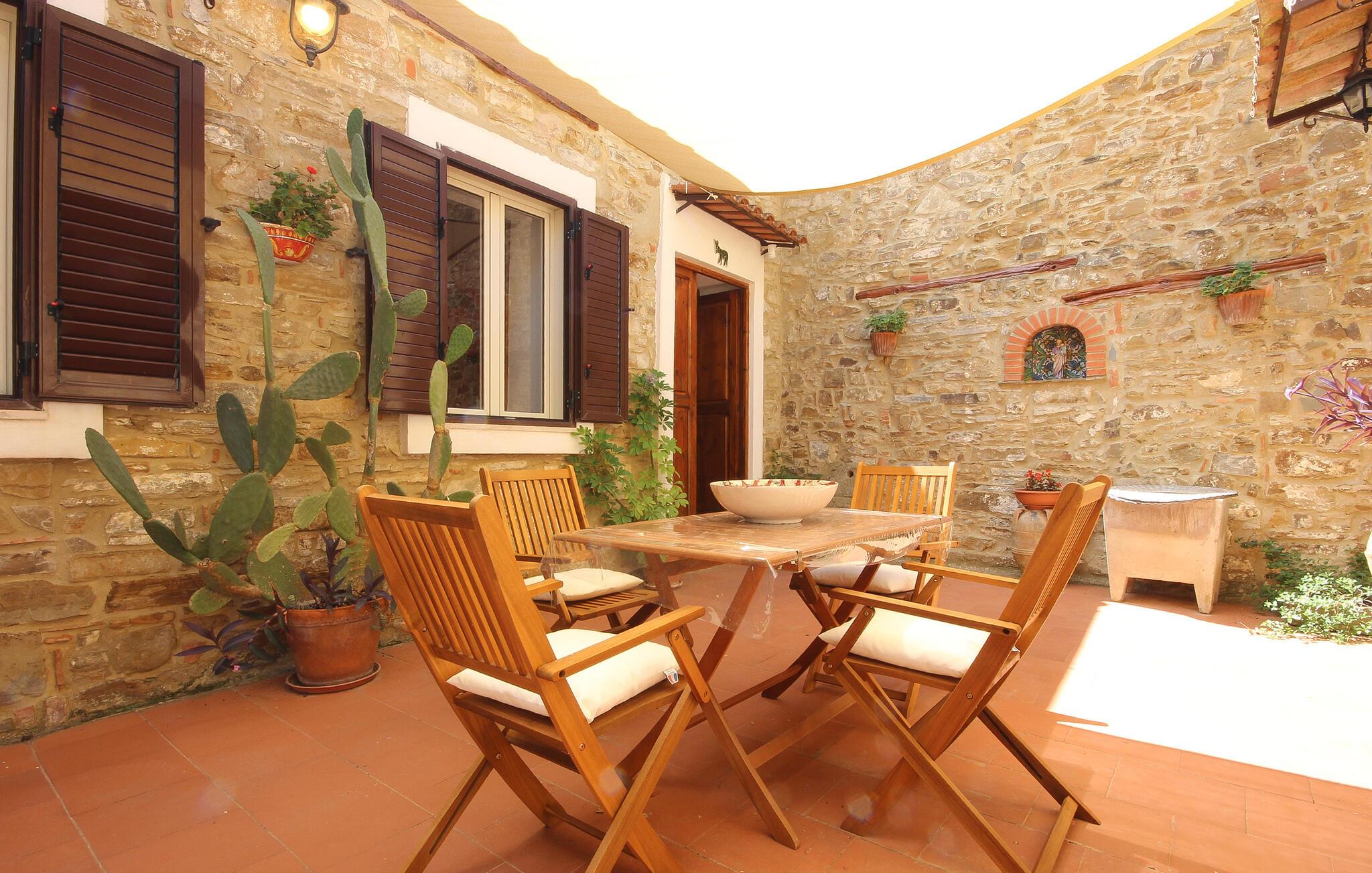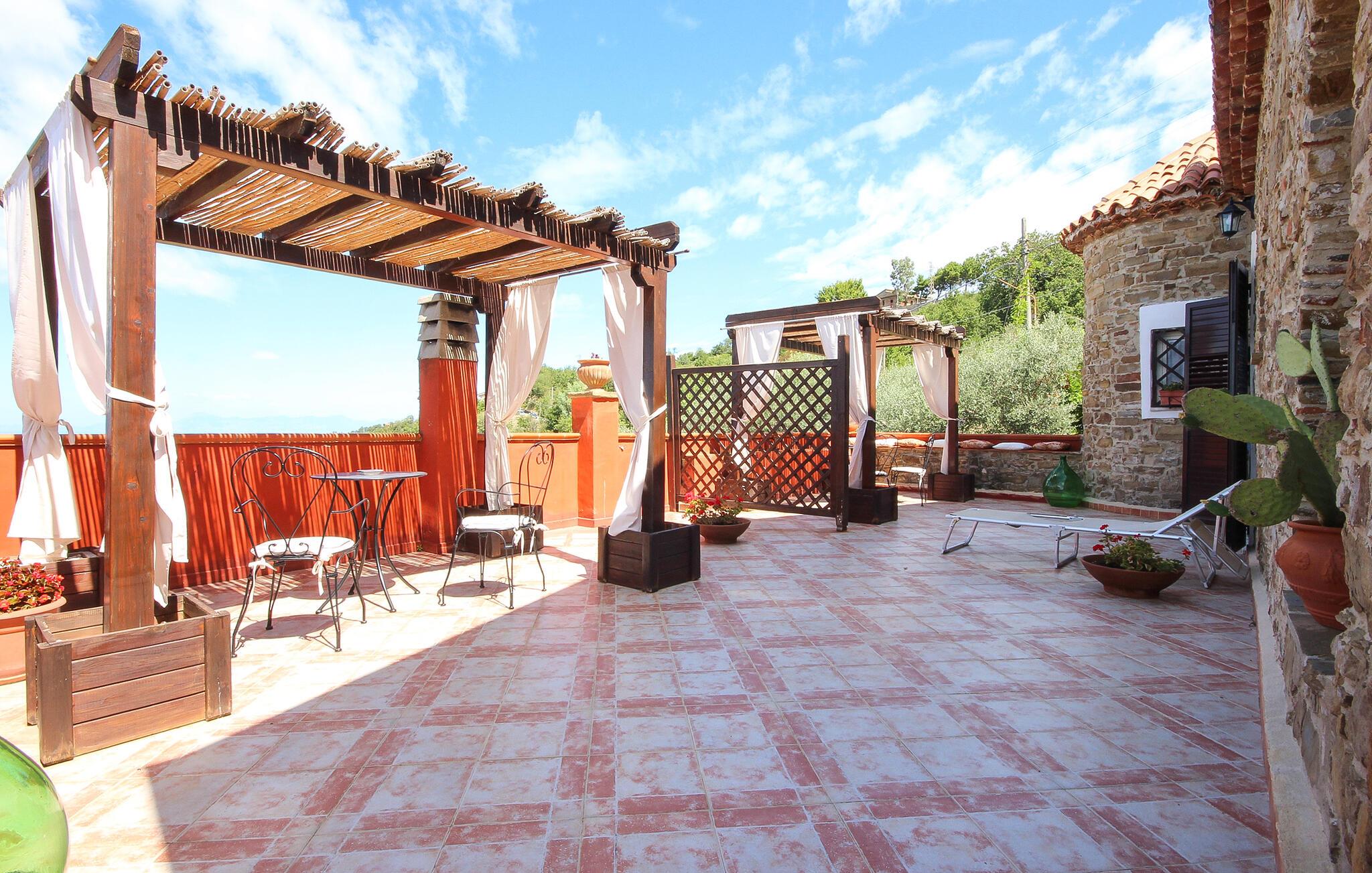 Der er maleriske omgivelser ved dette hus, som har en vellykket blanding af rustik charme og moderne komfort – her er et sted, hvor I straks vil føle jer hjemme. Et sofistikeret trælook, muntre farver og gennemtænkte detaljer skaber en atmosfære, der lægger op til at trække vejret dybt og genoplade batterierne. Læn jer tilbage og slap af, mens I lytter til god musik. Eller tryll lækre måltider frem i det moderne køkken, som smager særligt godt med et glas regional vin.