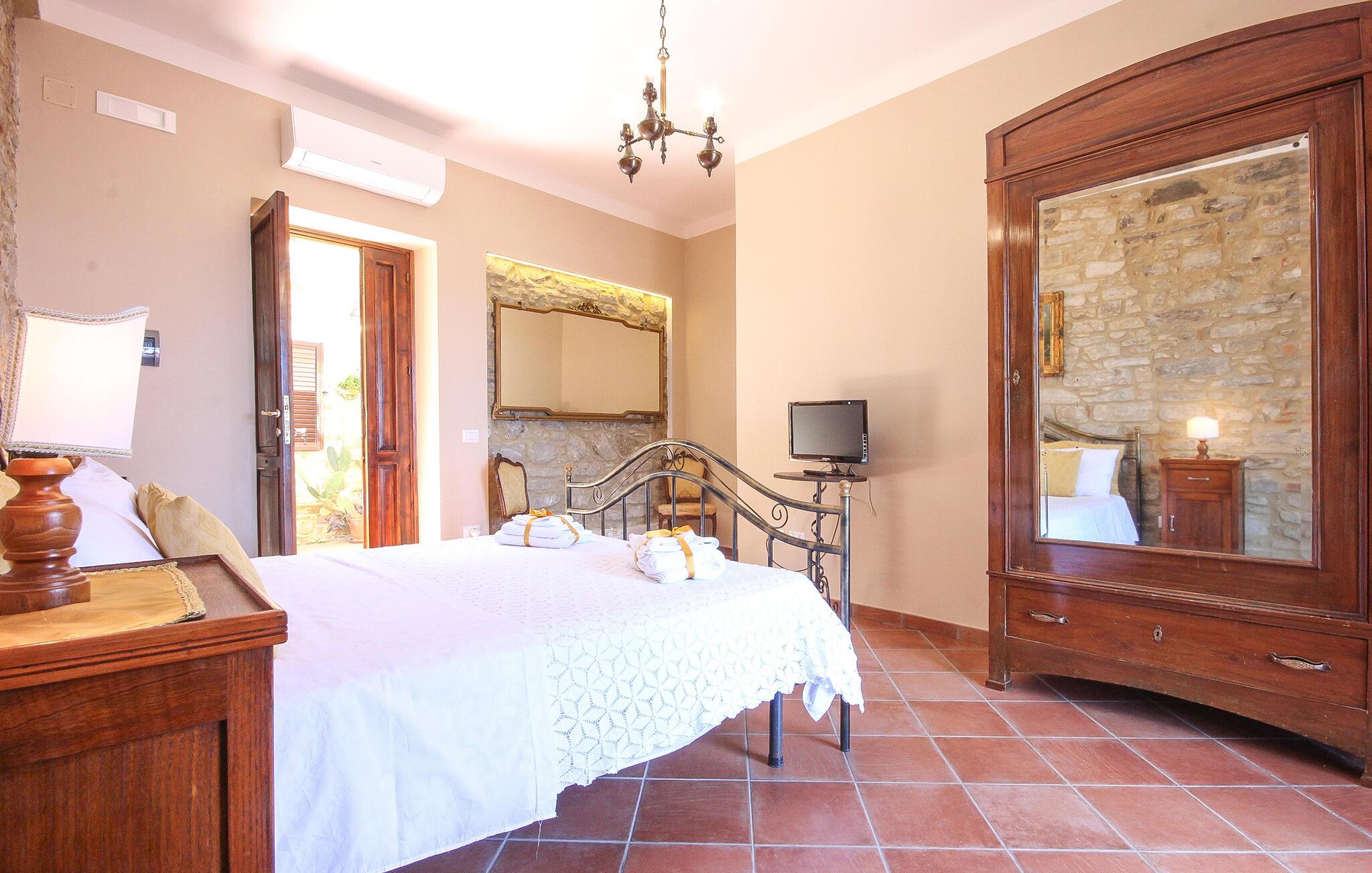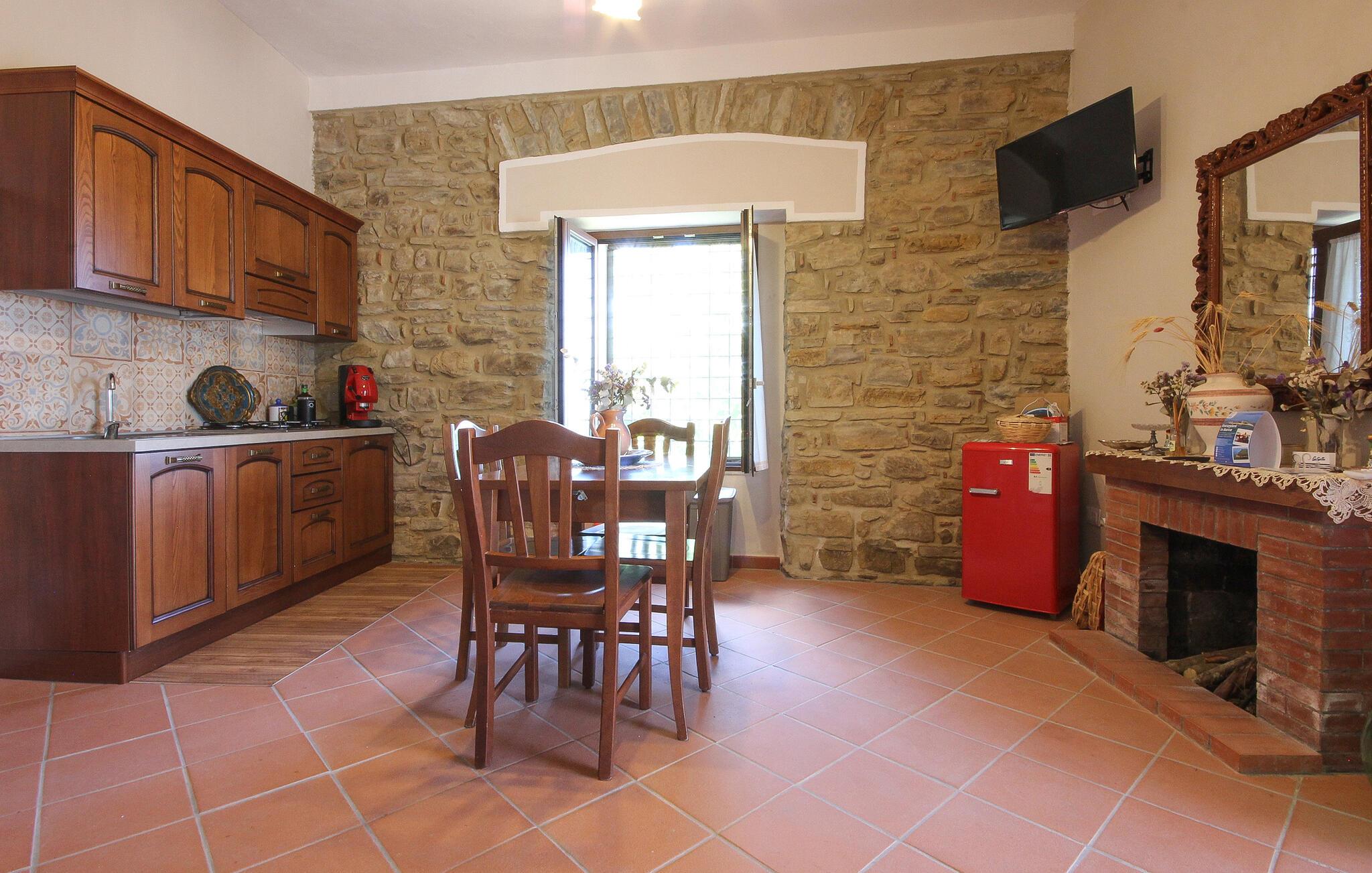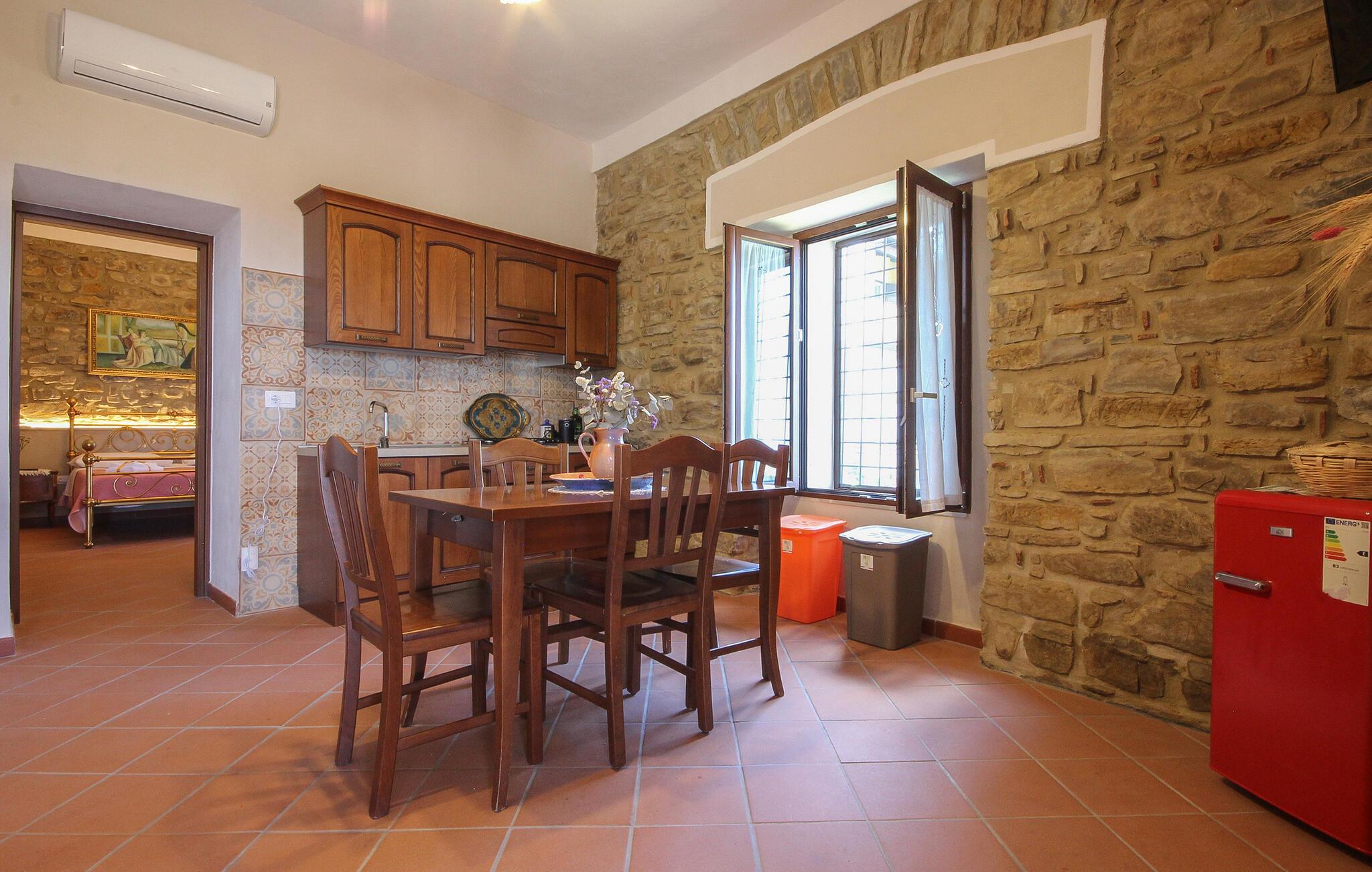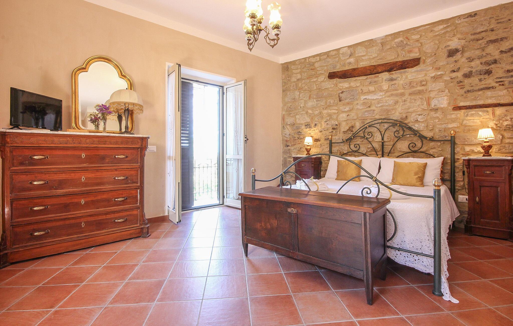 Der er maleriske omgivelser ved dette hus, som har en vellykket blanding af rustik charme og moderne komfort – her er et sted, hvor I straks vil føle jer hjemme. Et sofistikeret trælook, muntre farver og gennemtænkte detaljer skaber en atmosfære, der lægger op til at trække vejret dybt og genoplade batterierne. Læn jer tilbage og slap af, mens I lytter til god musik. Eller tryll lækre måltider frem i det moderne køkken, som smager særligt godt med et glas regional vin.