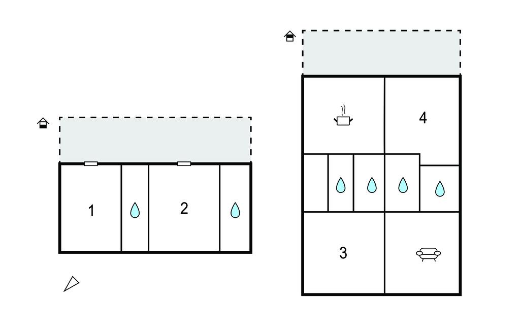 Badeværelse 4m2 (nr. 1) - WC. Varmt og koldt vand. Bruser
