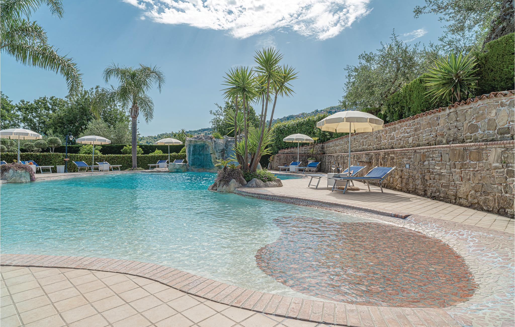 I Cilentos bakker, i Laureana Cilento, i et ferieanlæg med panoramaudsigt over havet ligger denne lyse og indbydende ferielejlighed. Den rummer et stort køkken med spisebord i suteplan, et badeværelse og en mellemetage med to soveværelser. Denne etage åbner sig med stuen, og har udsigt over havet og bakkerne. Udedørs er en 15 m² stor terrasse med udsigt over den lille have til fælles brug. Her er også en stor velplejet park og en fælles pool. Nabo til IKC561. I samme kompleks: IKC383-385, IKC521-522. Det tager kun 15 minutter i bil at køre til Agropoli (ca. 10 km) og de skønne strande ved Trentovas lille romantiske bugt. Mindre end en halv time fra de Castellabates skønne strande. 20 km til Paestum. Ideelt til en afslappet ferie, omgivet af den grønne natur og nær havet og Cilentos vigtigste seværdigheder.