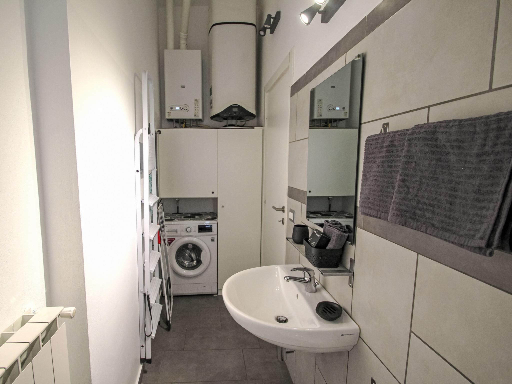 "Casina al Lago", 2-room apartment 40 m2 on 2nd floor. Renovated in 2024, practical and modern furnishings: 1 room with 1 sofabed (length 180 cm), 1 double bed, TV and fan. Kitchen in the entrance (mini-oven, 2 ceramic glass hob hotplates, toaster, kettle, electric coffee machine) with dining table. Shower/bidet/WC. Gas heating. Heating available only from 01.10. to 30.04. Small balcony. Balcony furniture. Facilities: washing machine, safe, iron, hair dryer. Please note: non-smoking house. Maximum 1 pet/ dog allowed. Fire extinguisher, no lift. IT012086C2EJ99232B
