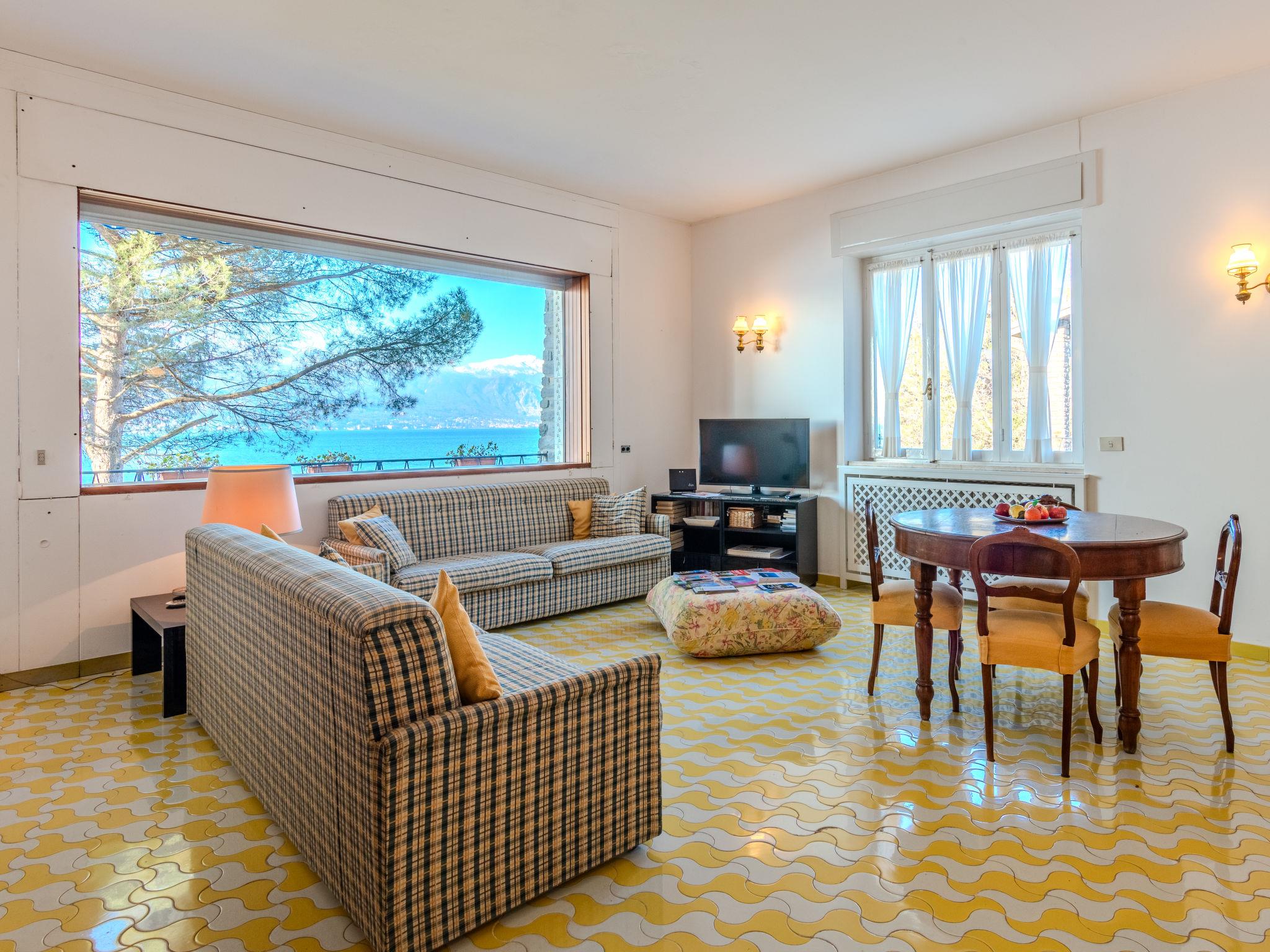 "Fabrizio", 5-room house 120 m2 on 2 levels. Practical furnishings: entrance hall. Large living/dining room with panoramic window with TV and fan. Exit to the terrace. 1 double bedroom with fan. 1 room with 2 beds and shower/bidet/WC. 1 small room with 1 bed. Kitchen (4 hot plates, oven, dishwasher, kettle, freezer, electric coffee machine). Bath/bidet/WC. Gas heating. Heating available only from 15.10. to 15.04. On the lower ground floor: (exterior staircase), 1 room with 2 beds and shower/WC. Exit to the patio. Terrace 20 m2, roofed. Terrace furniture. Very beautiful view of the lake. Facilities: hair dryer. Internet (WiFi, free). Parking (2 cars). Maximum 1 pet/ dog allowed. No internal connecting door between the floors. IT012087C2O2SSZI4H
