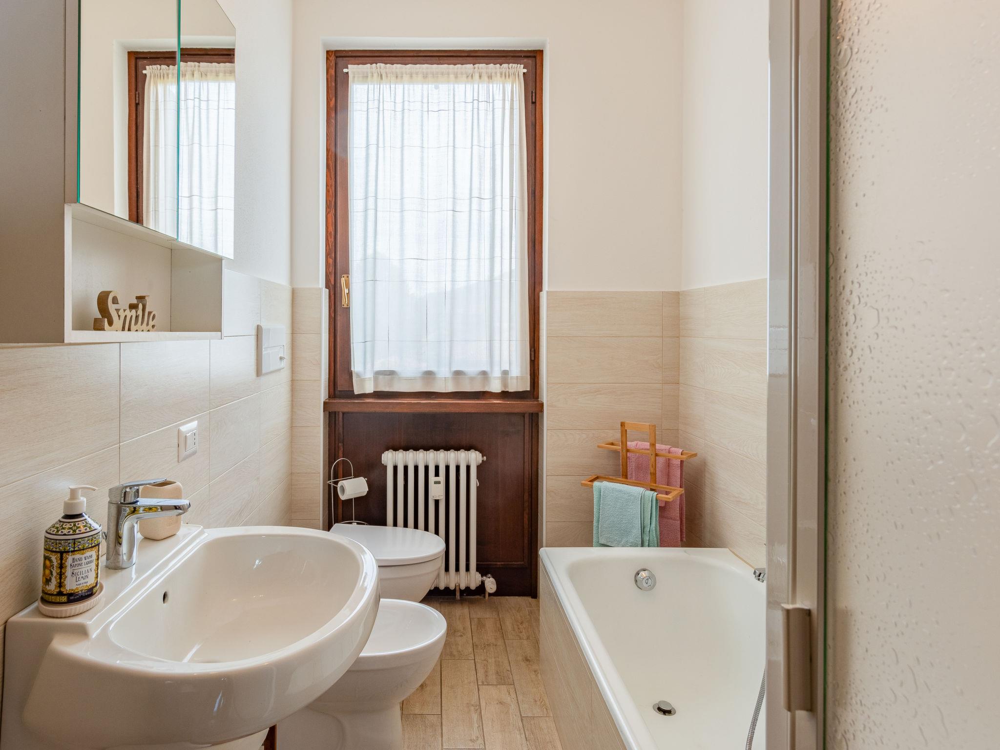 "Gaggetto", 4-room apartment 120 m2 on 3rd floor. Bright, practical furnishings: living/dining room with dining table and TV. Exit to the balcony. 1 double bedroom. 1 room with 1 bed and 1 pull-out bed. 1 room with 1 bed. Kitchen (oven, dishwasher, Gas stove, 5 gas rings, toaster, microwave, freezer, electric coffee machine) with dining table. Exit to the balcony. Sep. WC, bath/shower/WC. Gas heating (extra). Heating available only from 15.10. to 15.04. Balcony 15 m2. Balcony furniture, deck chairs (2). View of the lake. Facilities: washing machine, iron, children's high chair, baby cot for up to 2 year olds. Internet (WiFi, free). Parking (2 cars). Please note: non-smokers only. Maximum 1 pet/ dog allowed. IT012087C2E7WPYKSM
