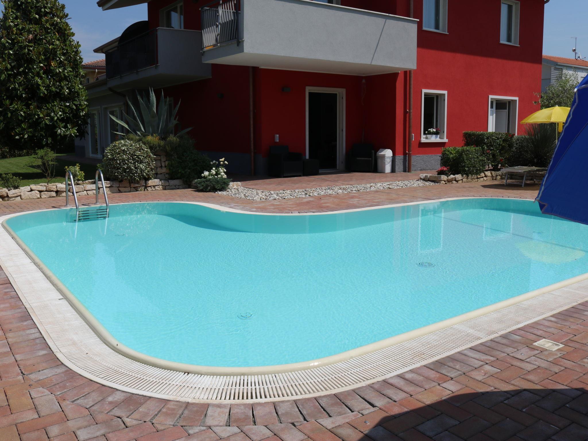 Apartment house "Corte Chiara", 2 storeys. 4 apartments in the property. In the district of Paiari 1 km from the centre of Lazise, in the residential district, 1 km from the lake, 1 km from the beach. For shared use: swimming pool (40 m2, depth 150 cm, seasonal availability: 01.Jun. - 30.Sep.). Unconventional pool shape. Outdoor shower, garden furniture. Shop 1 km, bus stop 150 m, pebble beach 1 km. Golf course (18 hole) 20 km. Nearby attractions: Peschiera del Garda 11 km, Verona 26 km.