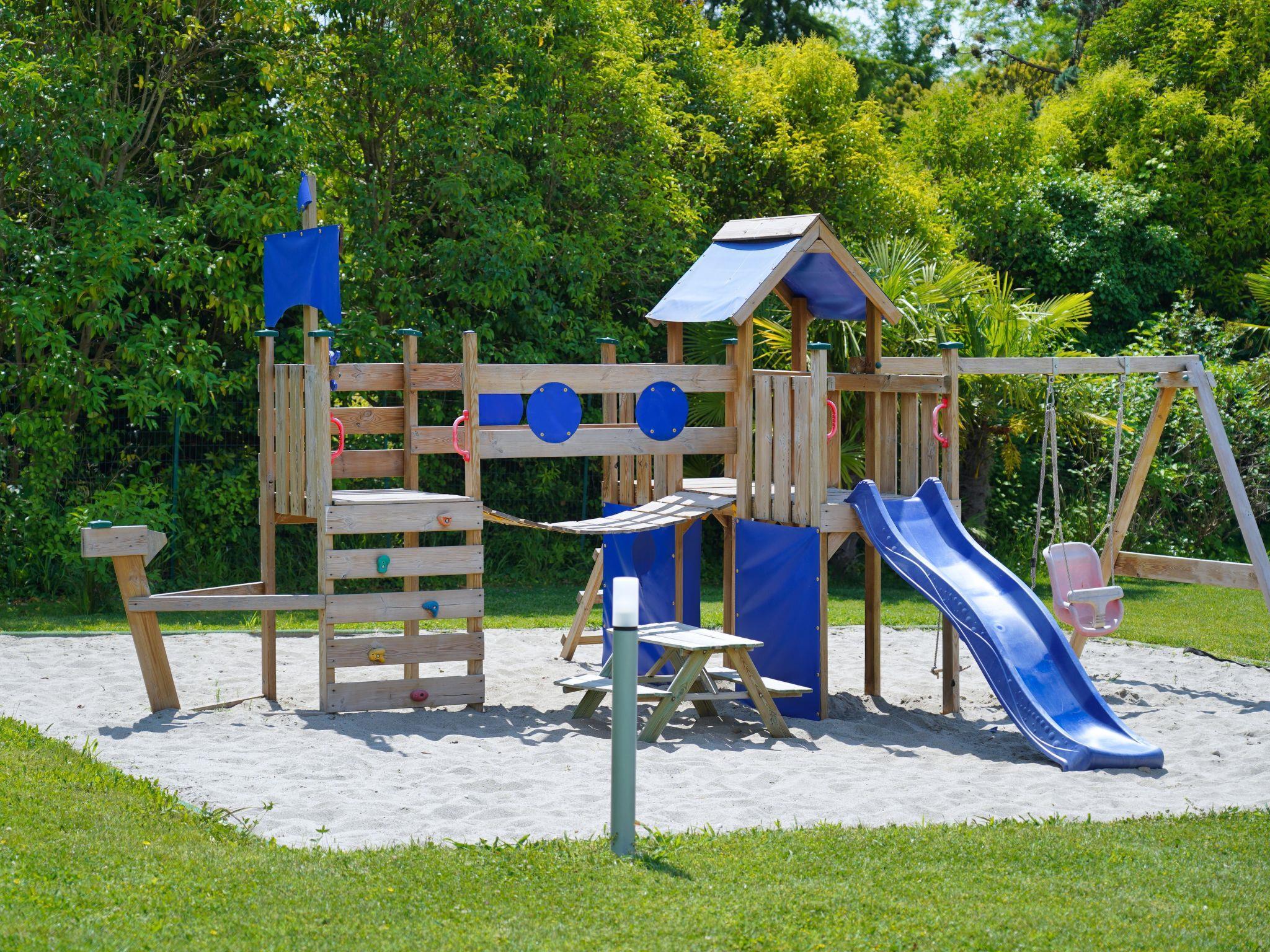 Very beautiful 3-family house "Villa Mattarana", detached. 3 apartments in the property. In the district of Pacengo 1.8 km from the centre of Pacengo, 5 km from the centre of Lazise, 100 m from the lake, 100 m from the beach, direct access to the beach. For shared use: property 1'000 m2 (fenced), beautiful, well-kept garden, swimming pool (11 x 5 m, seasonal availability: 01.Jun. - 30.Sep.). Pergola (20 m2), garden furniture, barbecue, children's playground, bathing jetty. Private: garden 60 m2. In the house: WiFi. Parking at the house. Supermarket 500 m, bar, railway station "Peschiera" 5 km. Nearby attractions: Gardaland 2 km. Guarded residence. Video surveillance cameras in common outdoor areas.