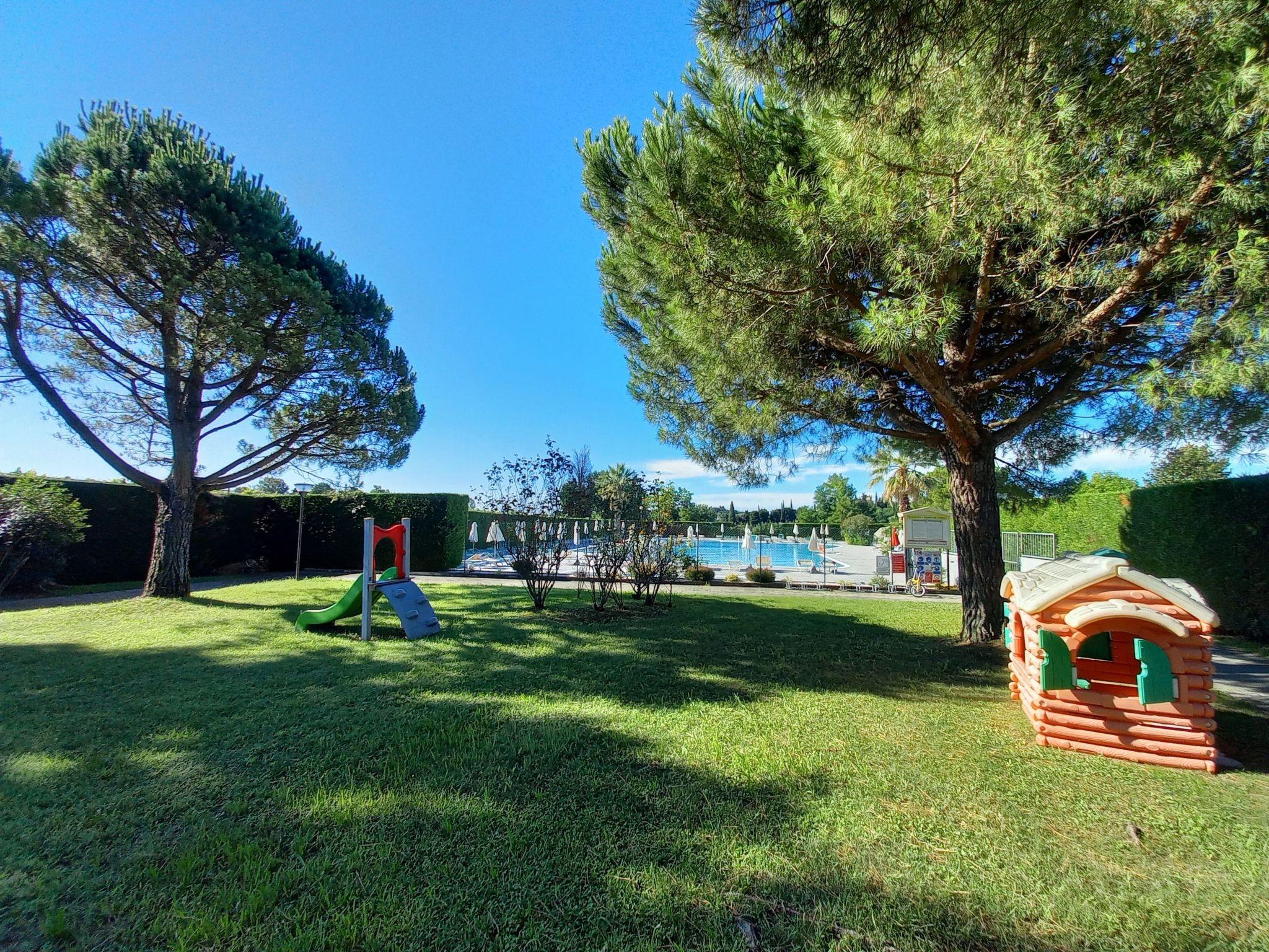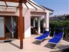 Outside, a private and fully fenced garden of 580 m² awaits you, lovingly landscaped with palm trees, olive trees, magnolias and other plants. Two wide, covered terraces with a dining and barbecue area as well as a solarium area invite you to spend relaxing hours outdoors. In this garden paradise, you can relax on the sun loungers provided under the parasol or enjoy a refreshing outdoor shower.