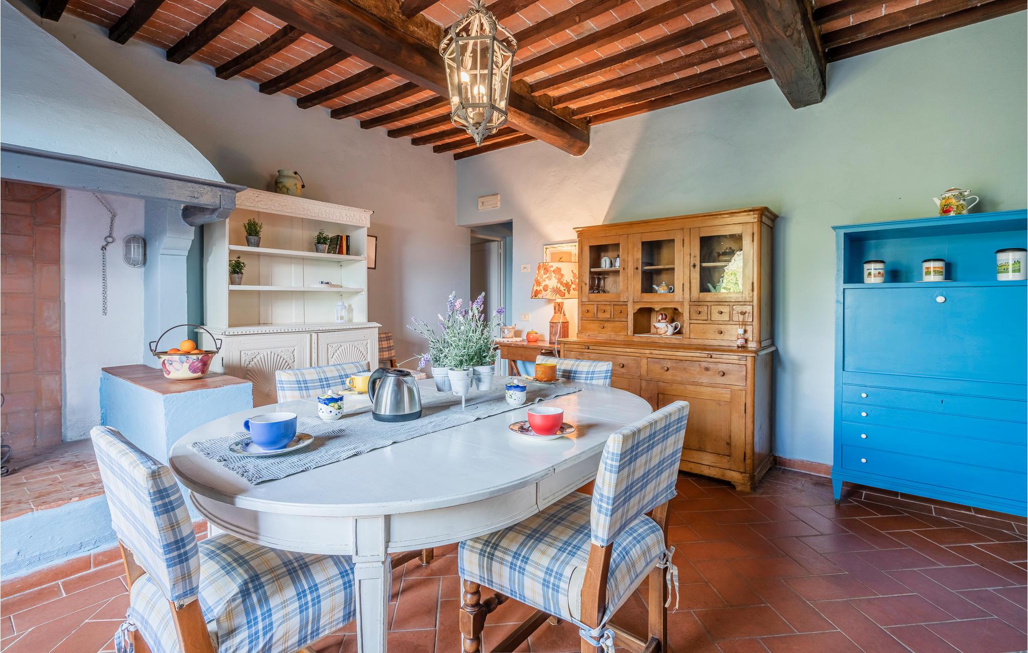 Med et soveværelse, et badeværelse, en stue og et køkken-alrum byder denne dejlige ferielejlighed velkommen til op til seks voksne og et barn. Den er pænt møbleret og imponerer især med sit flotte udendørsområde. I- og omkring fællespoolen kan I nyde den toscanske sol hele dagen lang. På den dejlige terrasse kan I spise morgenmad og senere afslutte dagen med et glas lokal vin, mens I nyder det smukke panorama.