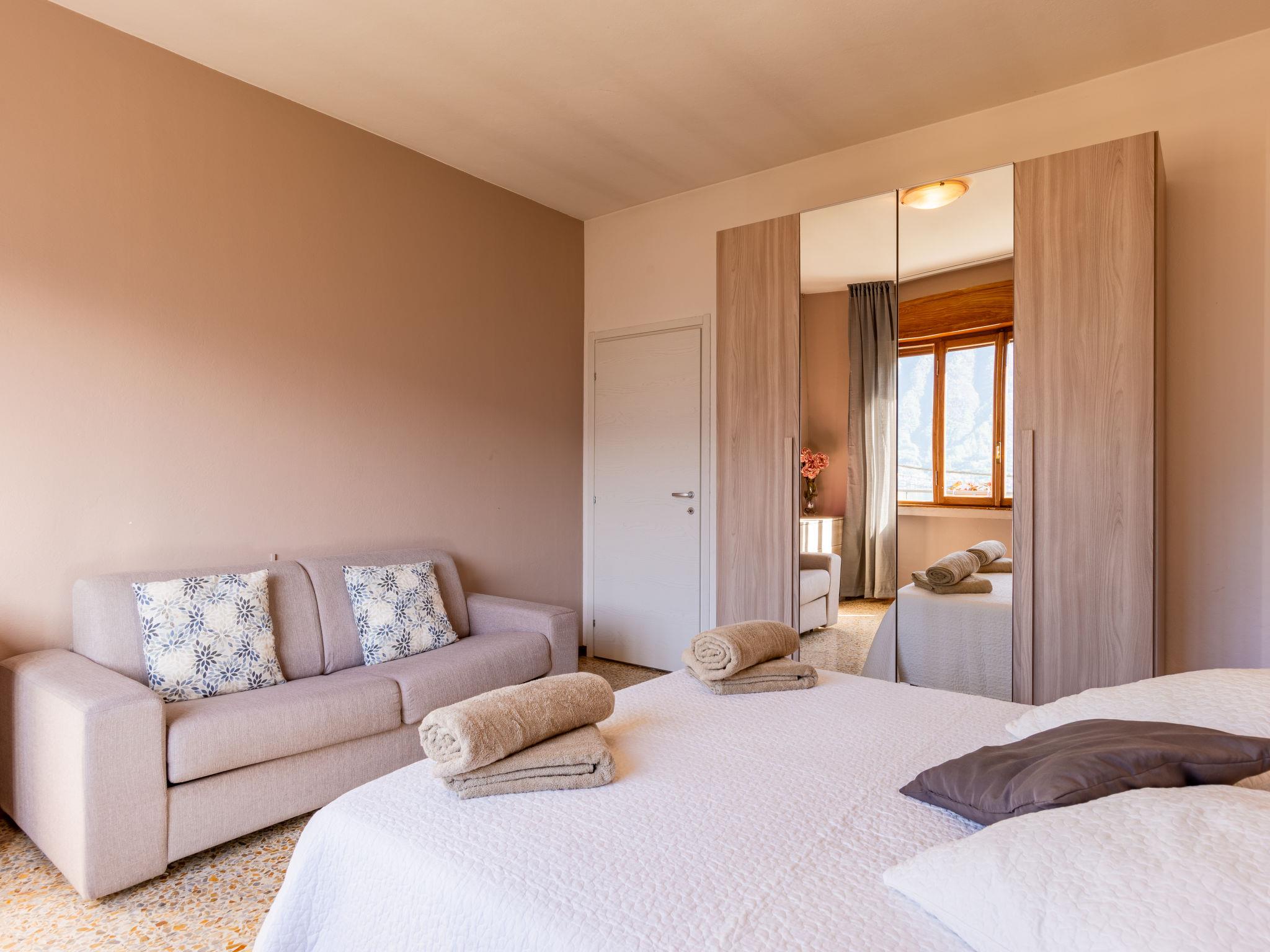 5-room apartment 100 m2 on 1st floor. Bright, partly renovated in 2023, beautiful furnishings: living room with dining table and TV. Exit to the garden. Walk-through room with 1 double bed. 1 room with 1 double bed. 1 room with 3 beds. Dining room with open-hearth fireplace (only for decoration), dining table. Exit to the balcony. Small kitchen (dishwasher, 4 induction hot plates, kettle, microwave, freezer, electric coffee machine). Shower/WC. Heating. Heating not available in all rooms. Balcony, terrace roofed, porch. Terrace furniture, balcony furniture, barbecue. View of the lake. Facilities: children's high chair, baby cot for up to 2 year olds. Internet (WiFi, free). Parking (1 car), garage (2 cars). Please note: non-smokers only. IT013252C2AFZ5ZG53