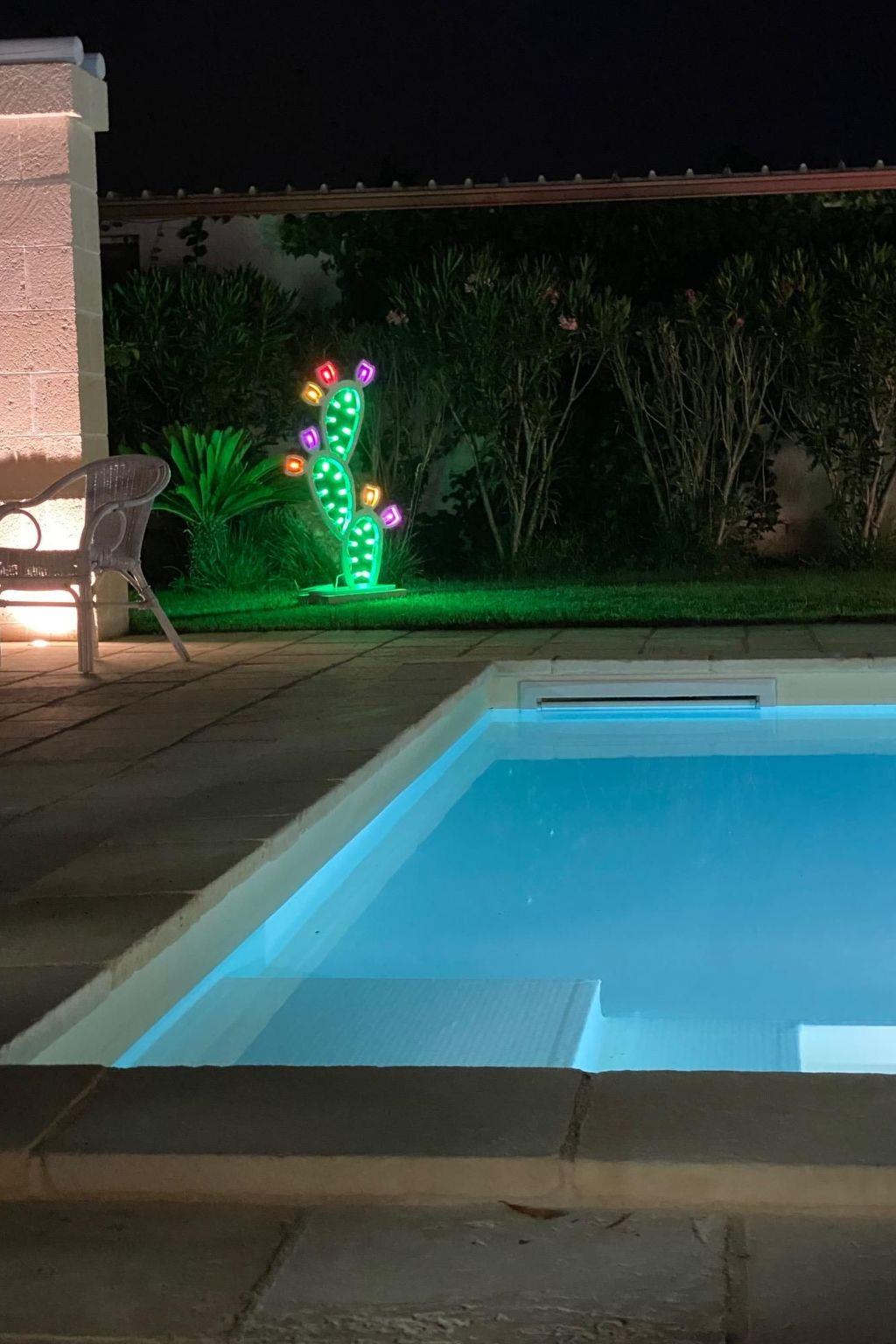 Against the backdrop of the tranquil Salento countryside, we offer our small villa in Contrada Corda di Lana, 4 km from the centre of Torre Lapillo (Porto Cesareo), a charming seaside resort overlooking the crystal-clear waters of the Ionian Sea and the enchanting white beaches. The privileged position is suitable for those who want to reconcile in a single holiday the mundane life of cities such as Lecce, Gallipoli and Otranto, with the healthy life of the countryside and the sea, allowing guests to enjoy maximum discretion and privacy.