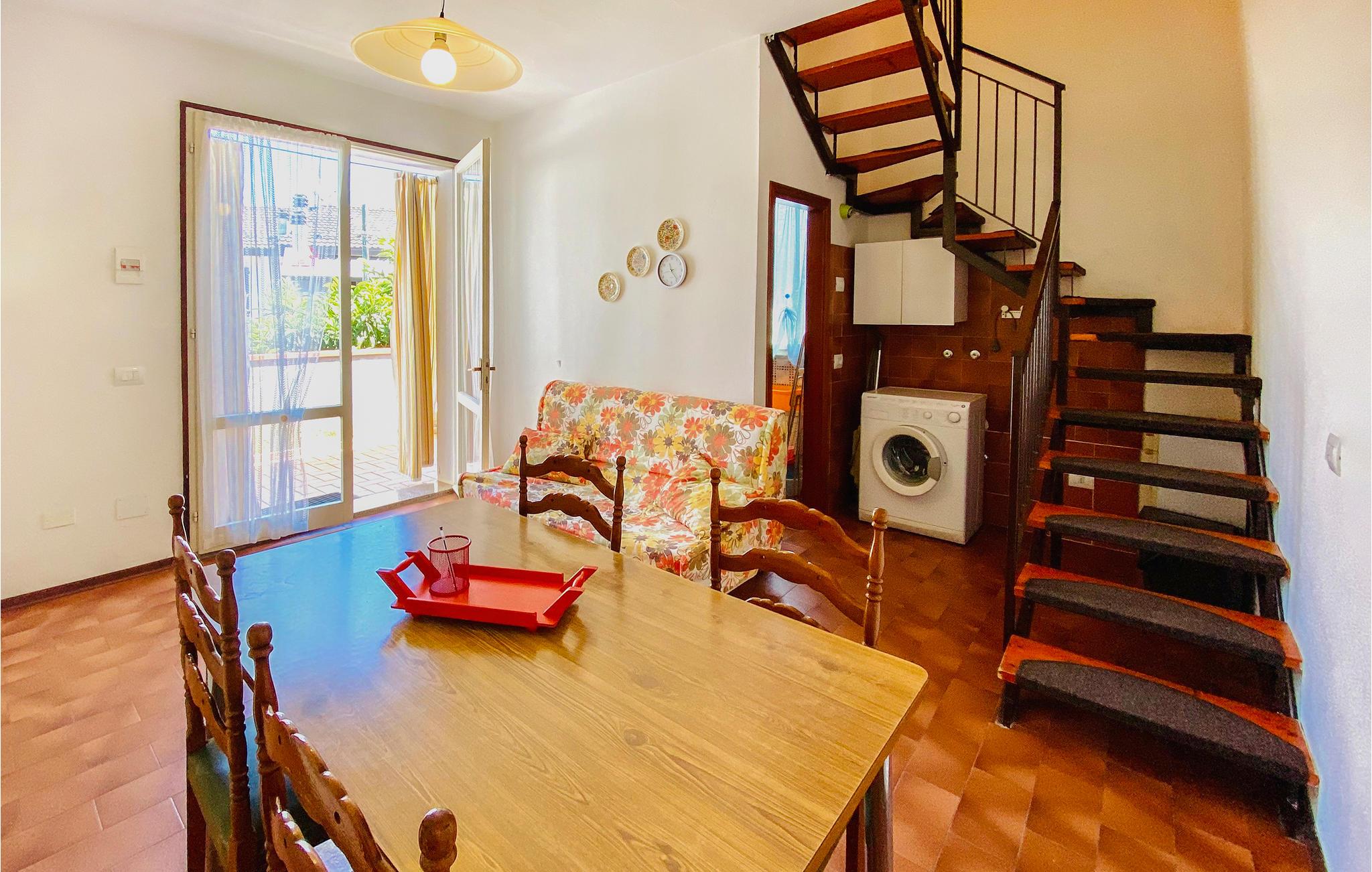 Tilbring en afslappende ferie i denne funktionelle og kompakte ferielejlighed på to etager i Emilia-Romagna. Takket være dens gode beliggenhed er den velegnet til opdagelsesture til Ferrara, Ravenna eller Venedig og tilbyder desuden en behagelig nærhed til de smukke strande ved Adriaterhavskysten. Indenfor venter en enkel, men funktionel indretning. Opholdsområdet er udstyret med et spisebord, en sofa og et åbent tekøkken.