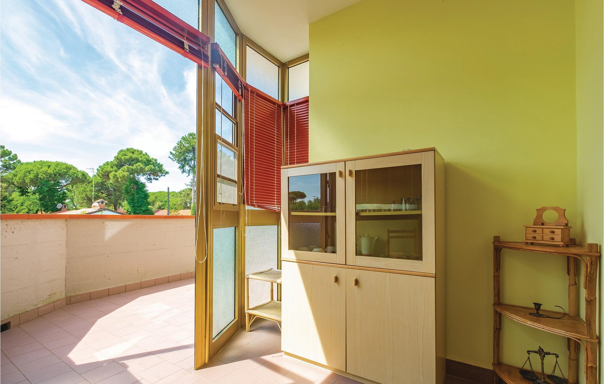Ferielejlighed med terrasse i et ferieanlæg, ca. 600 m fra stranden og havet. Dette område er ideelt til familieferie, da der ikke kun er strand og sol, men også mange aktivitetsmuligheder. Mulige udflugtsmål er: Ravenna, Ferrara og Venedig. Se også IEK138-IEK139 og IEK170-IEK180. For jer der vil slappe af og opleve de mange former for underholdning er Rivieraen i Emilia-Romagnaregionen, med kendte byer som Rimini, Riccione, Cattolica, Milano Marittima og videre mod nord de 7 strande omkring Ferrara. Området er også rigt på bjerge til de der holder af at vandre: Appeninerne, Monte Fumaiolo samt parken ved Po-deltaet. Desuden er her gode muligheder for wellness i et af områdets mange kurbade. Naturligvis skal I smage på de Italienske gastronomiske lækkerier, fx fremragende brød, den berømte ål fra Comacchio, Adriaterhavskystens mange fiskespecialiteter og fremragende sæsonfrugter som abrikoser, jordbær og honningmelon. Regionen Comacchiodalene med sine smalle bredder og søer med brakvand, hører til det største vådområde i Italien og er samtidig Podeltaets mest interessante område: Her kan I se utallige fuglearter, der yngler her. Po og de forskellige vandløb i deltaet danner en sand labyrint som I kan sejle gennem i motorbåde eller andre små fartøjer. Besøg også det årtusindgamle Pomposa-kloster, den historiske byu Ravenna (35 km) og Ferrara (60 km) og naturligvis den betagende laguneby Venedig (100 km), der hører til verdens skønneste byer. I en omkreds af 80-100 km er der et stort udvalg af forlystelsesparker og badelande. Emilia-Romagnas gastronomiske specialiteter vil vække begejstring hos store og små. Her kan I smage på tortellino, piadina, tagliatelle, parmaskinke, balsamico, parmigiano reggiano og den berømte Comacchioål. I kan også købe de lækre friske råvarer med hjem og tilberede selv – eller købe med hjem som gaver til venner og familie.