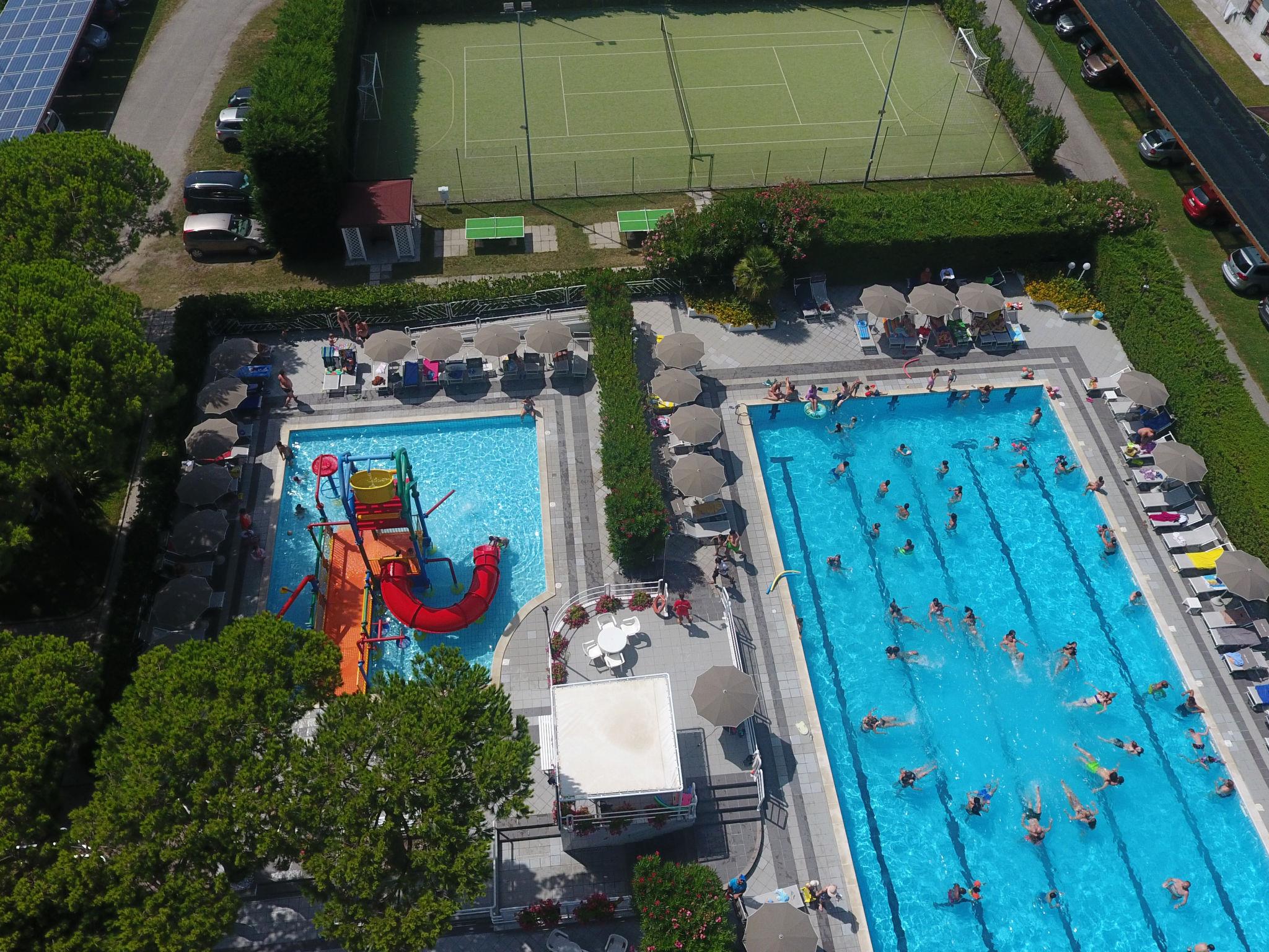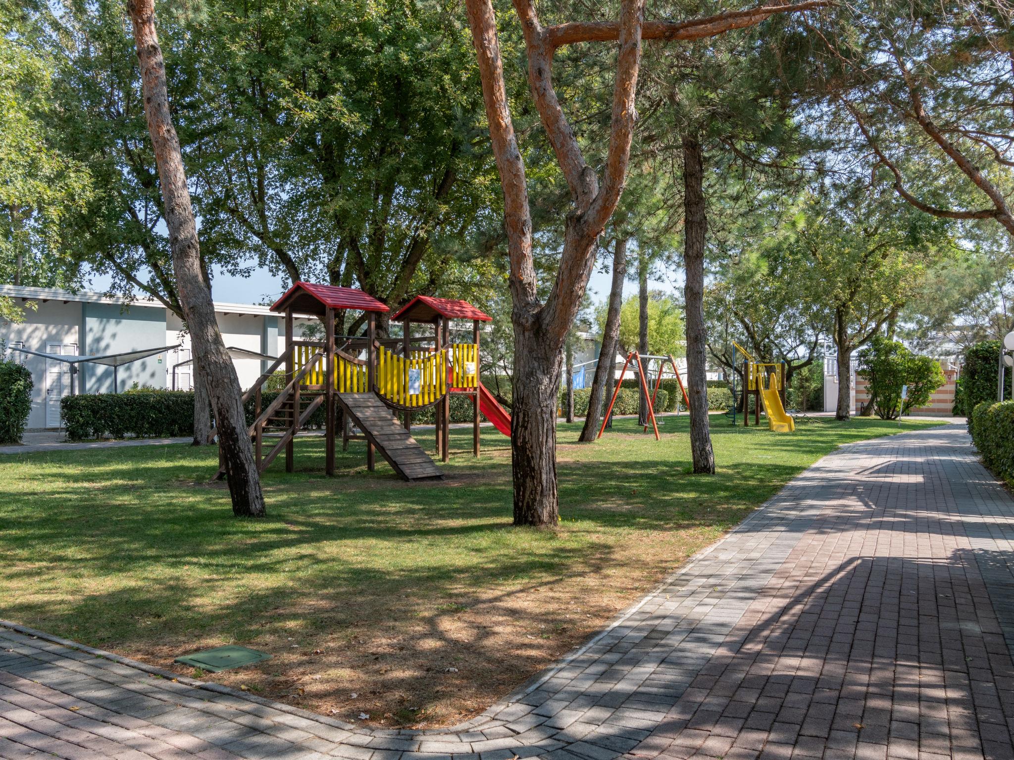 Large, comfortable holiday village "Park Gallanti". 134 houses in the resort. In the centre of Lido di Pomposa, 100 m from the sea, 100 m from the beach, direct access to the beach. For shared use: property 3 ha (fenced), garden, swimming pool fenced (25 x 12 m, depth 120 cm, seasonal availability: 16.May. - 27.Sep.). Shower/WC in the pool area, children's pool, hot tub, tennis, table tennis, beach volleyball, children's playground. In the complex: reception, restaurant, bar, lounge, internet access, WiFi, fitness room, shopping facilities, washing machine, tumble dryer (for shared use, extra). Available: bicycles, children's bicycles. Linen change weekly. Towel change weekly. Room cleaning daily on request (extra). Roofed, parking. Grocery 50 m, supermarket 450 m, restaurant 50 m, bus stop 1.5 km, railway station "Ravenna" 38 km. Nearby attractions: Comacchio 9 km, Ravenna 37 km, Ferrara 59 km, Chioggia 62 km. Hiking paths: Riserva Naturale Bosco della Mesola 21 km. Please note: car-free holiday complex. Entertainment. Suitable for families.