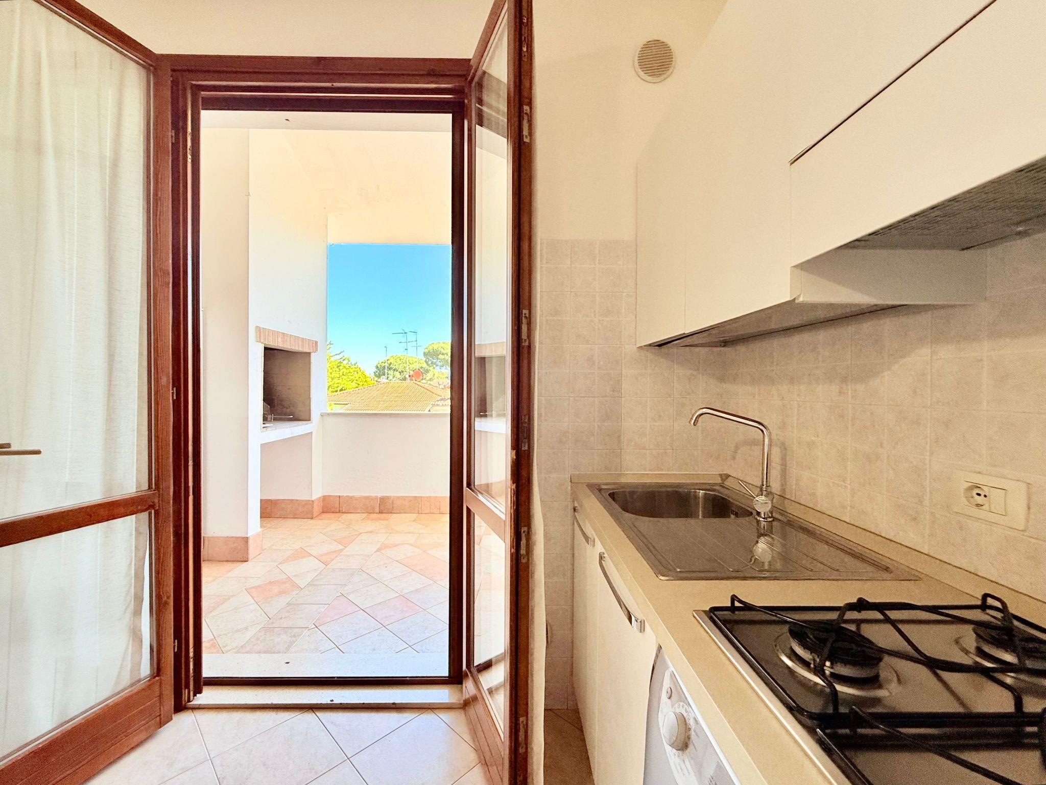 The flat is on the 1st floor and consists of a living room with kitchenette (cooker, fridge, freezer and washing machine) and a sofa bed for two persons, bedroom with double bed, bedroom with two single beds, bathroom with shower and a covered terrace with barbecue.
