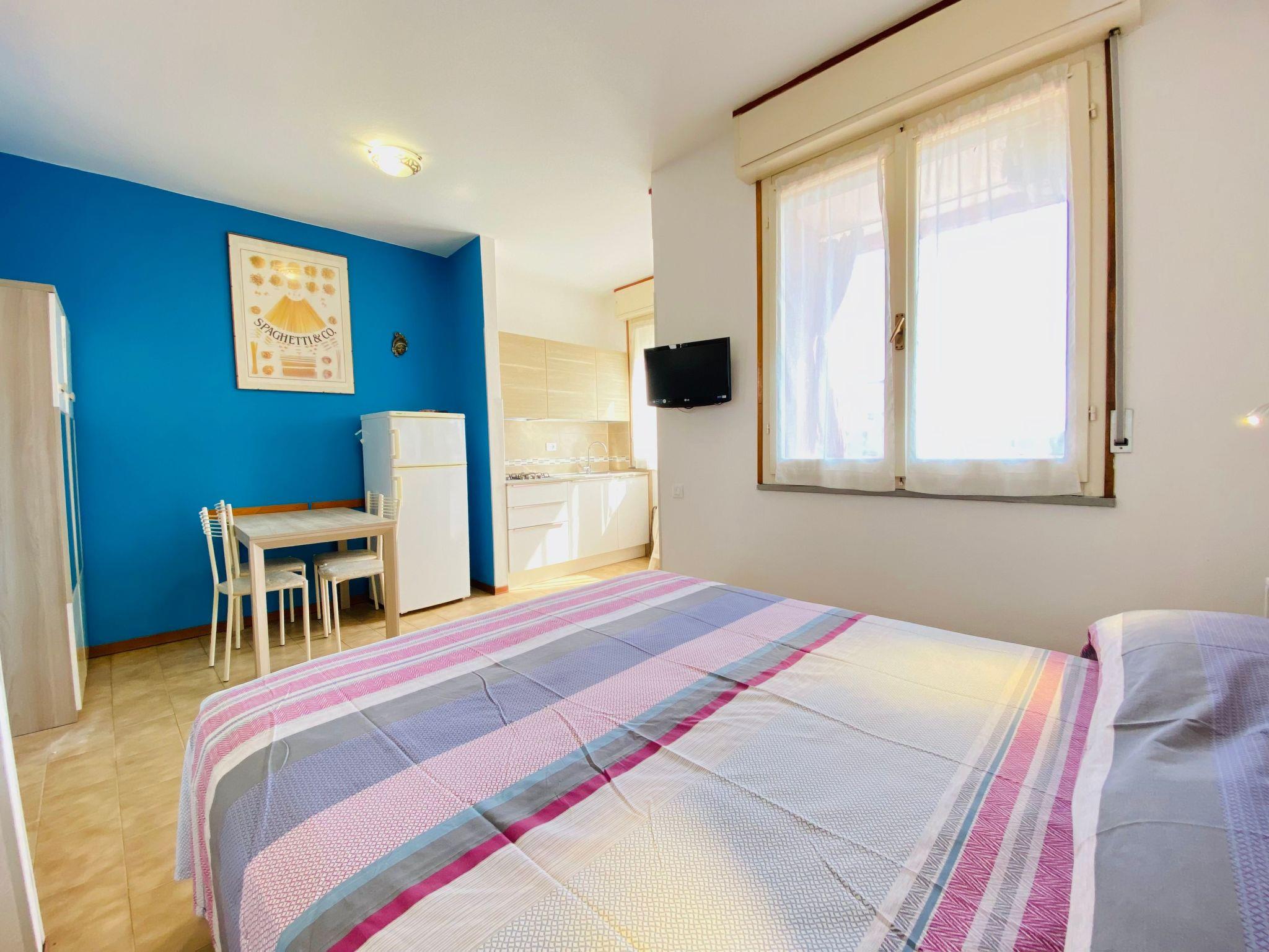 Inside, the studio has a practical and essential layout, with air conditioning available in all rooms to ensure maximum comfort during the hot summer months. The sleeping area consists of a double bed and a practical bunk bed, making it a cosy nest after a day of adventure. The kitchenette, complete with gas cooker, fridge, freezer and a washing machine for your exclusive use, offers everything you need to prepare simple and tasty meals on your own.
