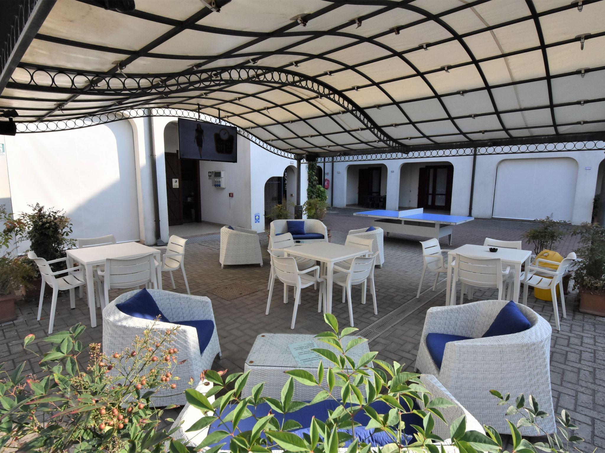 Lidi Ferraresi: Comfortable resort "Michelangelo", 3 storeys. 68 apartments in the residence. 350 m from the centre of Lido di Spina, 2.2 km from the centre of Lido degli Estensi, in the residential district, 600 m from the sea, 600 m from the beach. For shared use: swimming pool (300 m2, depth 140 cm, seasonal availability: 01.May. - 30.Sep.). Children's pool, hot tub, children's playground (sandbox). In the complex: reception, restaurant, bar, WiFi, washing machine, tumble dryer (for shared use, extra). Parking. Shop 350 m, bus stop 500 m, railway station "Ravenna" 29 km, sandy beach 600 m. Nearby attractions: Comacchio 10 km, Ravenna 30 km, Mirabilandia 45 km, Ferrara 62 km. Please note: entertainment in the season. Suitable for families, baby equipment on request (extra). Additional accommodations can be booked.