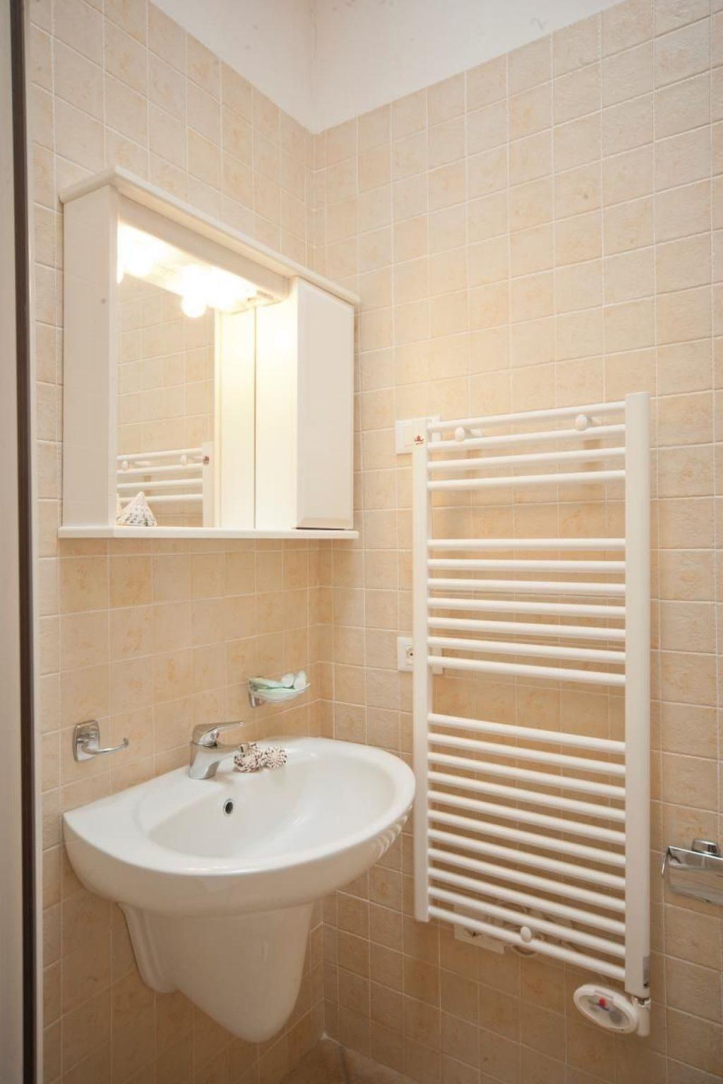 First floor living room with two beds and sofa, TV/sat, separate kitchen with electric hotplates, fridge with freezer, dishwasher, microwave oven, eavesdropper, bathroom with shower cubicle, large covered loggia balcony over the pool equipped with tables and chairs, air conditioning/heating system, wireless internet connection. On the second floor a bedroom with double bed and covered loggia balcony over the pool, and a bedroom with bunk bed plus single bed and covered loggia balcony, bathroom with shower cubicle, safe, air conditioning/heating system. Parking space for exclusive use on the outer perimeter of the residence. 1 beach umbrella + 2 sun loungers at the beach included in the price. DOGS ARE ALSO WELCOME IN THESE FLATS!