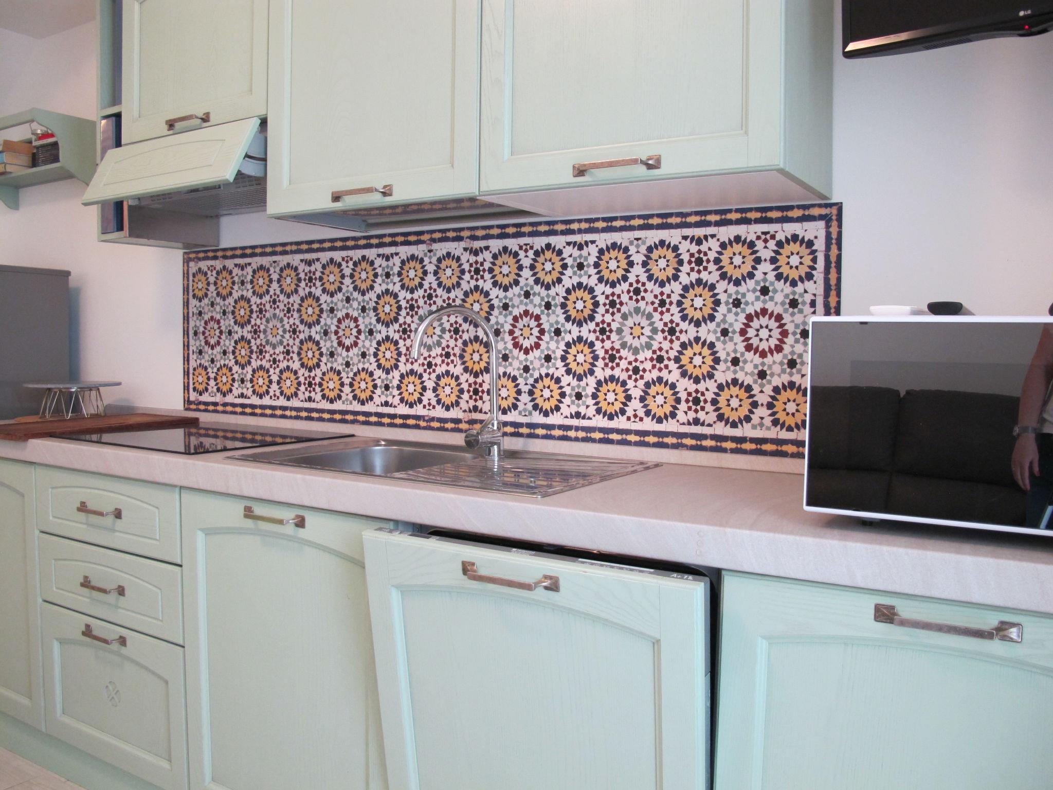"Dora", 3-room terraced house 58 m2 on 2 levels. Bright, comfortable furnishings: living/dining room with satellite TV and air conditioning. Exit to the terrace. Open kitchen (dishwasher, 4 induction hot plates, toaster, kettle, microwave, freezer). Shower/bidet/WC. Upper floor: 1 double bedroom with air conditioning. Exit to the balcony. 1 room with 2 beds. Electric heating. Balcony 10 m2, terrace 19 m2, roofed. Terrace furniture. Facilities: washing machine, iron, mosquito net. Internet (WiFi, free). Parking (fenced 1 car) at the house, width 230 cm. Please note: suitable for families, not suitable for small children. Non-smoking house, parking space for small car only. Private entrance. IT038006B4KCD3WF7D