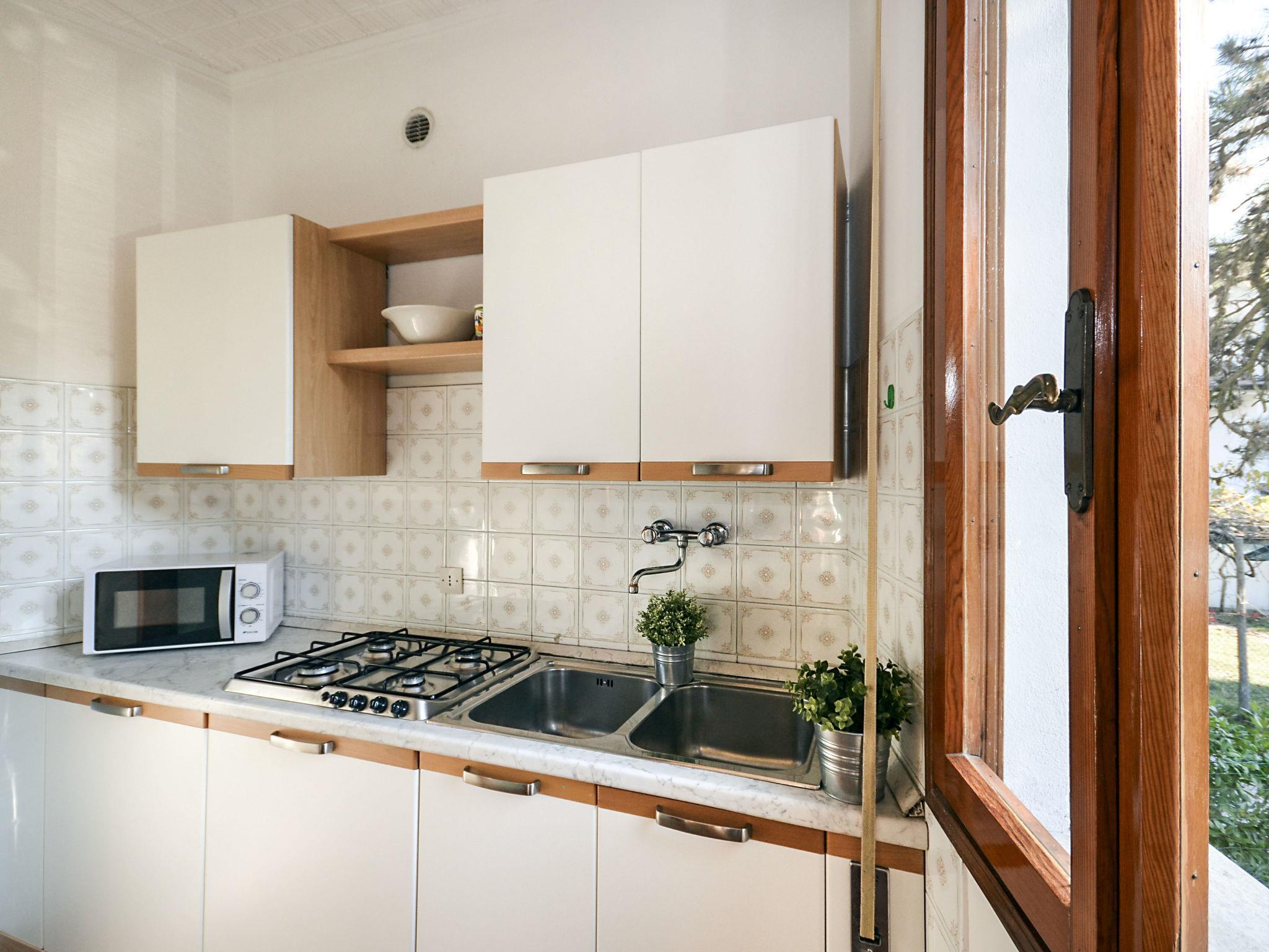 3-room semi-detached house 55 m2, on the upper ground floor. Practical furnishings: living/sleeping room with 1 sofabed, 1 pull-out bed, dining table and satellite TV. Exit to the terrace. 2 double bedrooms. Kitchenette (Gas stove, 4 gas rings, microwave, freezer, electric coffee machine). Shower/bidet/WC. Air-conditioning. No heating option. Terrace roofed. Terrace furniture. Facilities: safe, children's high chair, baby cot. Internet (WiFi, free). Parking (1 car), garage on the property (1 car) at the house, height 180 cm, width 240 cm. Please note: maximum 1 pet/ dog allowed. Private entrance. No mandatory extra charges to be paid on-site except for local tax. Bedlinen, towels, final cleaning and all energy costs are included. IT030049B4T9383YSC