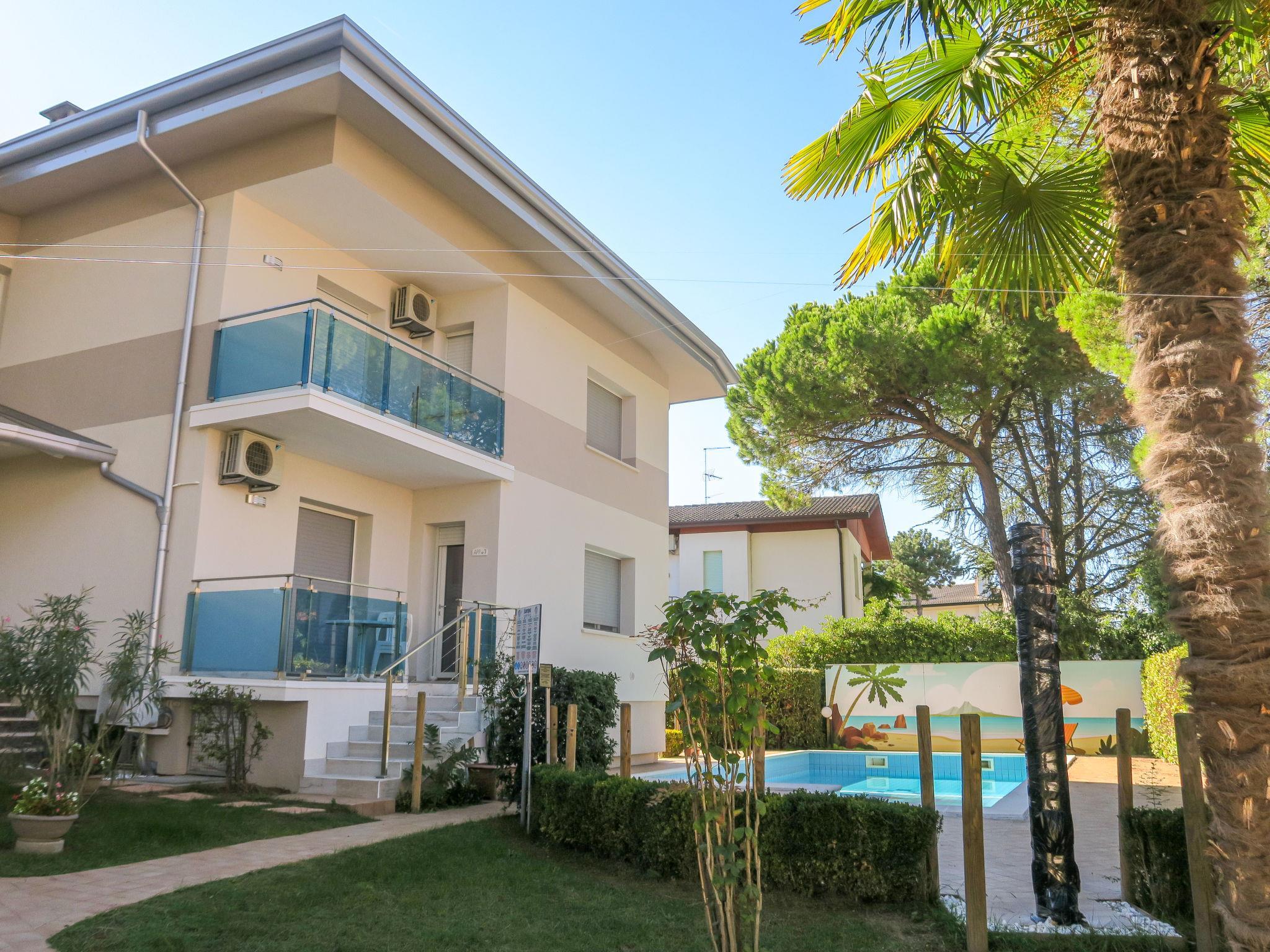 Small apartment block "Elisabeth". 7 apartments in the property. In the district of Pineta 300 m from the centre of Lignano-Pineta, 13 km from the centre of Bibione, 95 km from the centre of Trieste, 900 m from the sea. For shared use: well-kept garden with lawn and trees, swimming pool (9 x 5 m, seasonal availability: 15.May. - 15.Sep.). Terrace, barbecue. In the house: bicycle rental. Parking on the premises. Shop, restaurant 300 m, bus stop 250 m, railway station "Latisana (Milano-Venezia-Triest)" 20 km, sandy beach 900 m. Golf course (18 hole) 4 km. Please note: the owner lives in the same residence. Beach service: From approx. the beginning of May to approx. mid-September, 1 sun lounger, 1 deck chair and 1 parasol per accommodation unit are included in the rental price.
