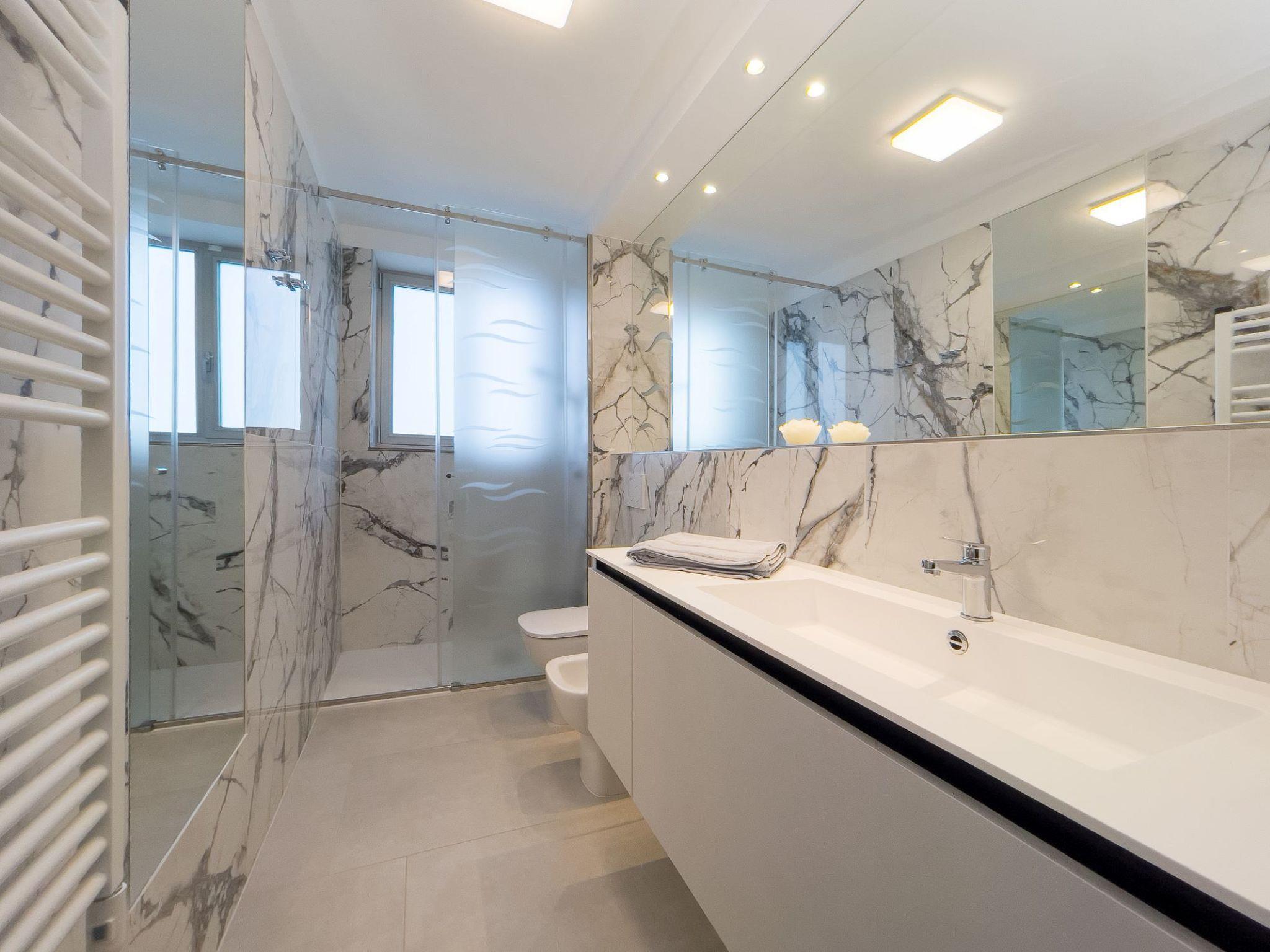 3-room apartment 70 m2, on the upper floor. Spacious and bright, beautiful and modern furnishings: living/sleeping room with 1 double sofabed, dining table, satellite TV and international TV channels. Exit to the balcony. 2 rooms, each room with 1 bed, 1 double bed, satellite TV and international TV channels. Kitchenette (dishwasher, 4 induction hot plates, kettle, microwave, freezer, electric coffee machine). 2 showers/bidet/WC. Air-conditioning, forced-air heating. Balcony 75 m2. Balcony furniture, deck chairs (3). Facilities: washing machine, safe, hair dryer. Internet (WiFi, free). Parking space n no minibus (2 cars) at the house. Please note: non-smokers only. 1 small pet/ dog allowed. IT030049B4Q3NE5WIZ