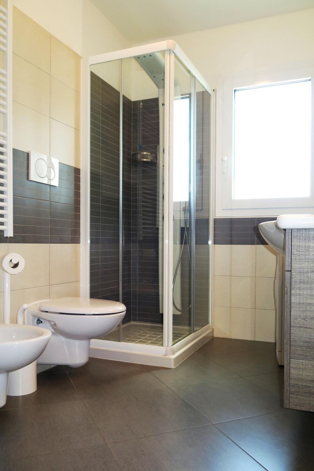 3-room apartment 48 m2. Tasteful furnishings: living/sleeping room with 1 double sofabed, dining table, kitchen corner and satellite TV. Exit to the balcony. 1 double bedroom. 1 room with 2 beds. Open kitchen (dishwasher, 4 ceramic glass hob hotplates, microwave, freezer, electric coffee machine). Shower/bidet/WC. Air-conditioning, forced-air heating. Heating not available in all rooms. Balcony 25 m2. Balcony furniture. Facilities: washing machine, safe, children's high chair, baby cot. Internet (WiFi, free). Parking (1 car) at the house. IT030049B4Z4PQZJHT