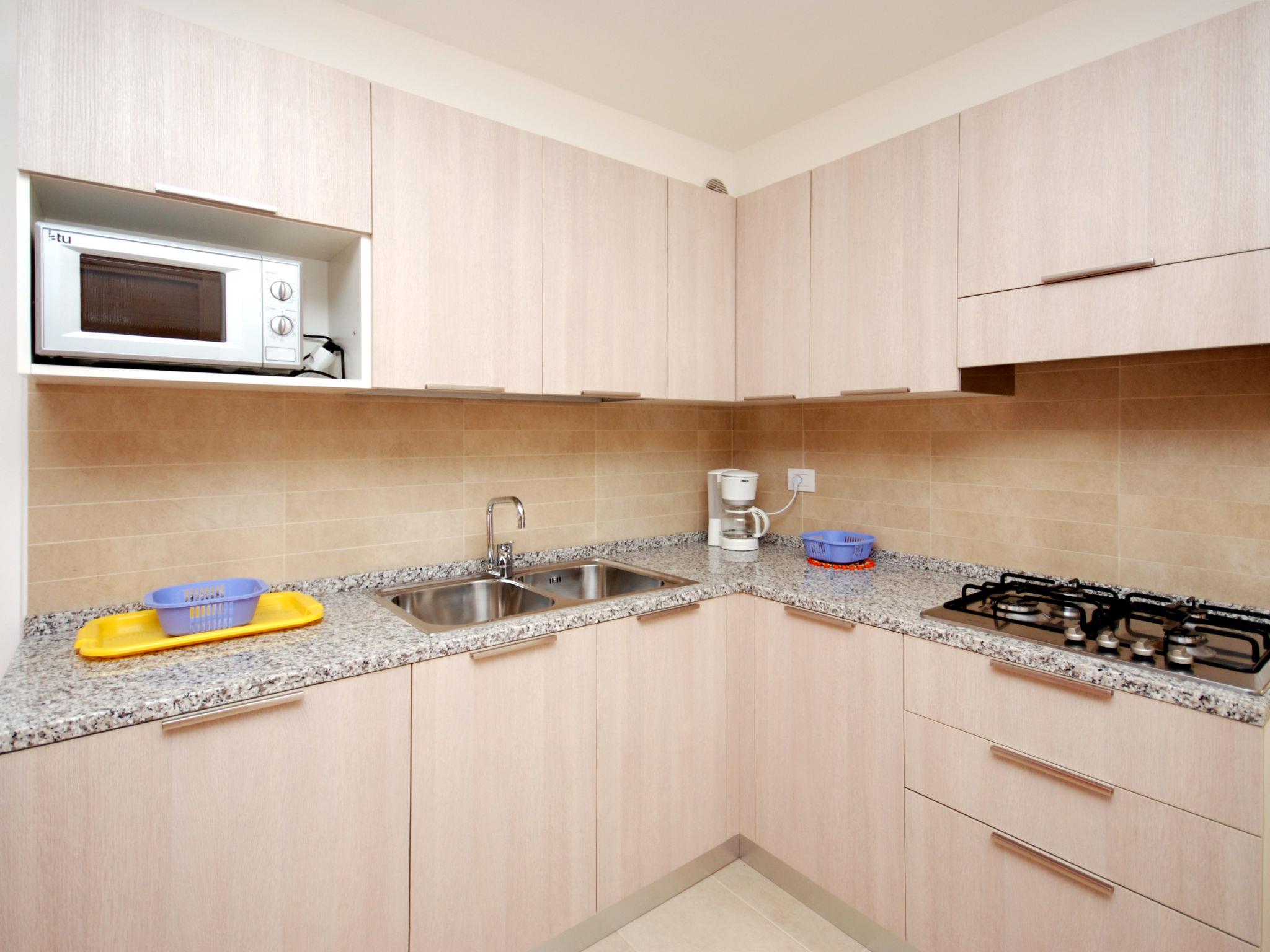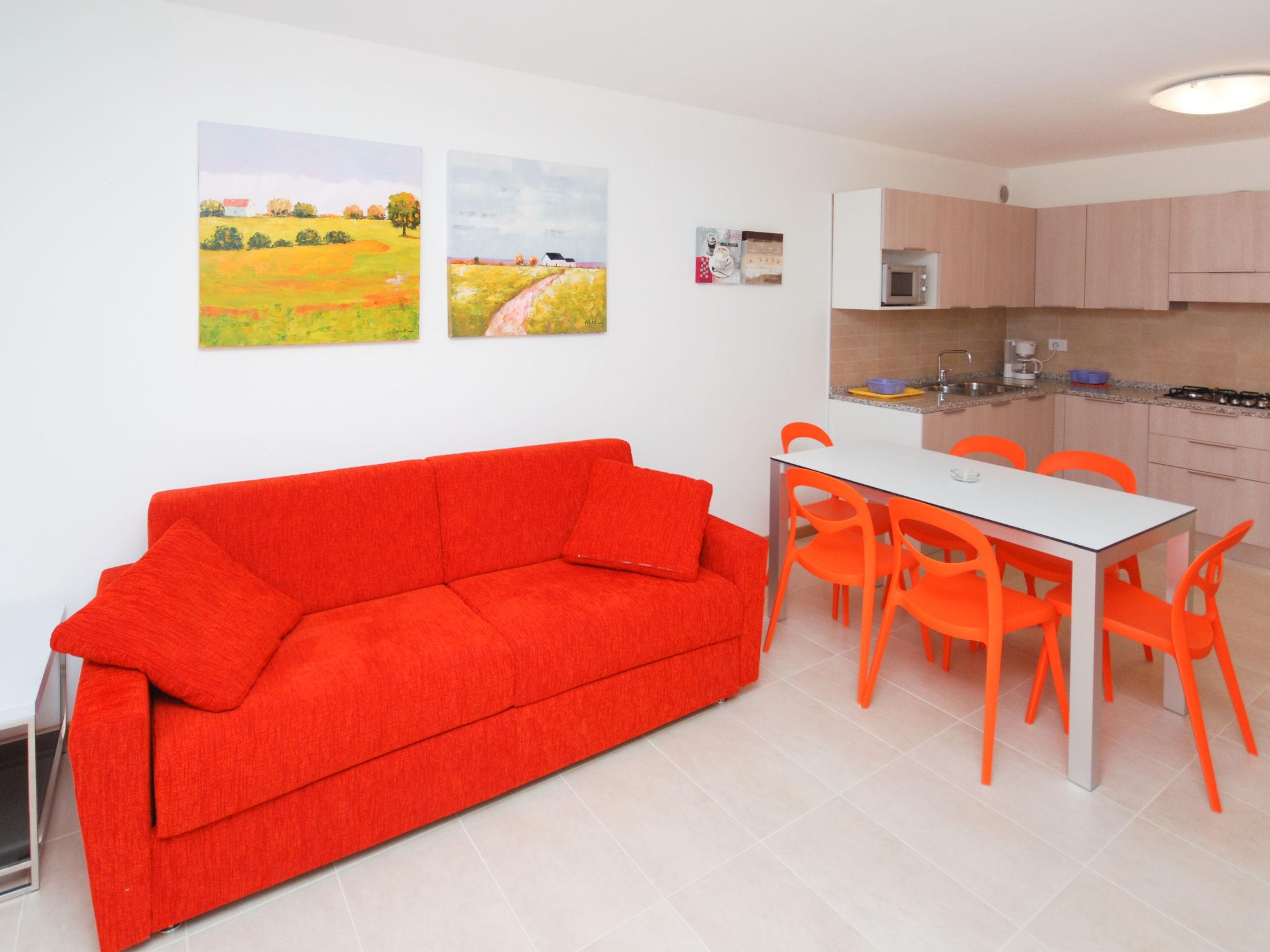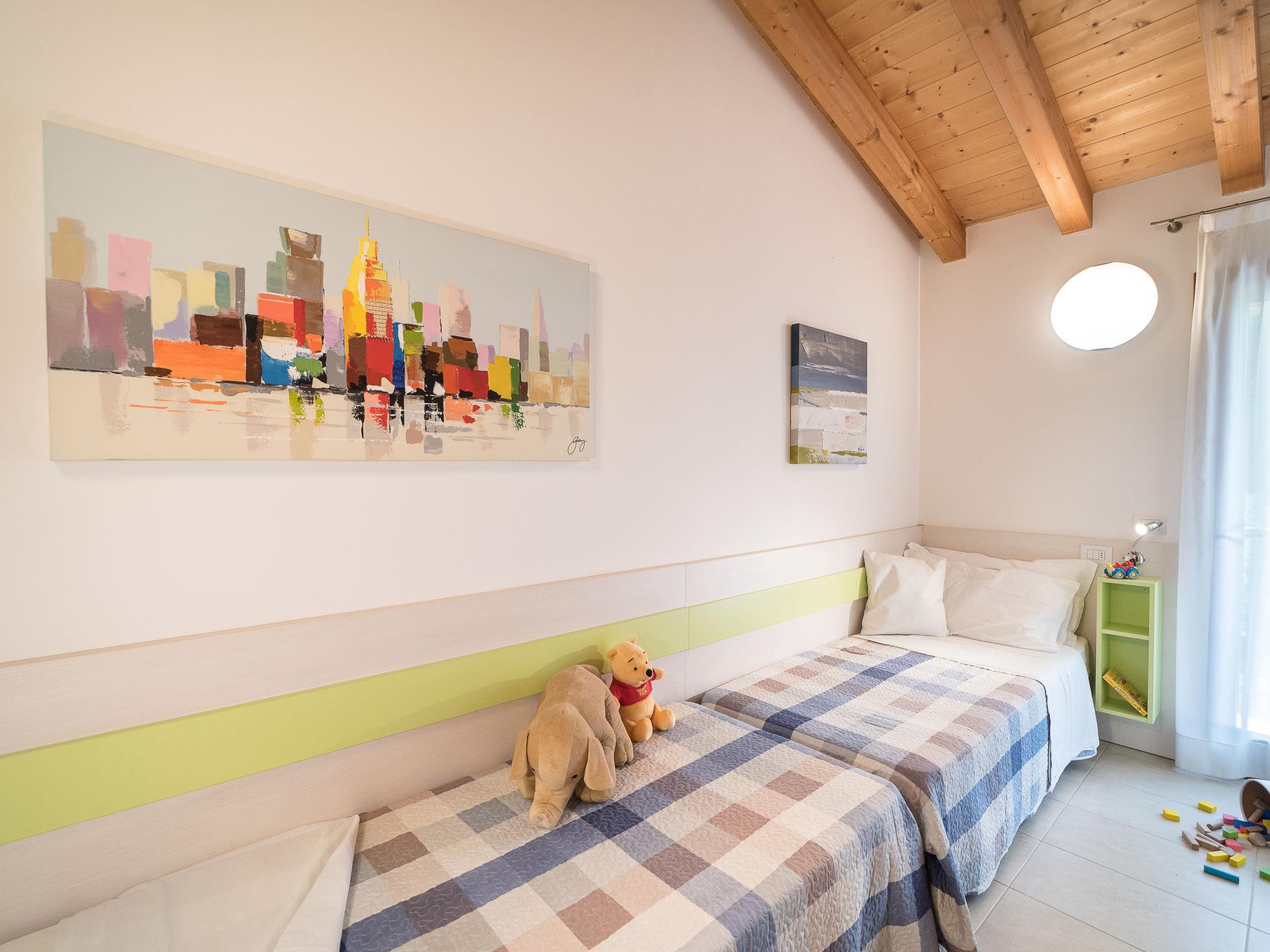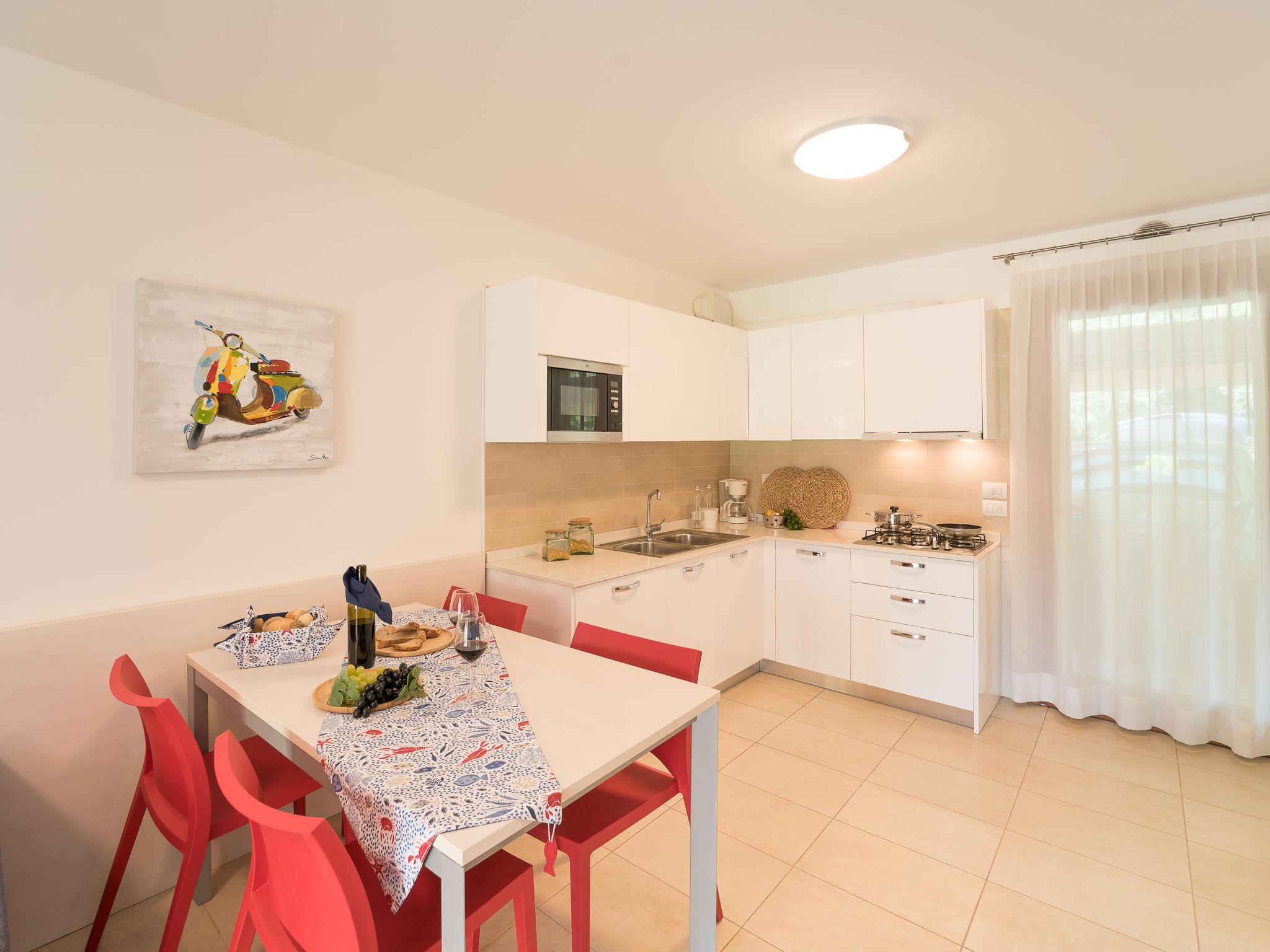 3-room terraced house 70 m2 on 2 levels. Modern and tasteful furnishings: living/sleeping room with 1 double sofabed, dining table, kitchen corner and satellite TV. Exit to the terrace. Open kitchen (dishwasher, Gas stove, 4 gas rings, microwave, freezer, electric coffee machine). Shower/WC. Upper floor: 1 double bedroom. Exit to the balcony. 1 room with 2 beds. Exit to the balcony. Shower/WC. Air-conditioning, forced-air heating. Heating not available in all rooms. Balcony, terrace roofed, small garden. Terrace furniture, barbecue. View of the swimming pool. Facilities: washing machine, safe, mosquito net, children's high chair, baby cot. Parking (roofed, 2 cars) at the house. Maximum 1 pet/ dog allowed. IT030049B484UQWE2A