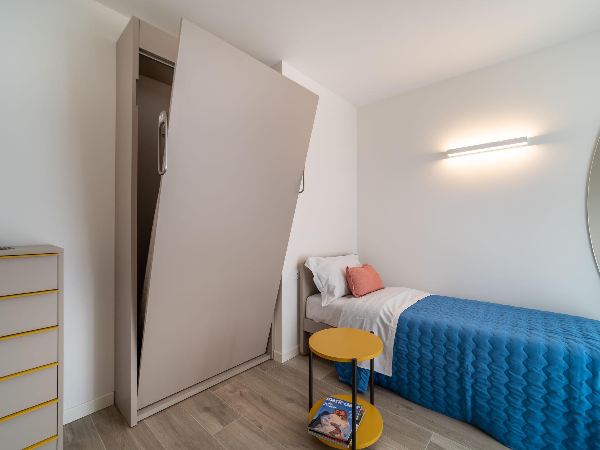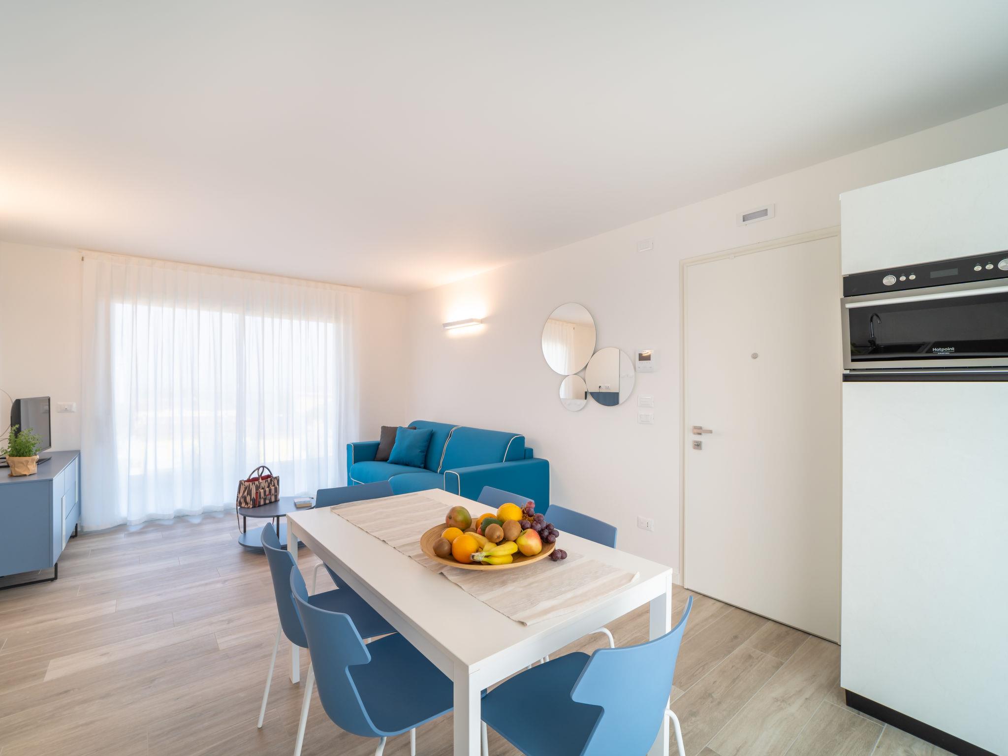 Modern apartment block "Zero5.Zero5 Residence", 7 storeys, built in 2022. 16 apartments in the residence. In the district of Lignano-Sabbiadoro, 200 m from the centre, 13 km from the centre of Bibione, 95 km from the centre of Trieste, 200 m from the sea. In the house: lift, washing machine (extra), tumble dryer (for shared use, extra), bicycle rental. Parking on the premises. Grocery 300 m, restaurant 250 m, bakery 220 m, pedestrian zone 400 m, bus stop 150 m, railway station "Latisana" 21 km, sandy beach "beach service included" 200 m, thermal baths "Bibione Thermae" 15 km. Marina 400 m, golf course (18 hole) 6 km, cycle lane 200 m. Groups of teenagers on request only. Beach service: From approx. the beginning of May to approx. mid-September, 1 sun lounger, 1 deck chair and 1 parasol per accommodation unit are included in the rental price.