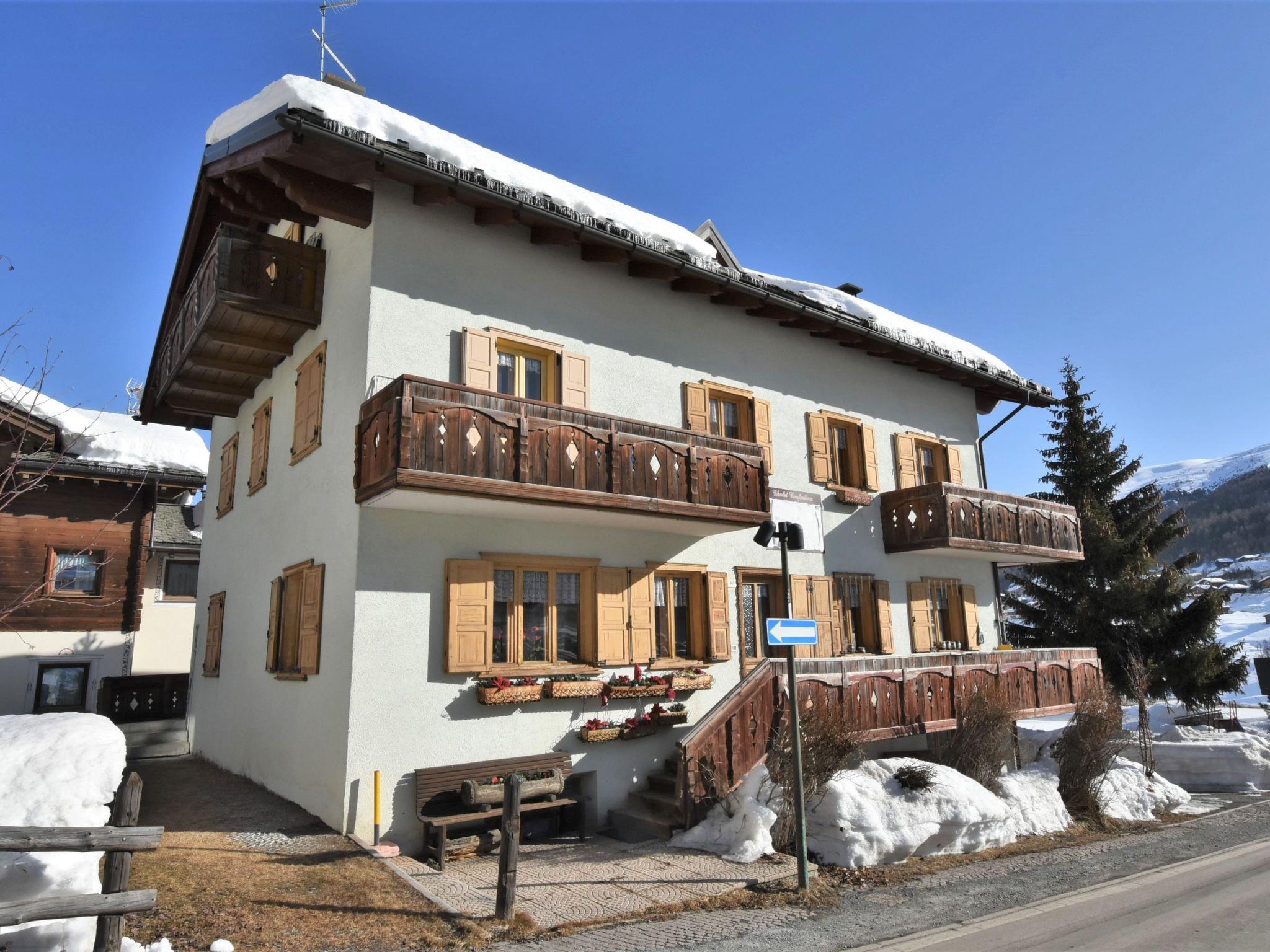 Small apartment house "Casa Confortina", 2 storeys. In the district of S. Rocco 1.5 km from the centre of Livigno, 37 km from the centre of Bormio, 200 m from the skiing area. For shared use: small garden (not fenced) plants. Garden furniture, barbecue. In the house: storage room for skis. Public parking 50 m on the road. Shop 50 m, supermarket 100 m, bus stop 200 m, indoor swimming pool 3 km. Ski lift 700 m, slopes 200 m, ski bus stop 150 m, cross country ski track 100 m. Well-known ski regions can easily be reached: Mottolino. Please note: ski bus (free of charge). Loading and unloading of baggage is possible at the holiday house. The owner lives in the same residence.