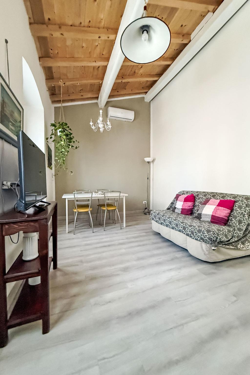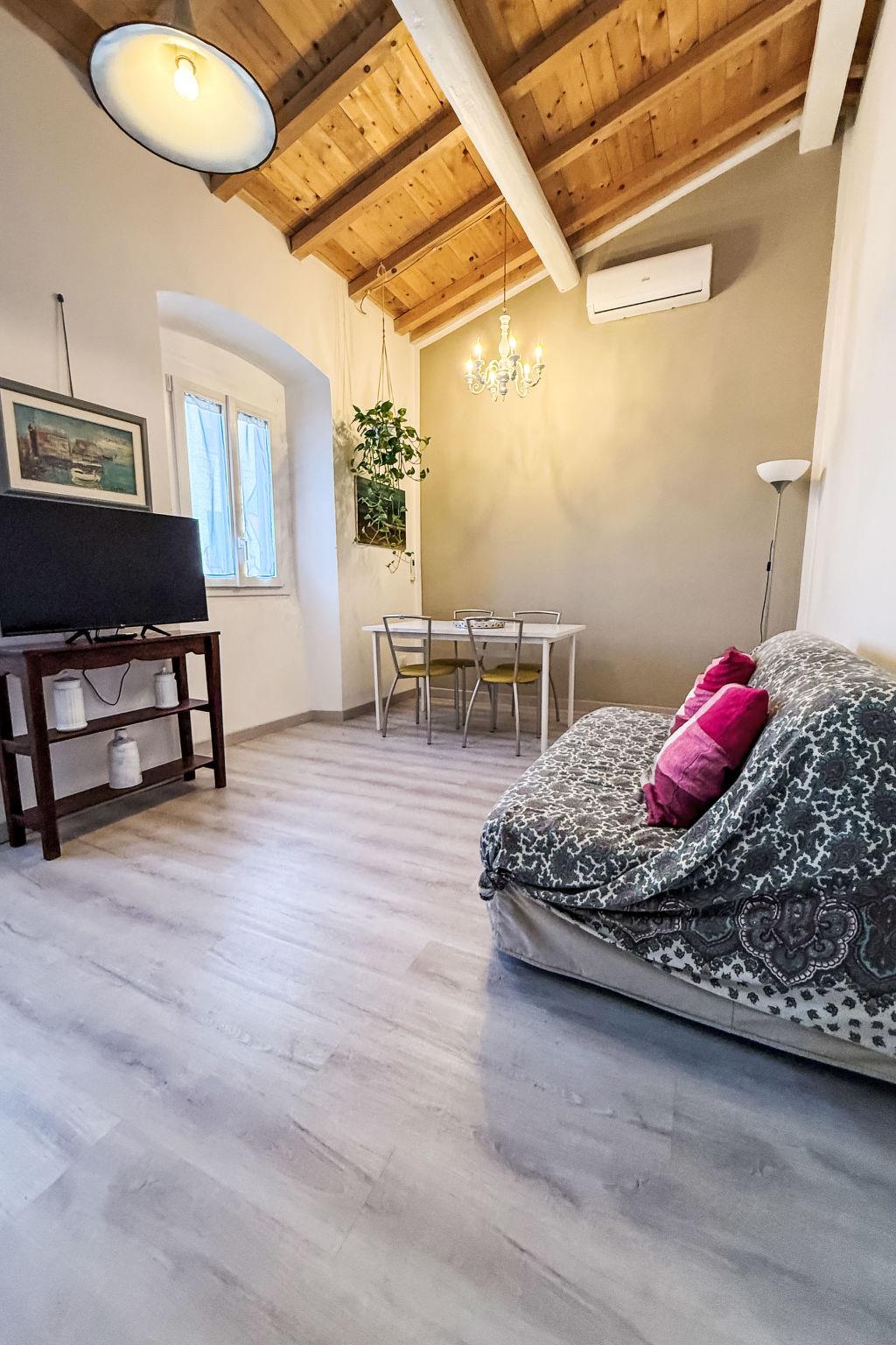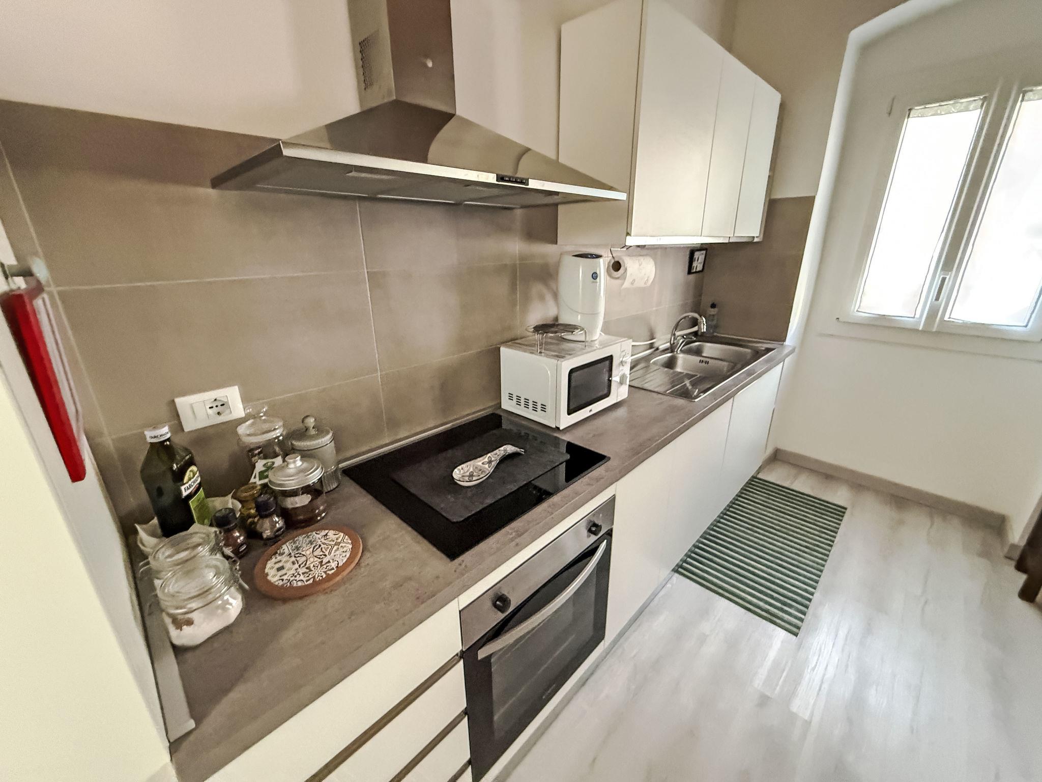 "Borgo di Mare", 2-room apartment 50 m2, on the ground floor. Practical and modern furnishings: living room with 1 double sofabed, dining table and TV. 1 room with 1 double bed. Kitchenette (oven, 4 induction hot plates, kettle, microwave, freezer). Shower/WC. Electric heating, air-conditioning. Solar power. Wooden floors. Facilities: washing machine, hair dryer. Internet (WiFi, free). Please note: non-smokers only. Fire extinguisher. IT049009B4GGQVY4D8