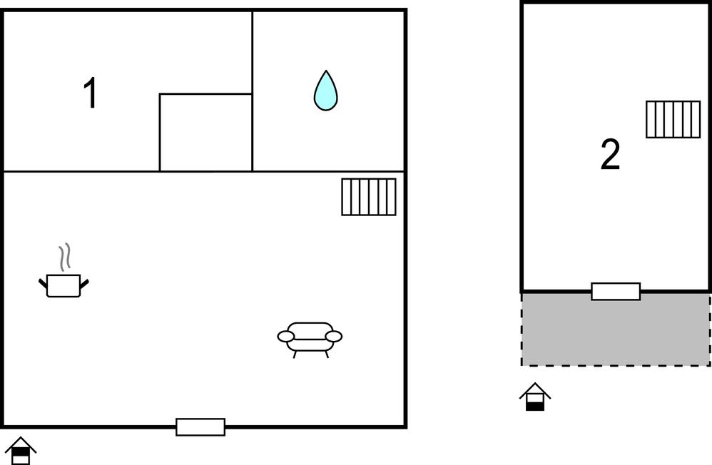 Fra det ene soveværelse er der udgang til en lille hyggelig terrasse. Om morgenen kan I nyde en lækker morgenmad udendørs ved havebordet, mens I tænker over planerne for den kommende dag. Senere kan I bruge den fælles stengrill og tilberede en lækker middag.