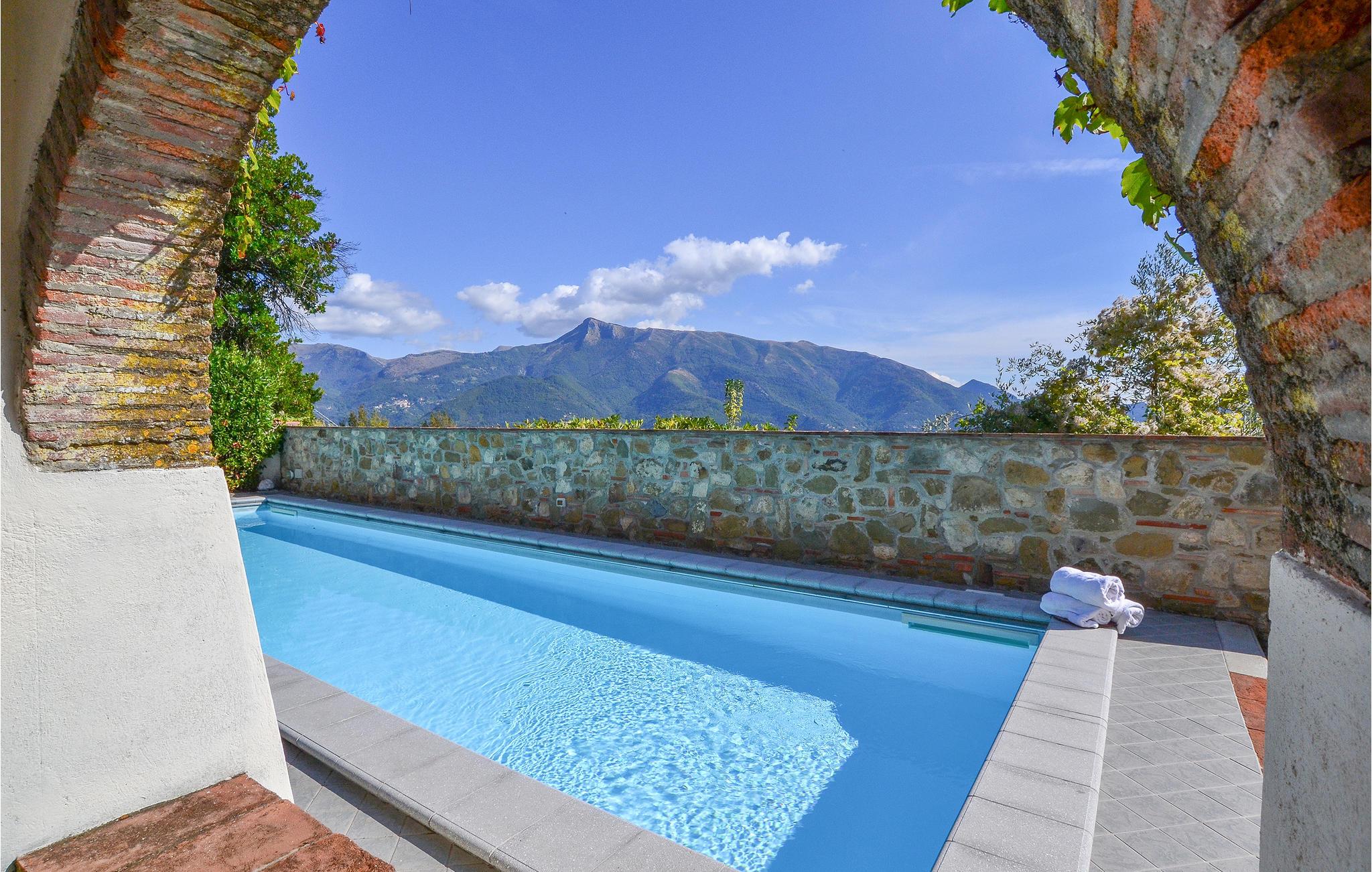 Ferielejlighed i stuen af et restaureret hus fra 18. århundrede i den historiske landsby Pedona, i bakkerne af Lucca. Boligen består af stue med køkken, to soveværelser, et lille arbejdsværelse med sovesofa og badeværelse. Til fælles brug med ITV380, der ligger ved siden af med fælles indgang, er der udeområde med havemøbler og trappe ned til poolen. Dejlig udsigt over bakkerne. I kommer nemt til de berømte strande af Lido di Camaiore (ca. 12 km), Viareggio (13 km) og den mondæne badeby Forte dei Marmi (27 km). Der er 49 til Carrara med sit berømte marmor, 14 km til Pietrasanta med sine marmorskulpturer, det såkaldte lille Athen. Naturoplevelser finder I i de dybe huler og store slugter af Antro del Corchia (32 km) i regionalparken af de Apuanske Alper, Italiens største karstsystem med over 70 km underjordiske tunneller og søer. I nærheden forløber en 20 km lang cykelsti, der forbinder landsbyerne langs Versilia. Kunst venter jer i den flotte by Lucca, 32 km, omgivet af middelaldermure og i Pisa, 34 km, med det berømte skæve tårn, 104 km til kunstbyen Firenze, renæssancens vugge. Børn kan glæde sig til Pinocchio-parken i Collodi. Om sommeren er der færger fra Viareggio til Cinque Terre. Parkering ca. 100 m fra huset. Feriegæster fra fem lejligheder benytter poolen: ITV380, ITV381, ITV774 og ITV775.