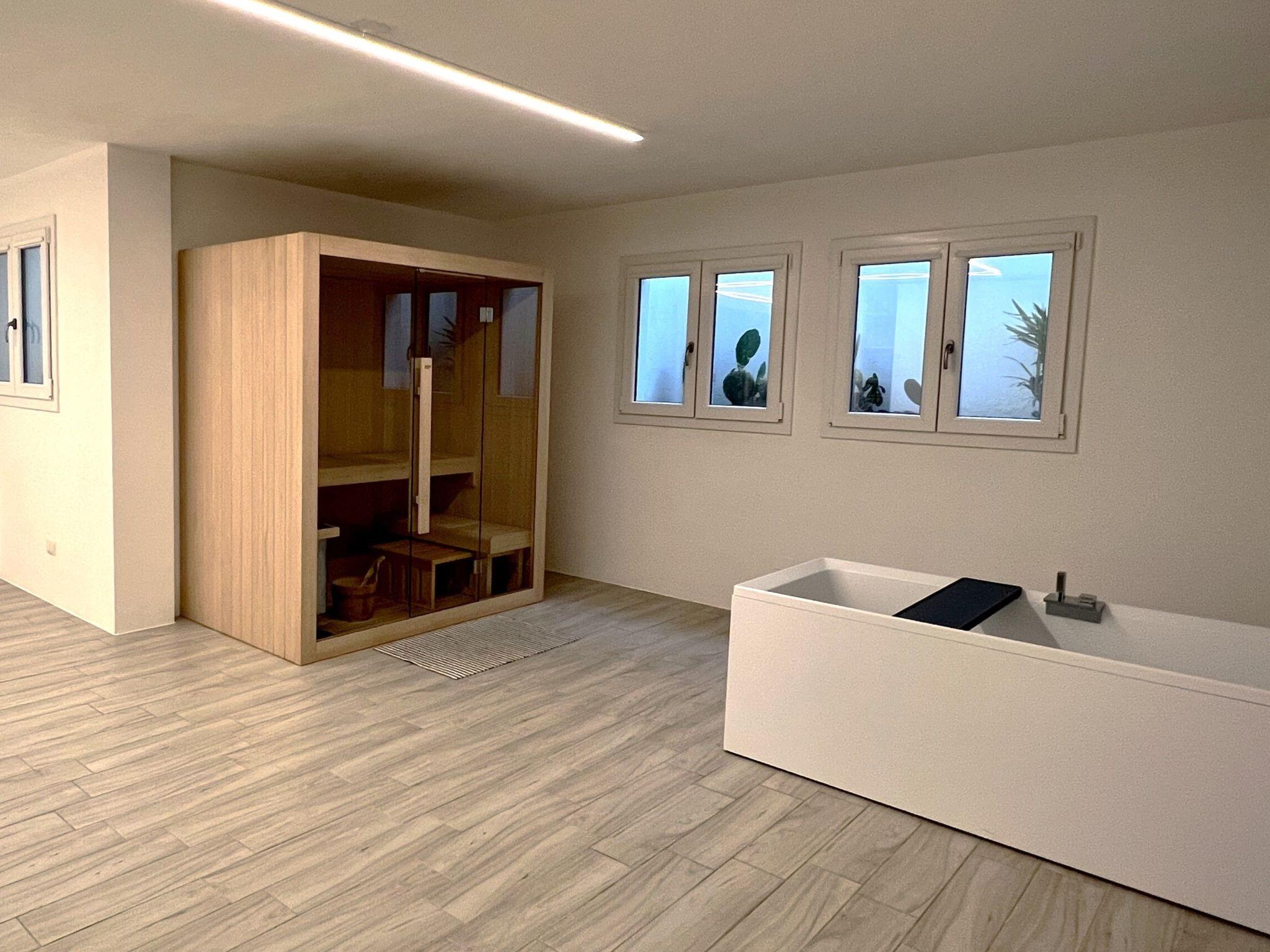Inside, the house boasts modern air conditioning, which ensures pleasant temperatures in all living and sleeping areas. The kitchen is fully equipped with an espresso machine, coffee machine and milk frother and offers direct access to the terrace - ideal for cosy coffee hours outdoors. Two stylish bedrooms, each with a double bed and a single sofa bed, offer luxurious sleeping comfort and have lake views on the upper floor and garden views on the ground floor. Two chic bathrooms with shower, large washbasin, bidet and WC as well as a sauna, a whirlpool bath and an additional WC on the ground floor round off the space on offer.