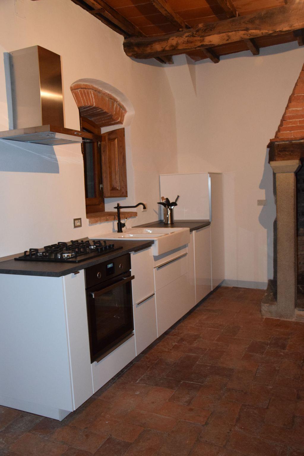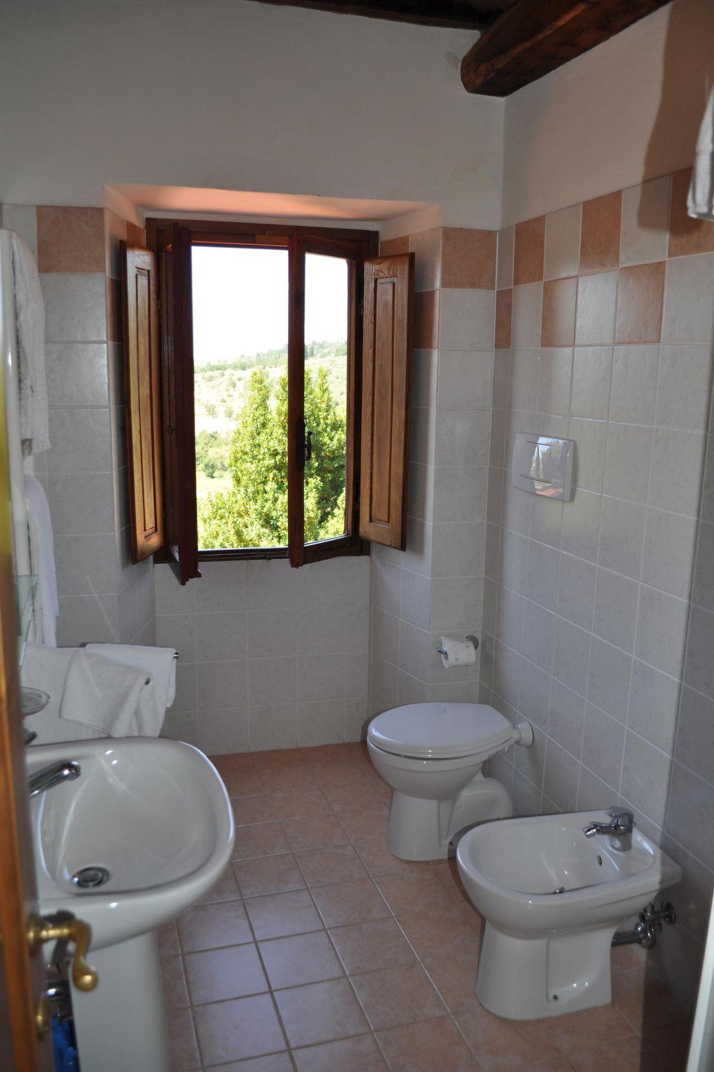 The apartment, which is located on the first floor, is accessed via a stone staircase and an adjoining loggia. There is an old wood-burning oven on the loggia. Inside, there are simple and rustic furnishings. The apartment consists of six large and bright rooms, four of which are double bedrooms (extra bed for children or cradle on request, included in the price). All rooms have a shower-bath (and antechamber). The living room is furnished with sofas and a TV set; in the kitchen-cum-living room there is an old fireplace of rare beauty. Single-storey heating system, fully equipped kitchen (gas stove, microwave, refrigerator, dishwasher, high chair). The two apartments in the house share a laundry room. Parking is available. The country inn is open year round and has been classified with two ears (classification system for agritourismo in Italy).
